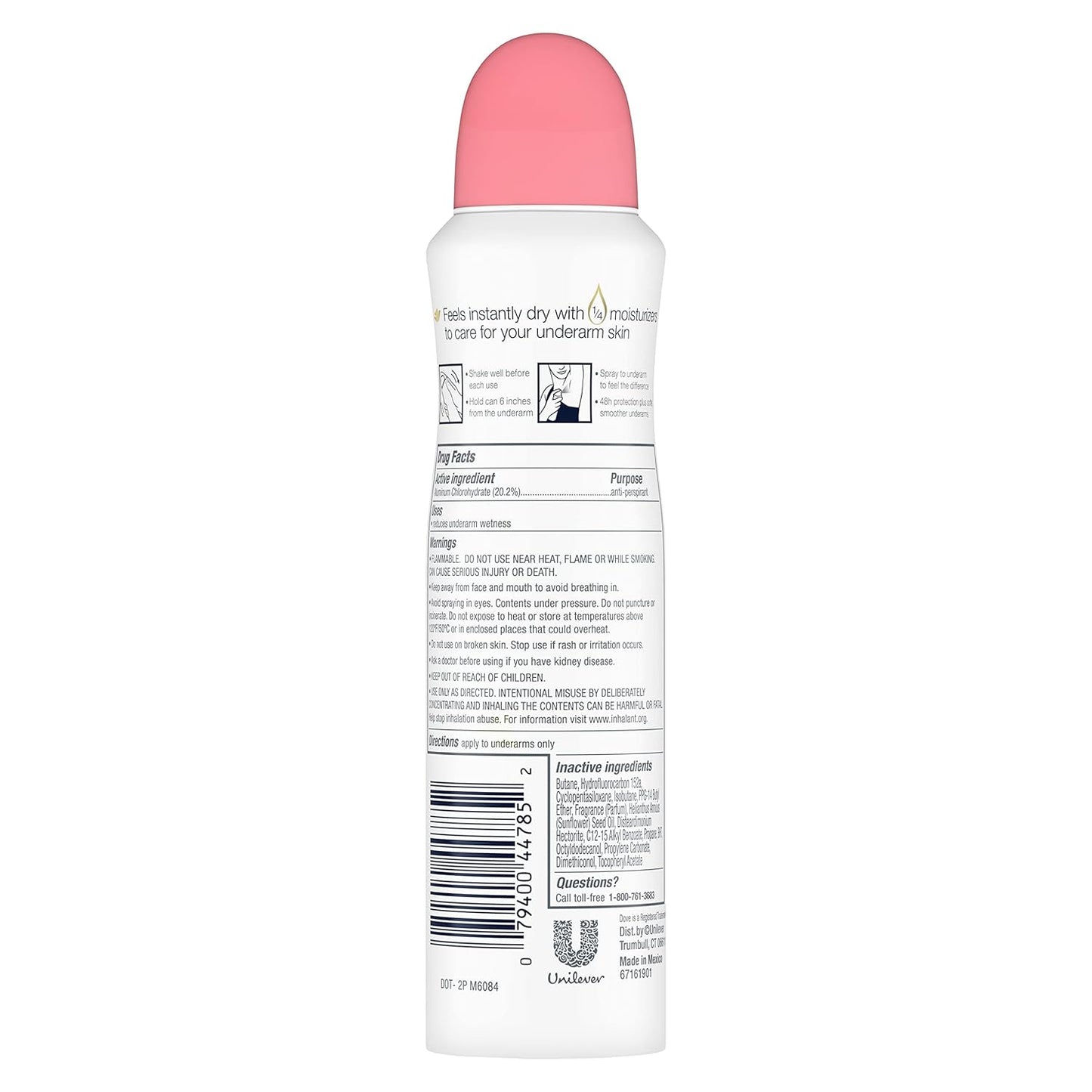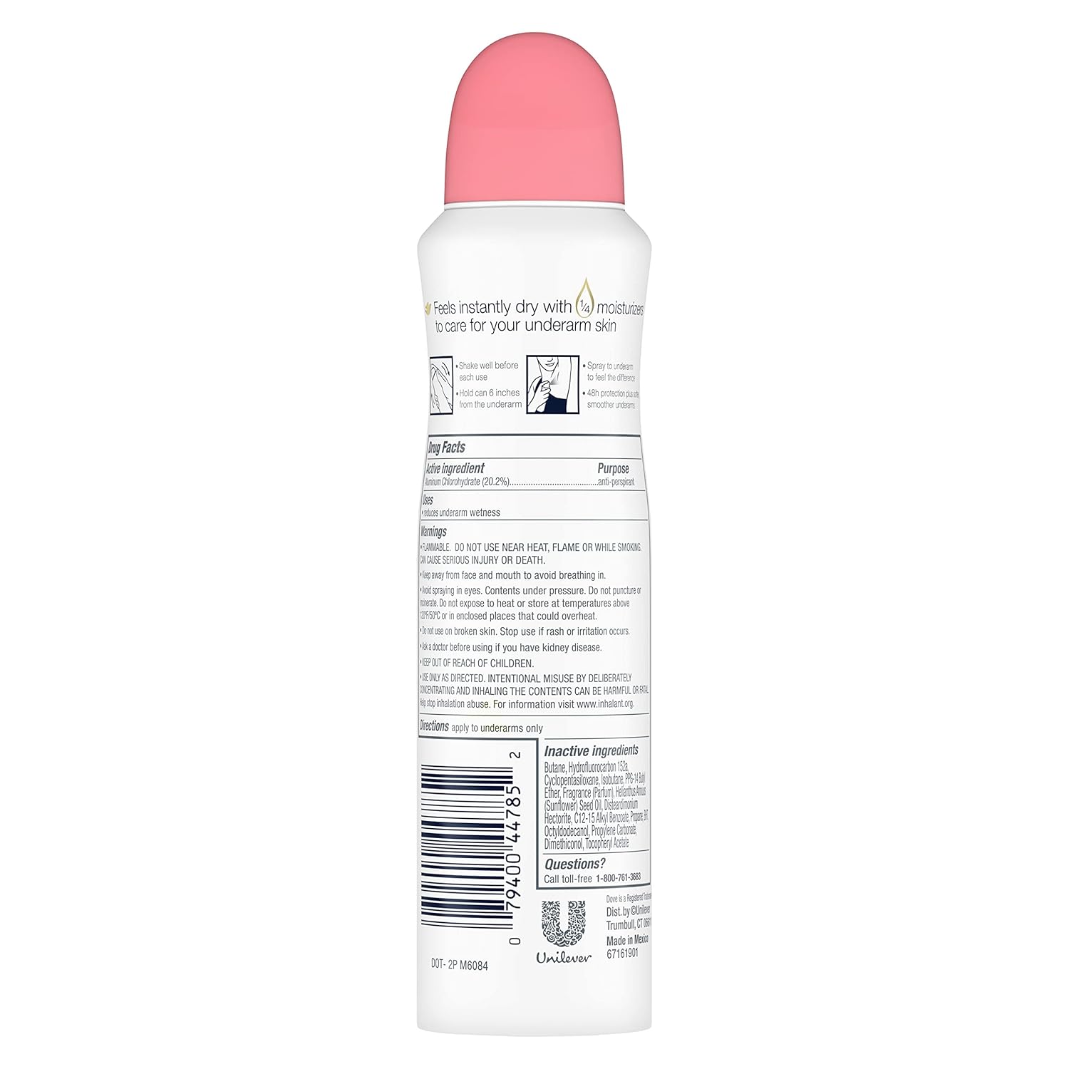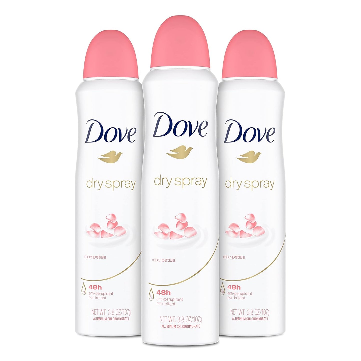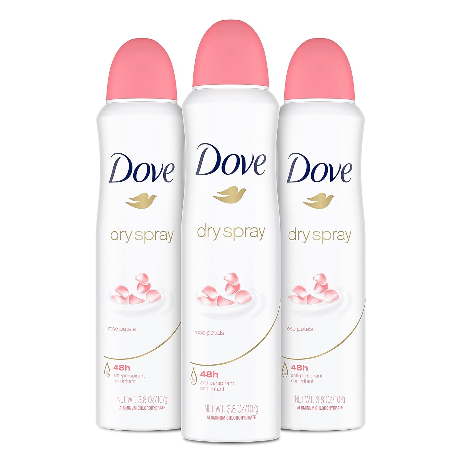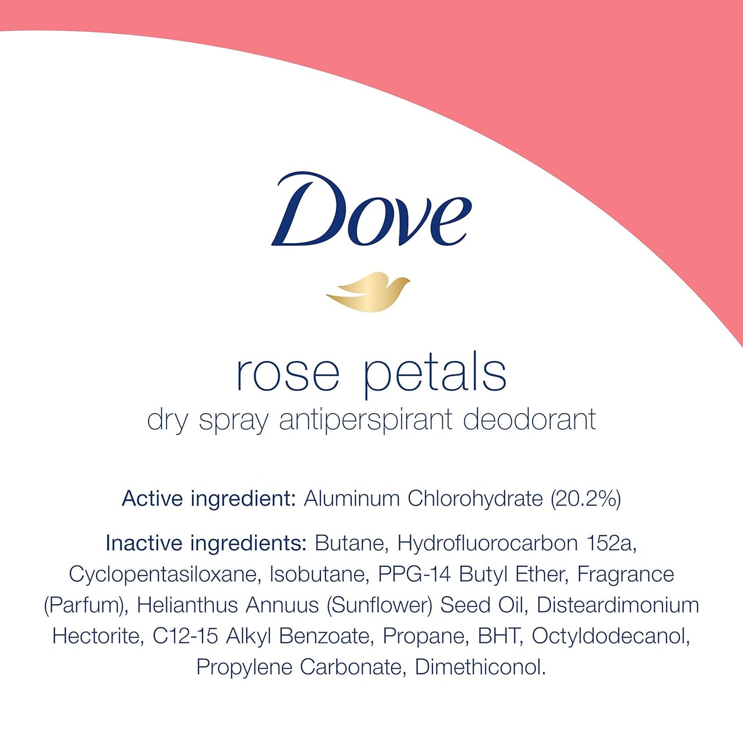 Dove Dry Spray Antiperspirant Deodorant Rose Petals 3.8oz. provides up to 48 hours of antiperspirant protection