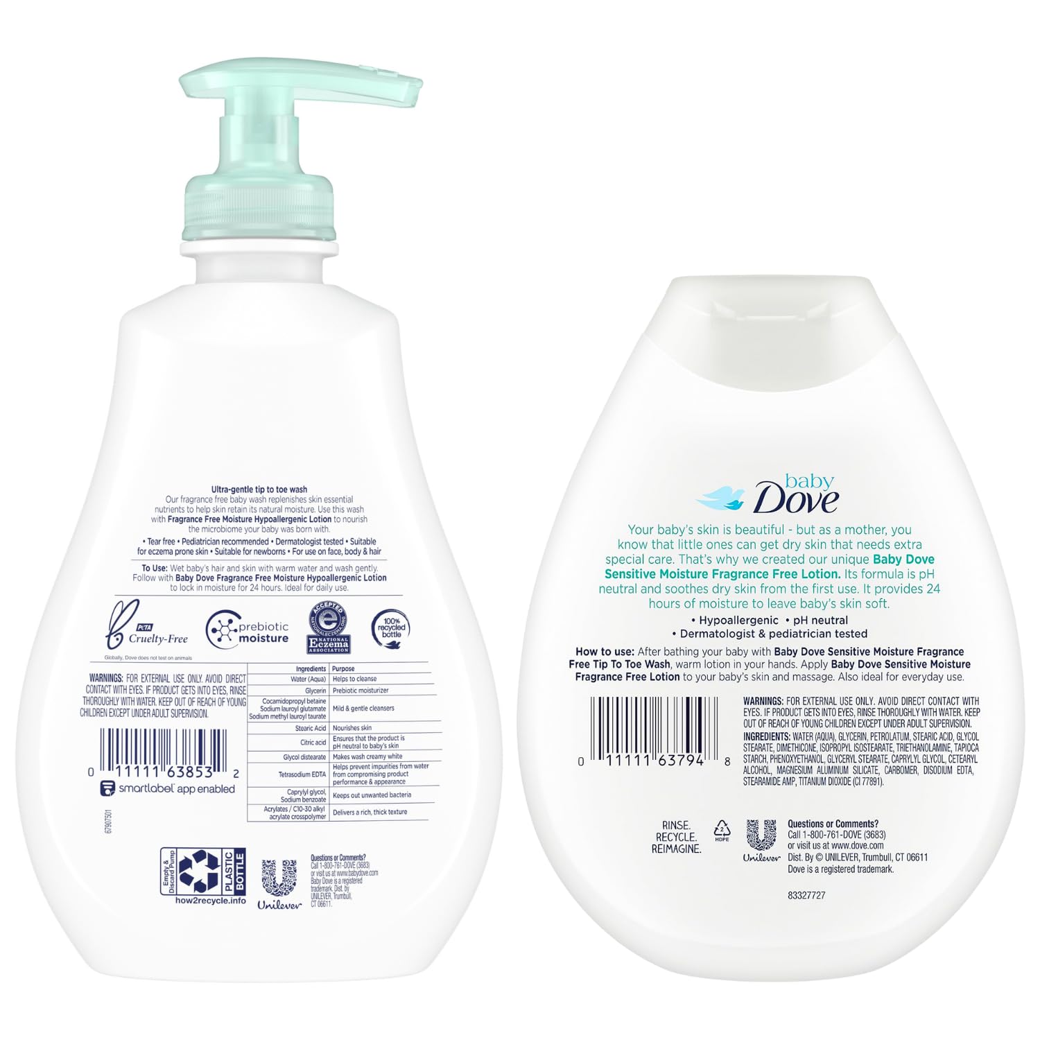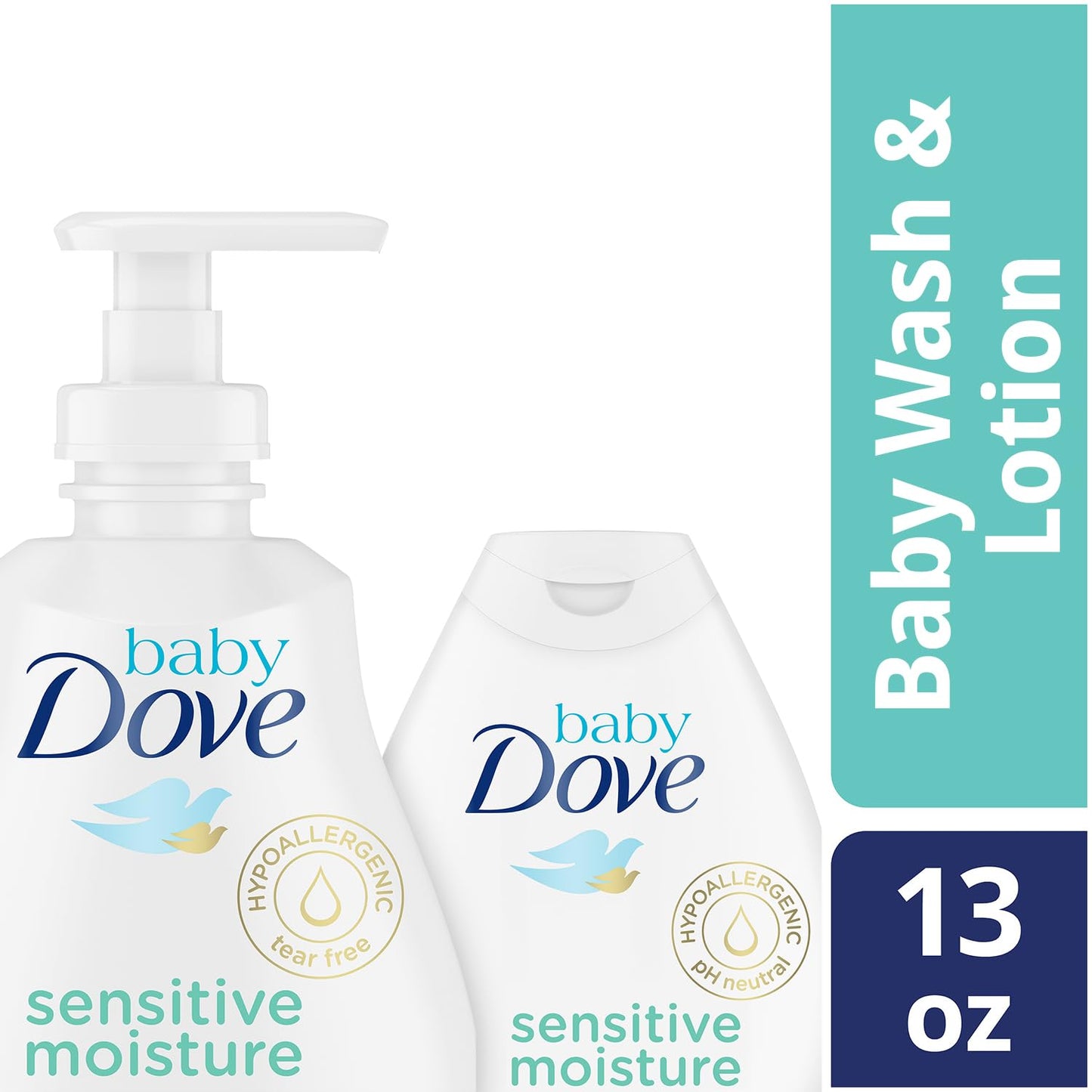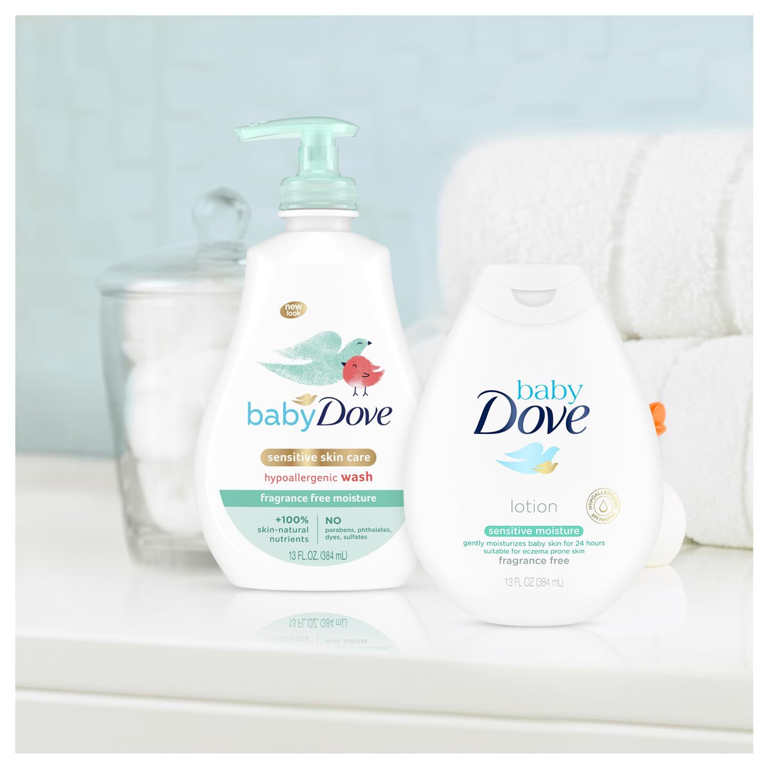 Dove Baby Sensitive Skin Care Bundle – Hypoallergenic Wash & Baby Lotion, Fragrance Free Moisture, Baby Gift Set, 13 Oz Ea (2 Piece Set)
