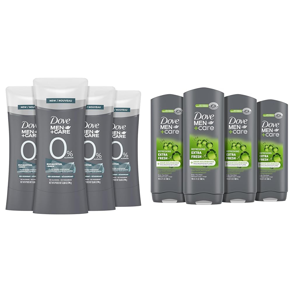 DOVE MEN + CARE Deodorant Stick for Men Aluminum free deodorant Eucalyptus+Birch Naturally Derived Plant Based Moisturizer, GRAY, 2.6 Ounce (Pack of 4)