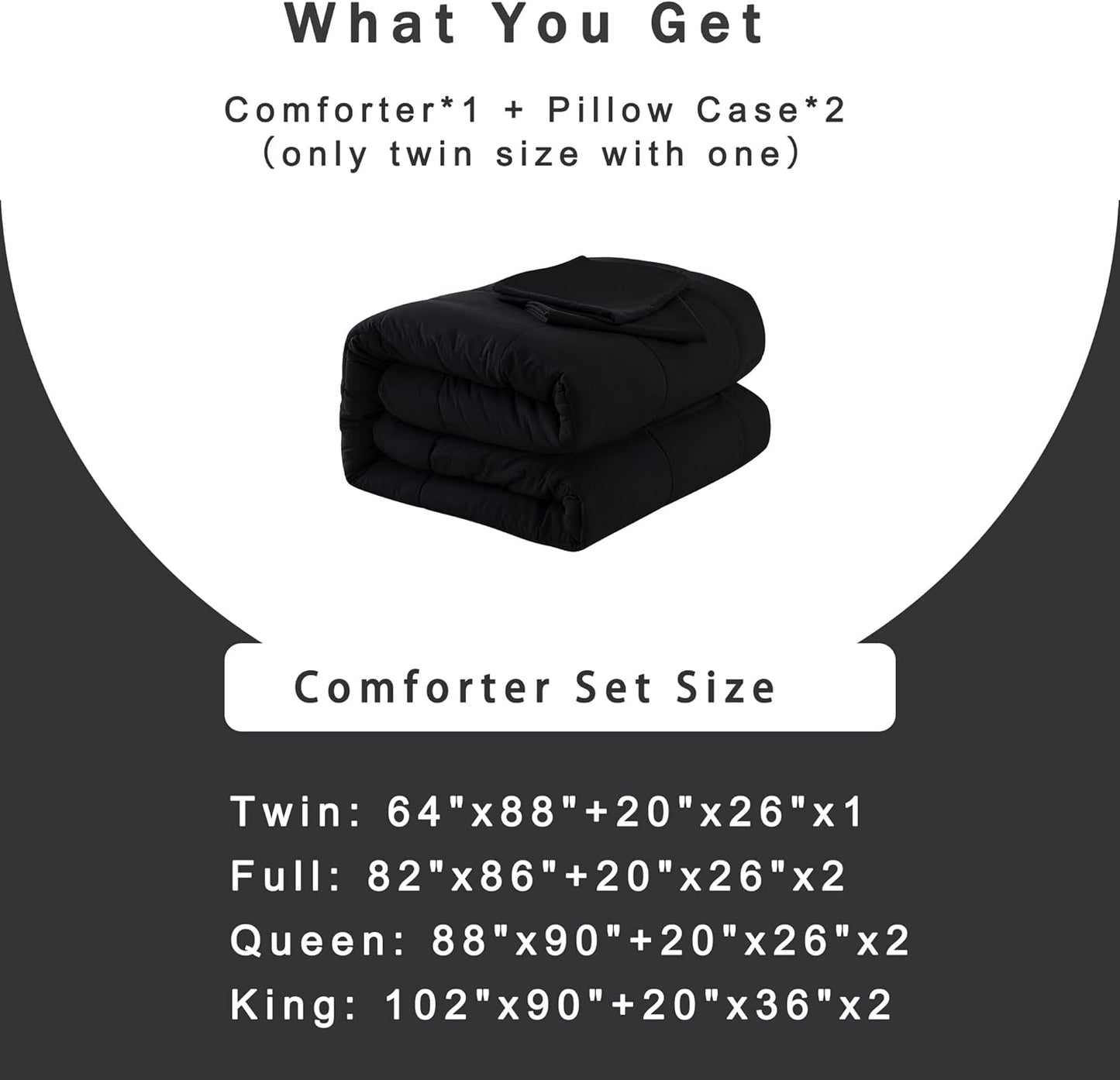 Bedding Comforter Sets: The bedding sets queen include 1 down alternative quilted comforter(88"x90") and 2 pillowcases(20"x26"). This comforter set will give your comfortable sleep experience in All Season.