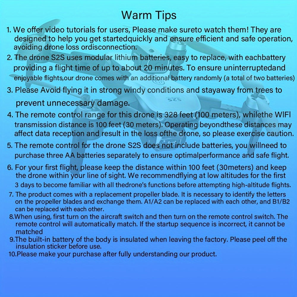 Drone Adulte Pliable S2S Sans Balais, Double Caméra HD, Portée de Contrôle de 700ft, Vitesse de Vol de 30ft/s, Altitude Maximale de 400ft/s, Contrôle Wi-Fi & APP, 2 Batteries Rechargeables Haute Capacité. Cadeau RC pour Débutant pour Hommes