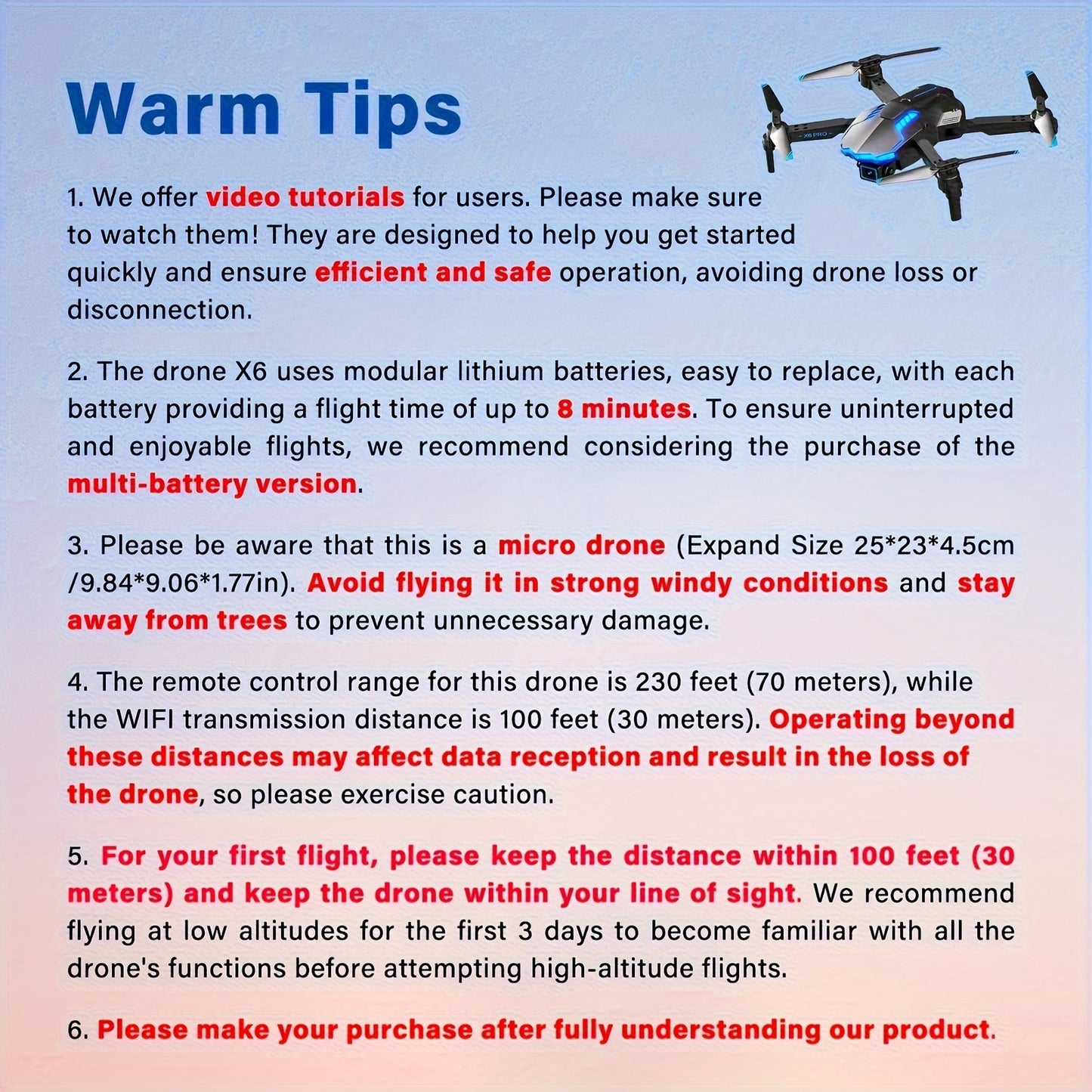 - Altitude de vol maximale (mètres): 50