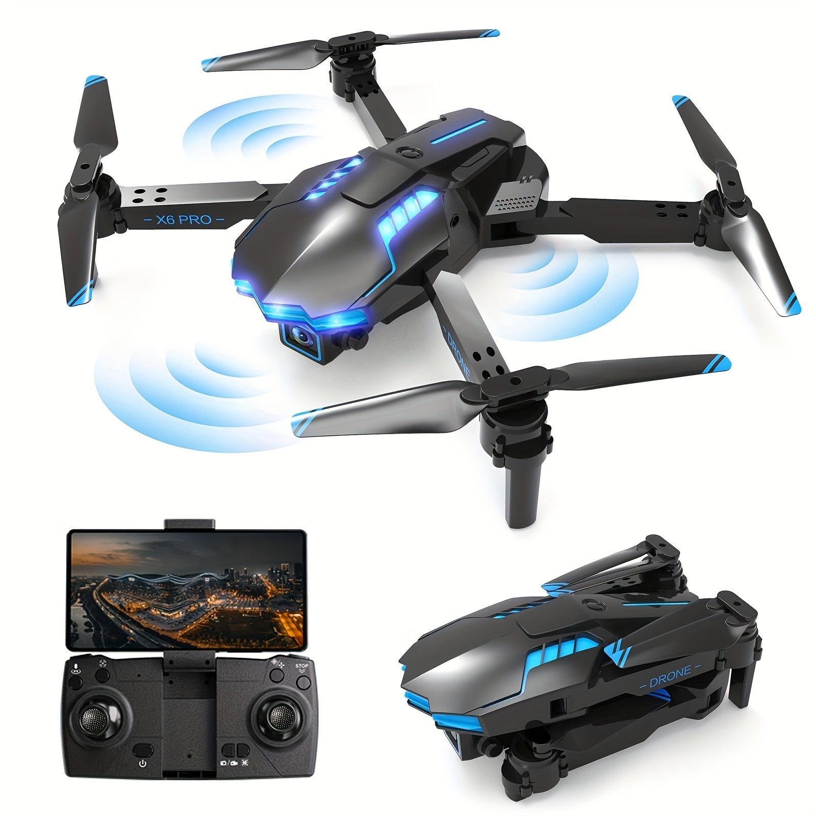 Drone Pliable XKRC X6 avec Double Caméras, Évitement d'Obstacles & Mode Gravité - Inclut Sac de Transport, Vidéo HD 720P, Wi-Fi Activé