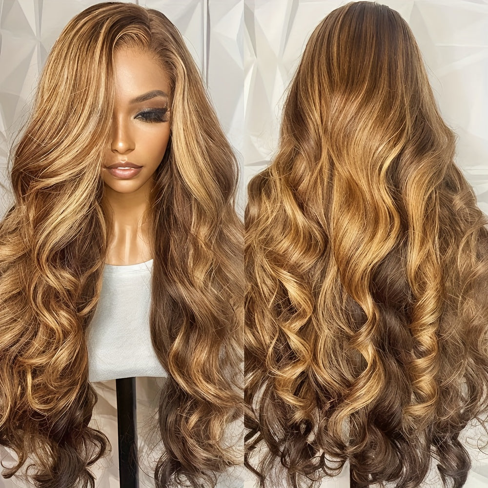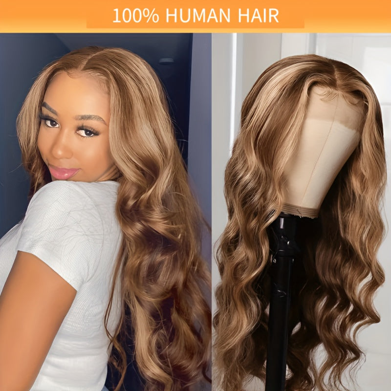[Durable Build] Luxurious Honey Blonde Ombre Lace Front Wig - 4x4 HD Transparent, Body Wave Style, Pre-Plucked with Baby Hair, Glueless Human Hair Wig for Women, 150% Density, Wig Accessories