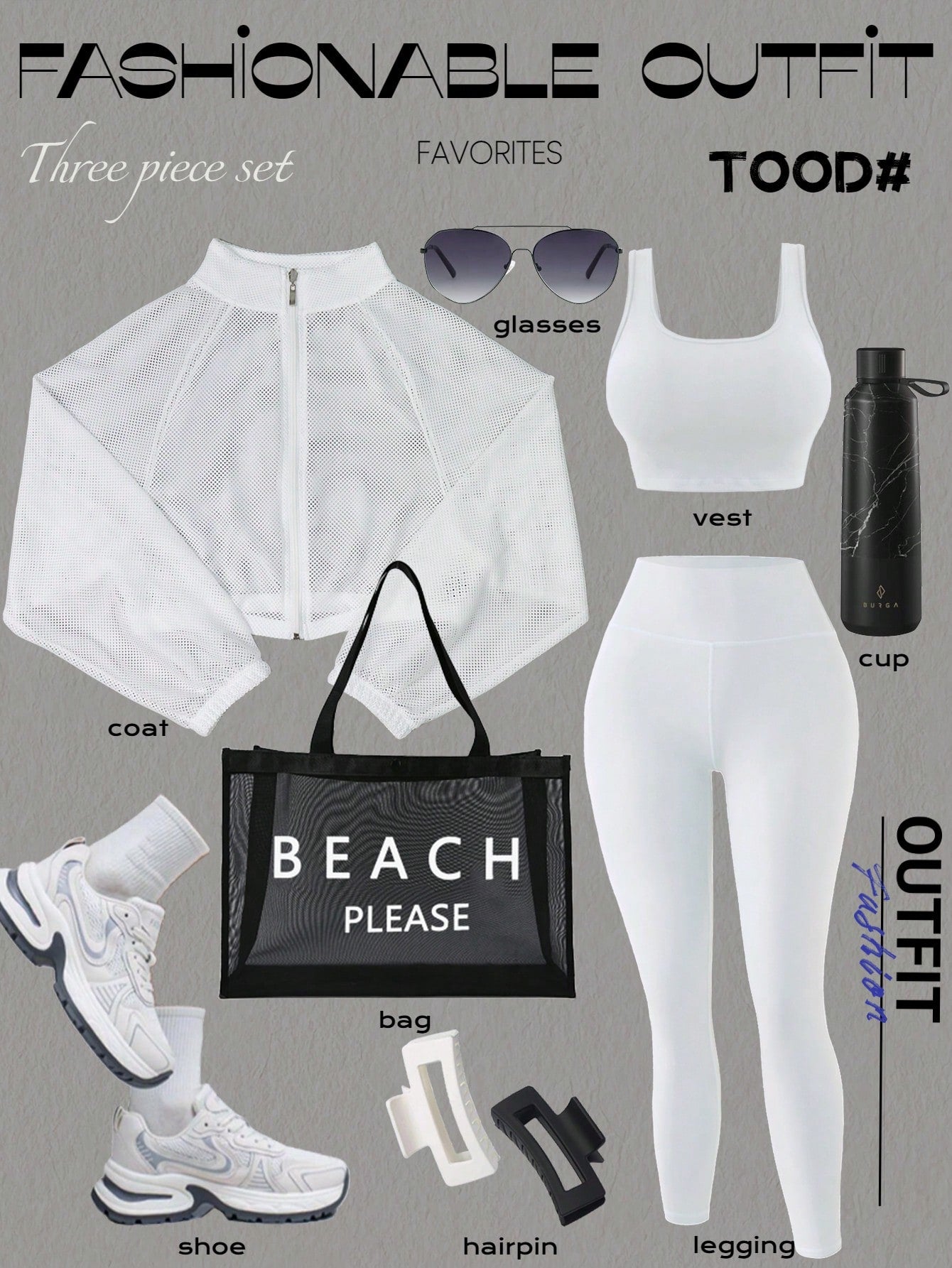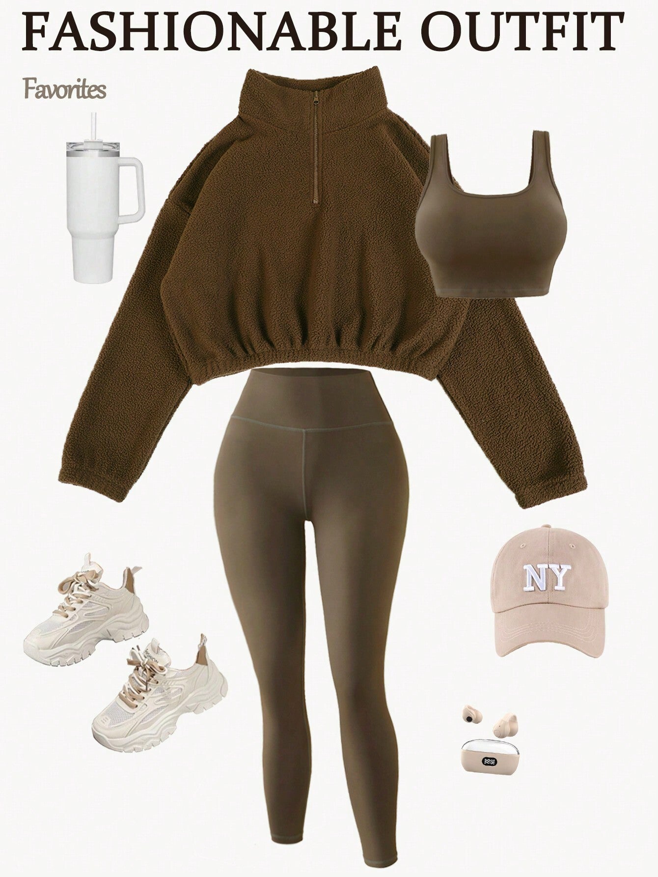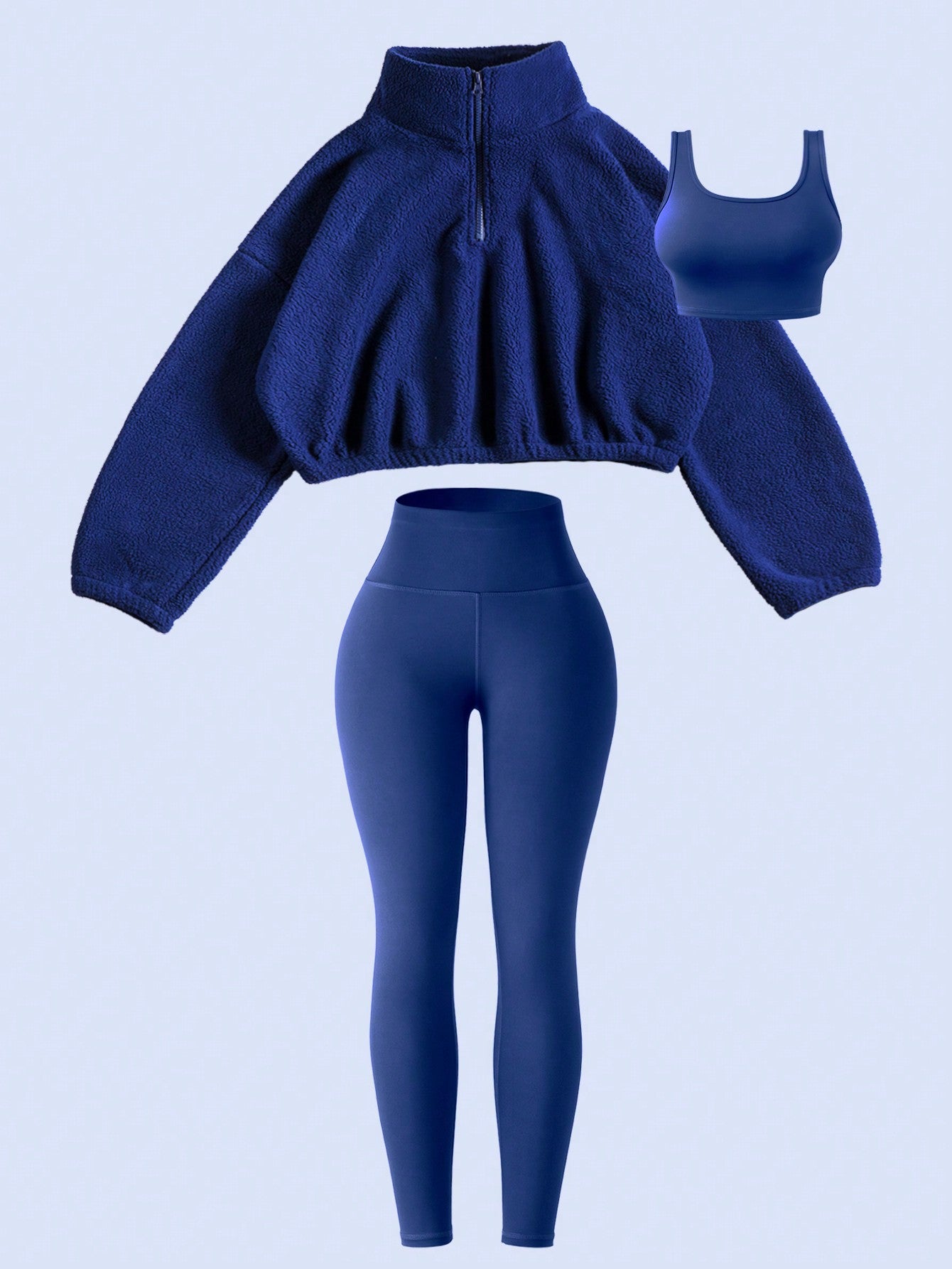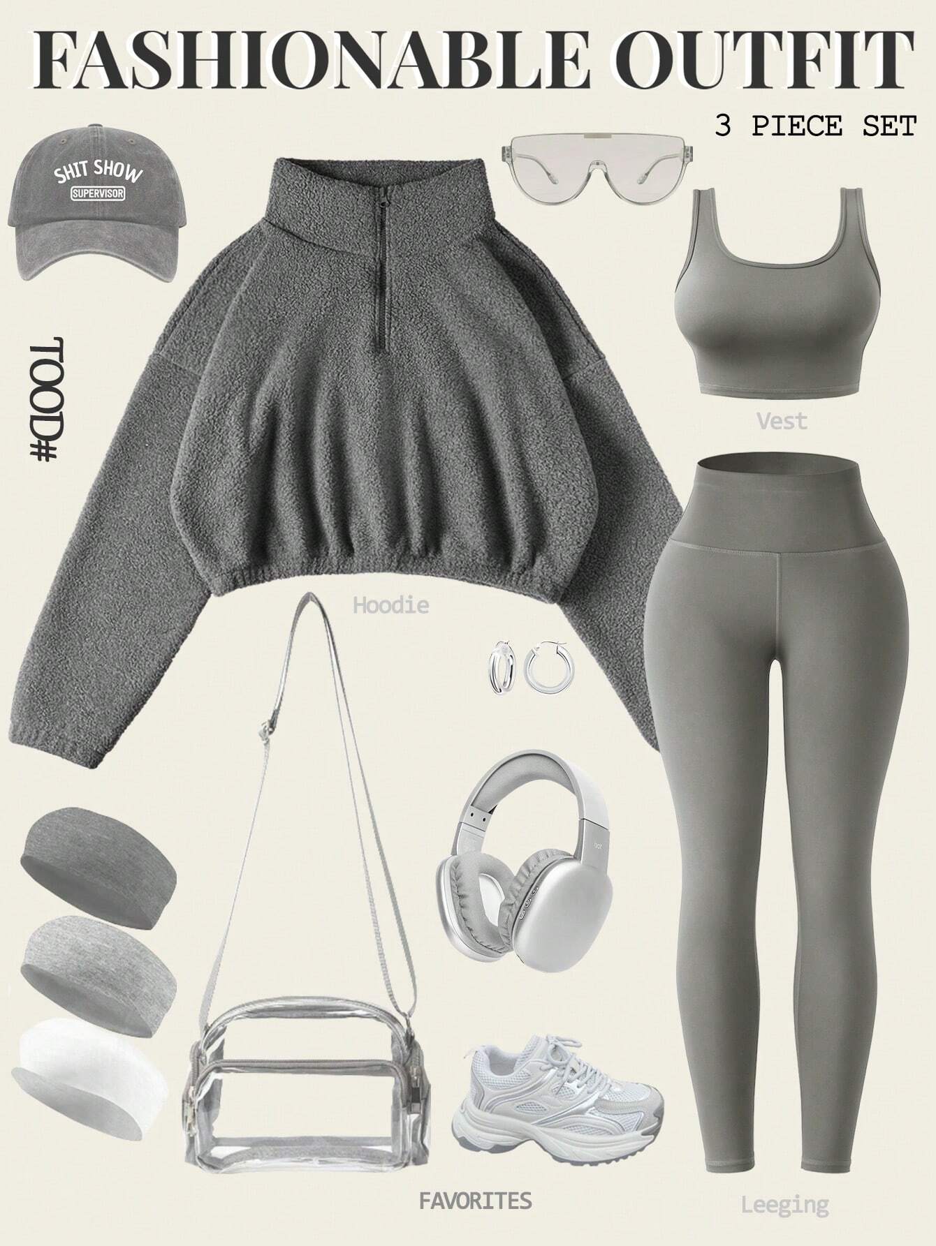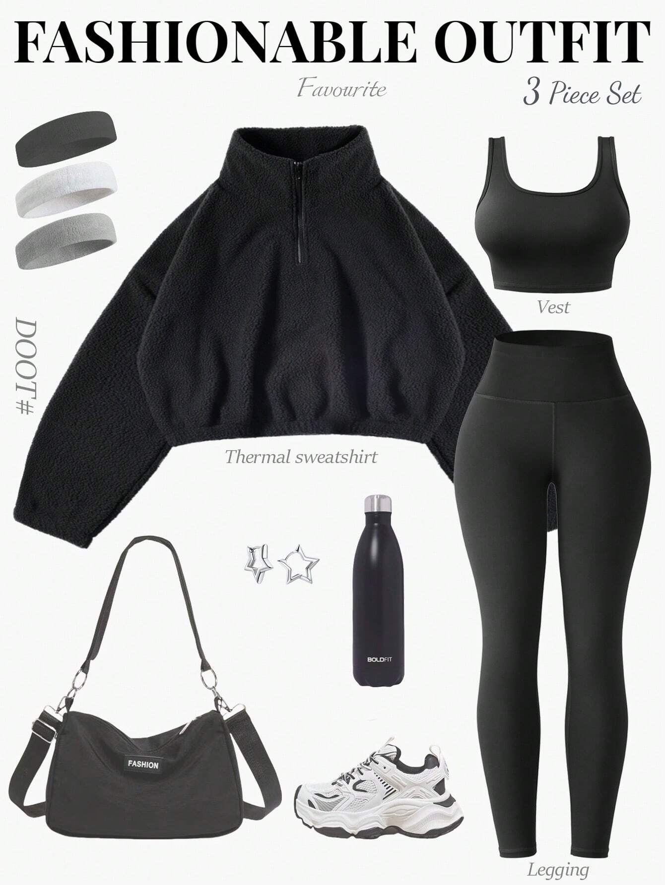 Easify Sport Women 3Pcs/Set Casual Sports Suit - Thermal Lined Wind-Proof Tight Vest, Leggings Pants, Suitable For Running, Fitness, Outdoor Leisure, Autumn/Winter Workout Women Set