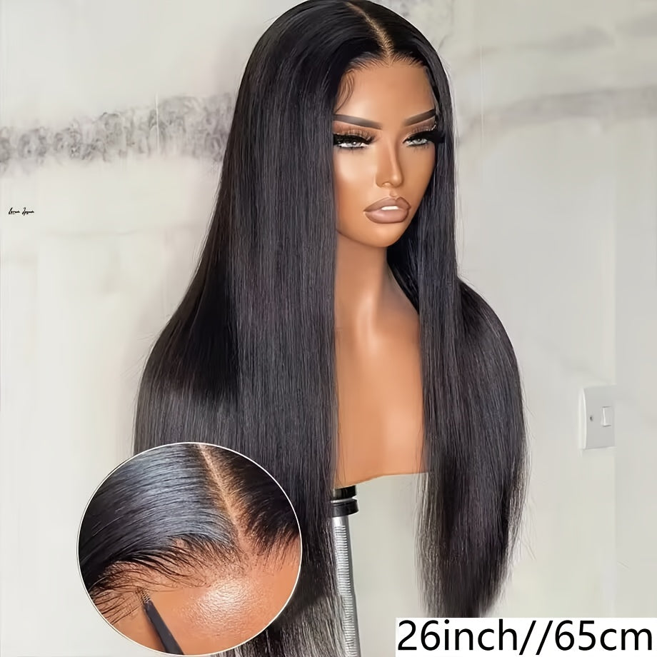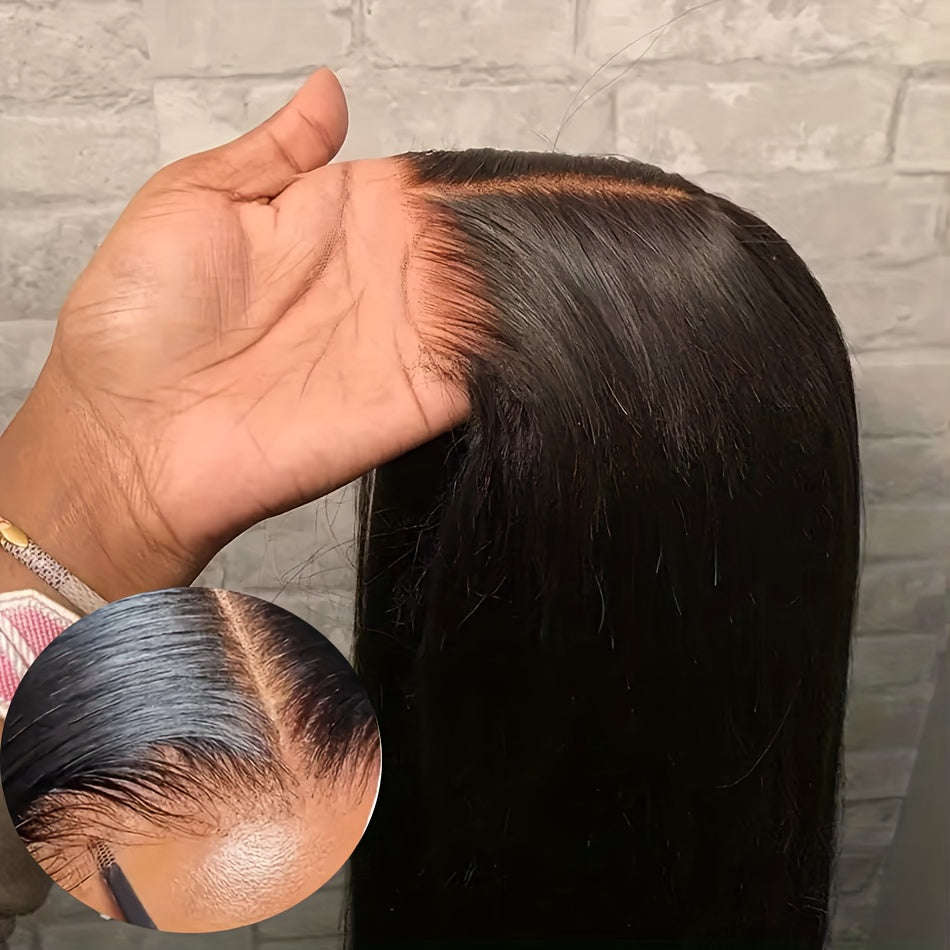 Easy-Wear 5x5 HD Lace Front Wig - Glueless, Pre-Plucked & Cut Straight Human Hair in Black | Transparent Closure with Pre-Bleached Knots