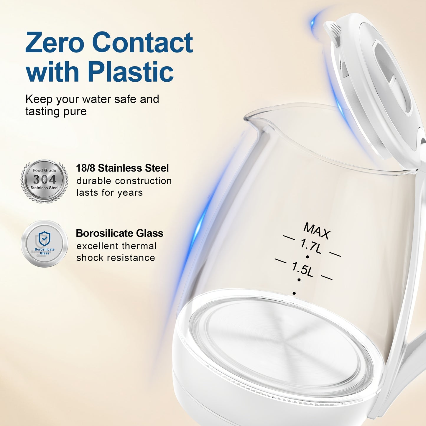 Electric Kettle With Water Dispenser - 57.48oz Elegant Glass Tea Pot, 1200W Fast Boiling, LED Indicator, Auto-Shutoff & Boil-Dry Safety - Perfect For Camping & Kitchen Accessories