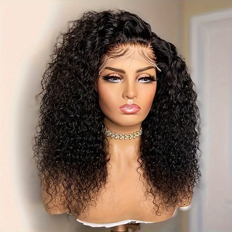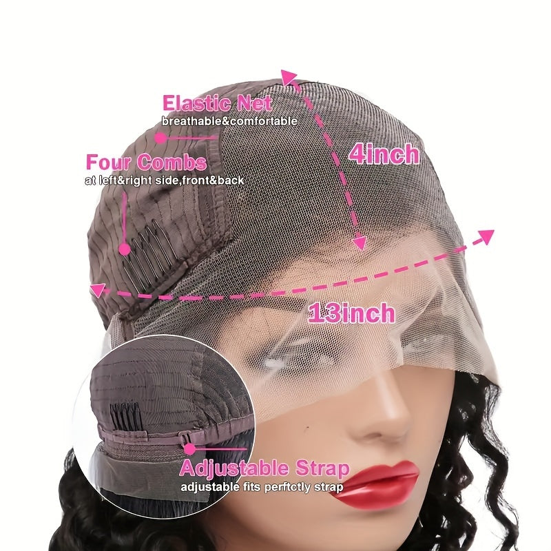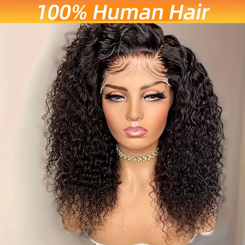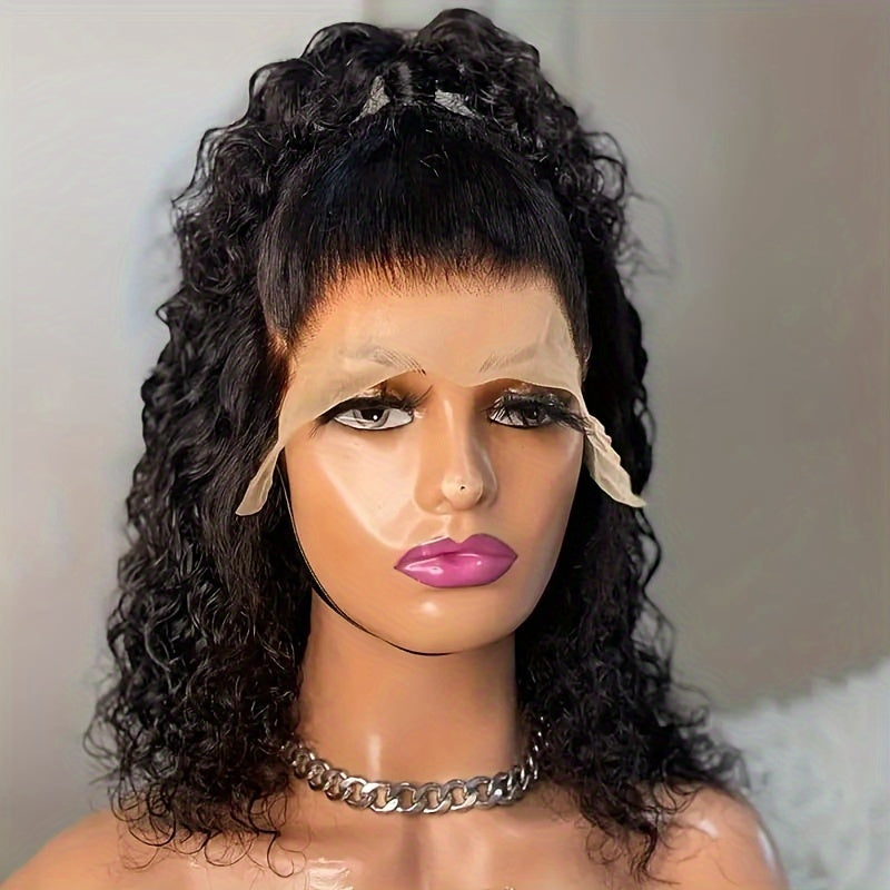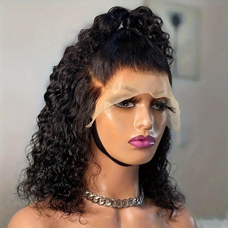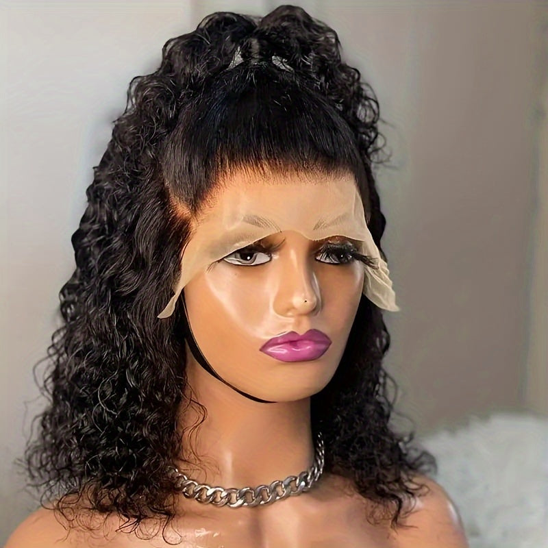Elegant 13x4 Lace Front Wig for Women - Water Wave, 150% Density, Pre-Plucked with Baby Hair, Brazilian Remy Human Hair, Natural Color, 16 Inch