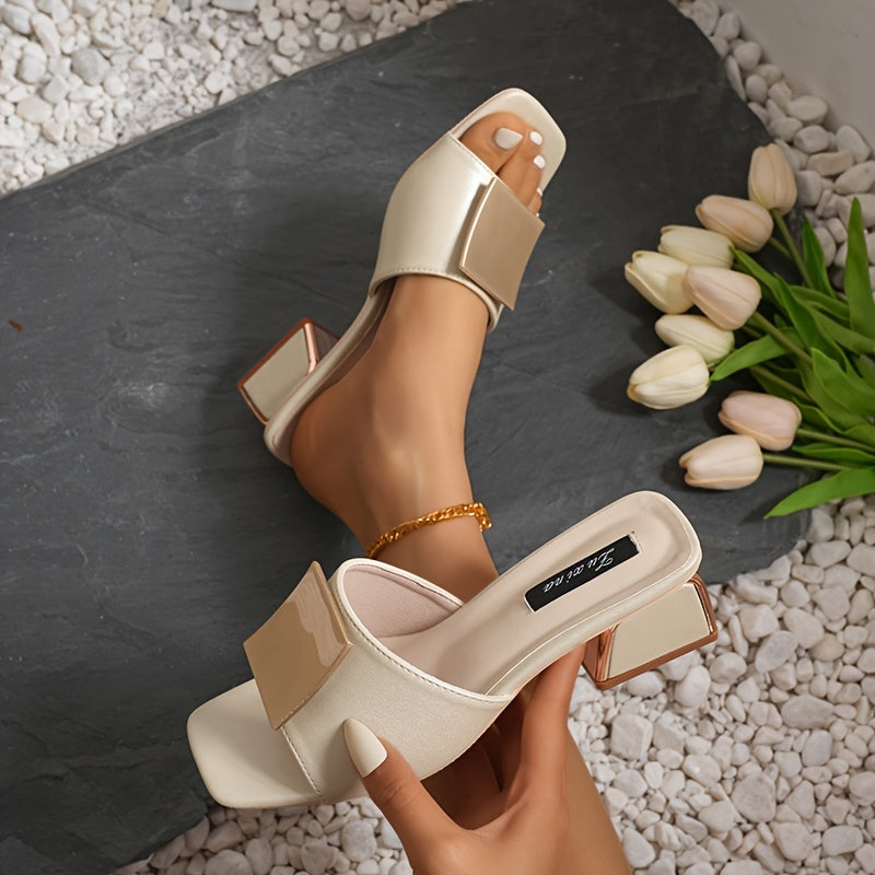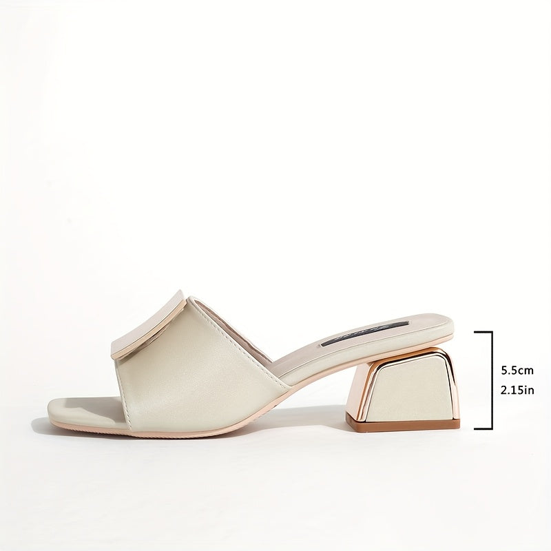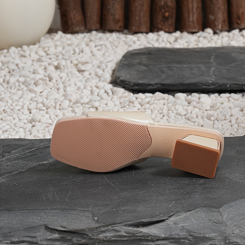 Elegant 2025 Fashionable Women'S Sandals - Beige Synthetic Mary Jane with Block Heel, Open Toe, Slip-On Design, All-Season Comfort, Stylish Footwear | Elegant Footwear | Comfortable Footwear