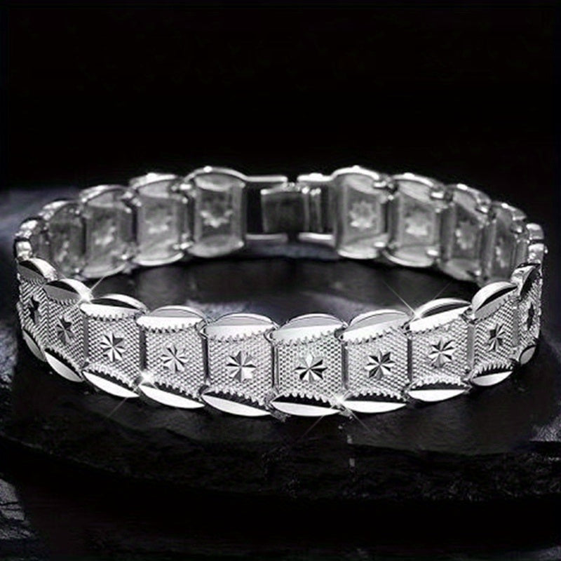 Elegant 925 Sterling Silver Euro Coin Pattern Wide Bracelet, Suitable For Both Women And Men, With A 12mm Wide Coin Design, Hypoallergenic, Suitable For Daily Wear And Special Occasions, An Ideal Christmas Gift
