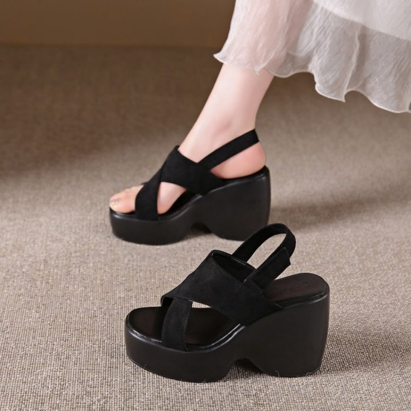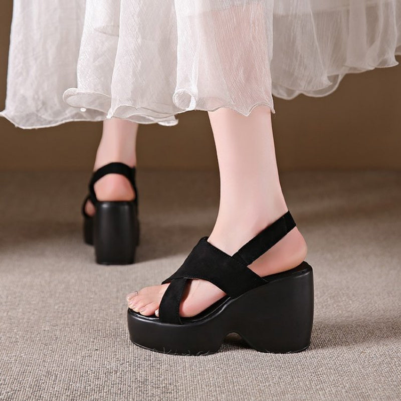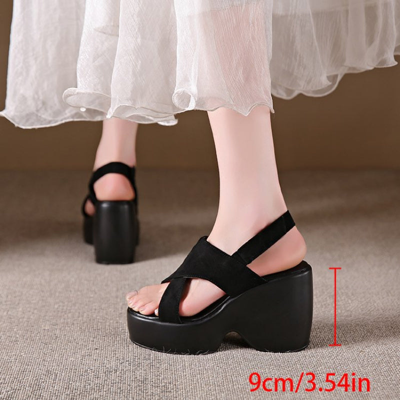 Elegant Black Platform Heeled Sandals for Women - Open Toe, Wedge Sole, Ankle Strap, Summer Fashion Roman Style Shoes, Versatile & Stylish, Ladies Sandals