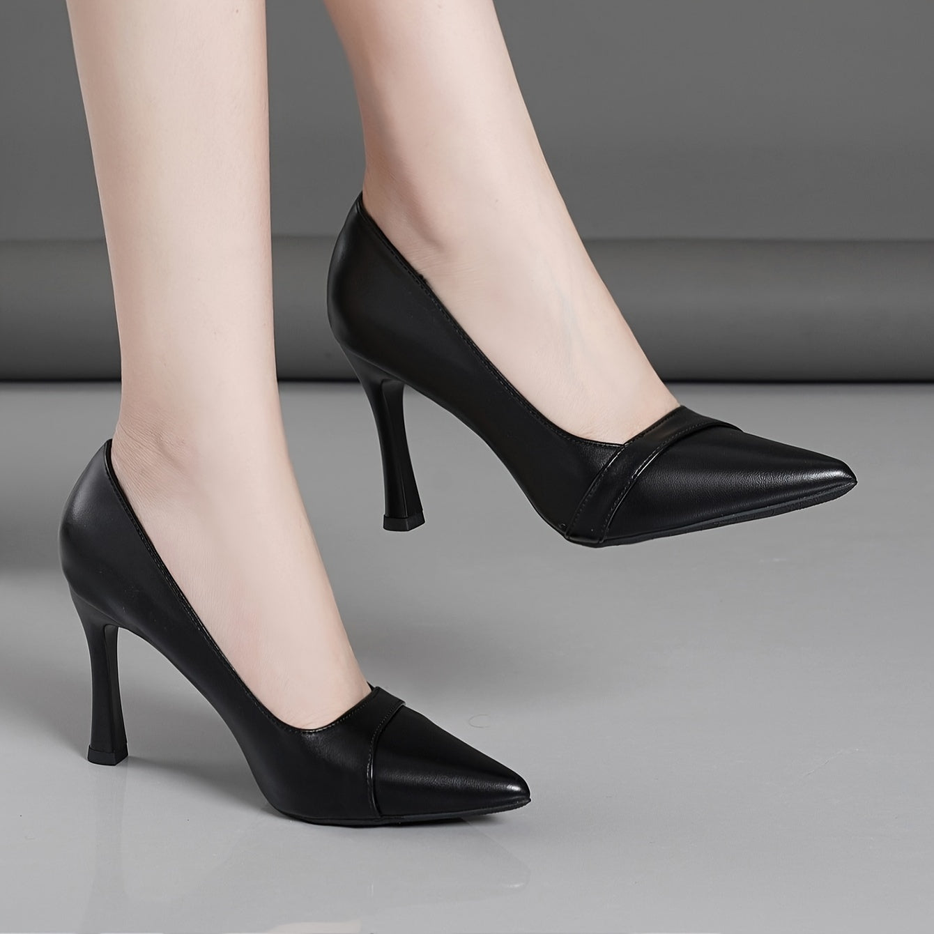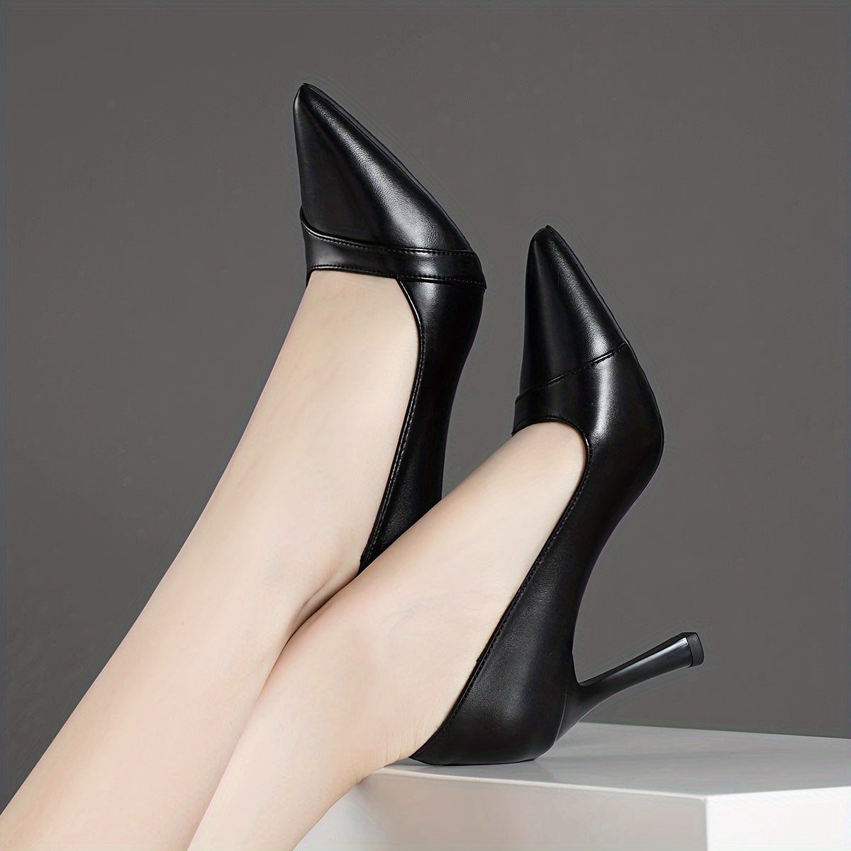 Elegant Black Pointed Toe Stiletto Heels for Women - Lightweight, Comfortable Faux Cover Dress Pumps with Sleek High Heel, Ideal for Professional and Formal Occasions, Formal Event Shoes | Minimalist Design | Synthetic Cover Shoes