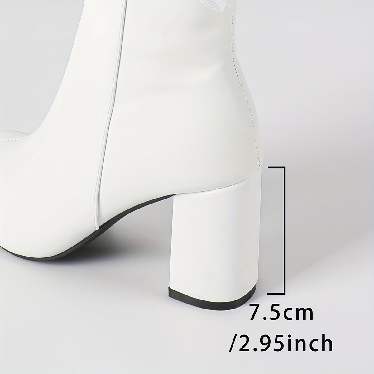 [Elegant Boot Design] Elegant White Knee-High Boots with Bow Detail | Chunky Heel, Round Toe, Side Zipper, Synthetic Cover, Comfortable Fabric Lining, Perfect for Casual or Dressy Occasions, Durable PVC Sole