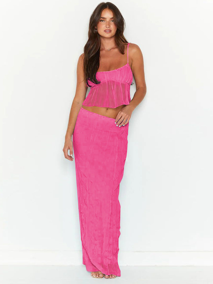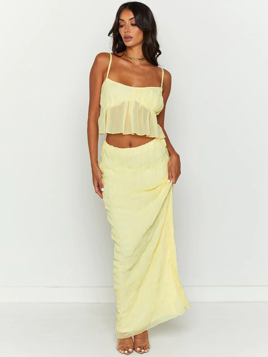 Elegant Chiffon Skirt Two Piece Women Suspender Skirt Set