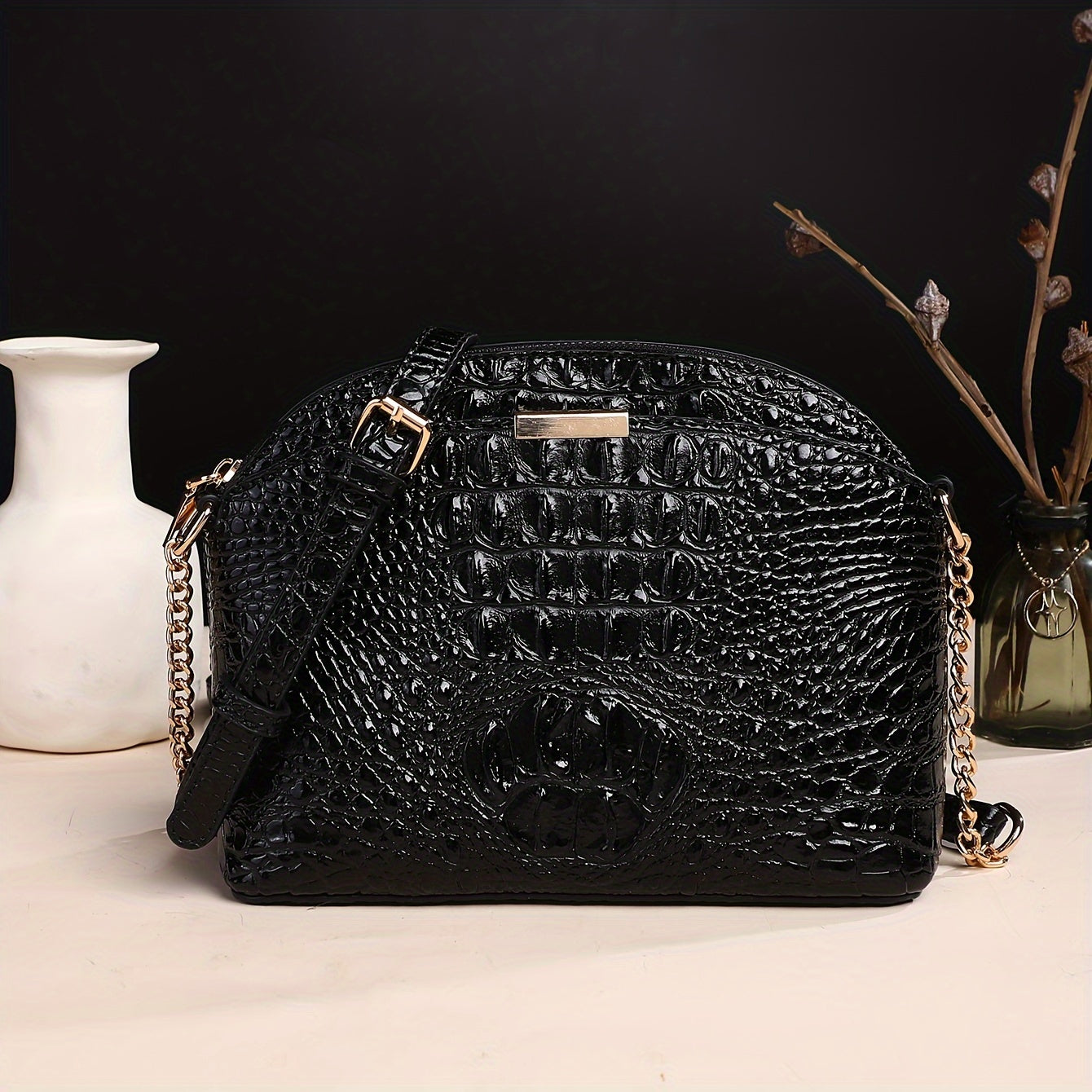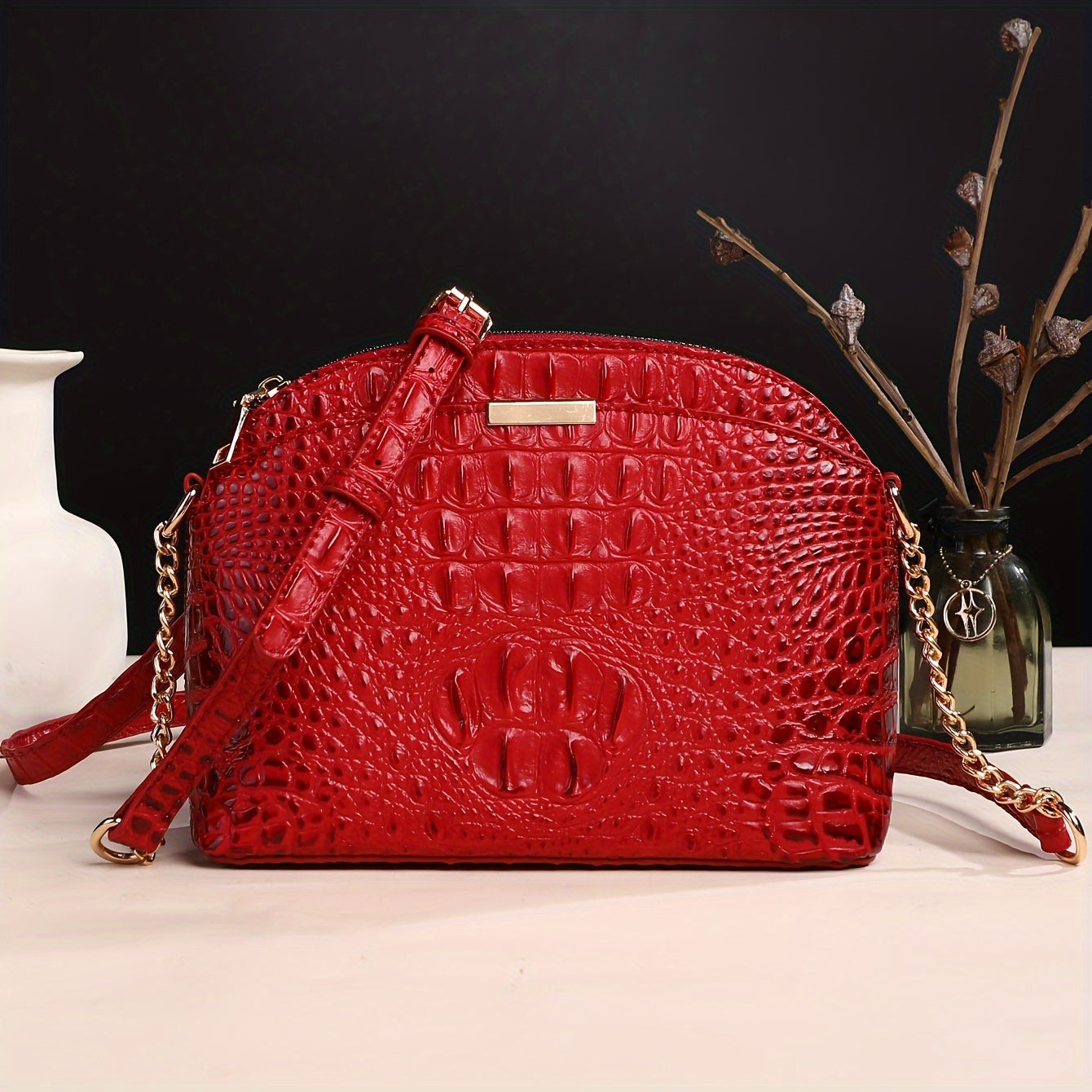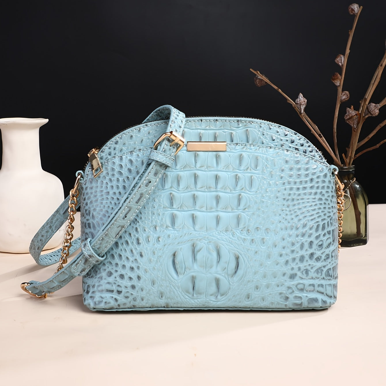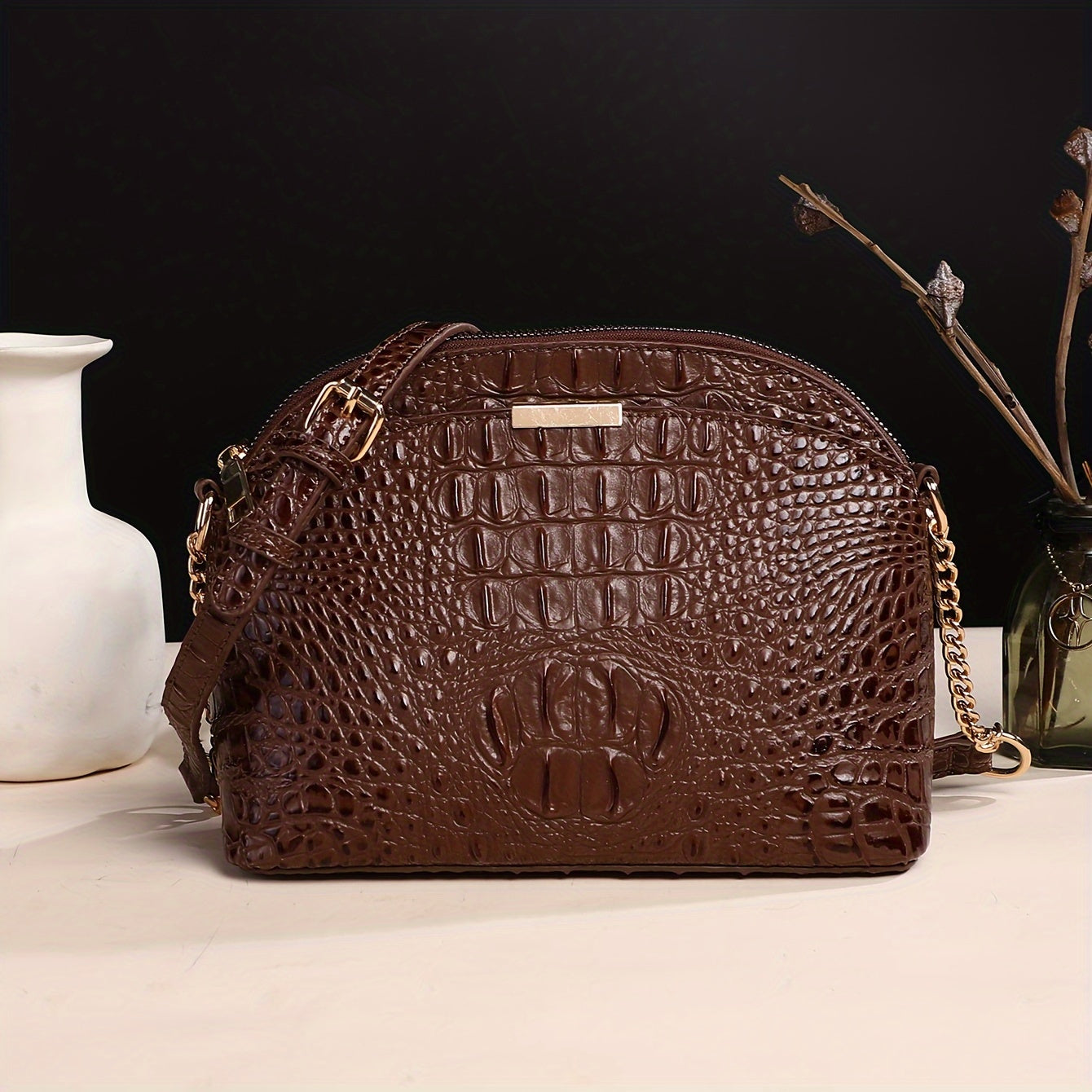 Elegant Crocodile Embossed Crossbody Bag, Textured Shoulder Handbag & Purse for Women