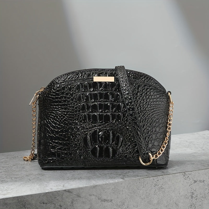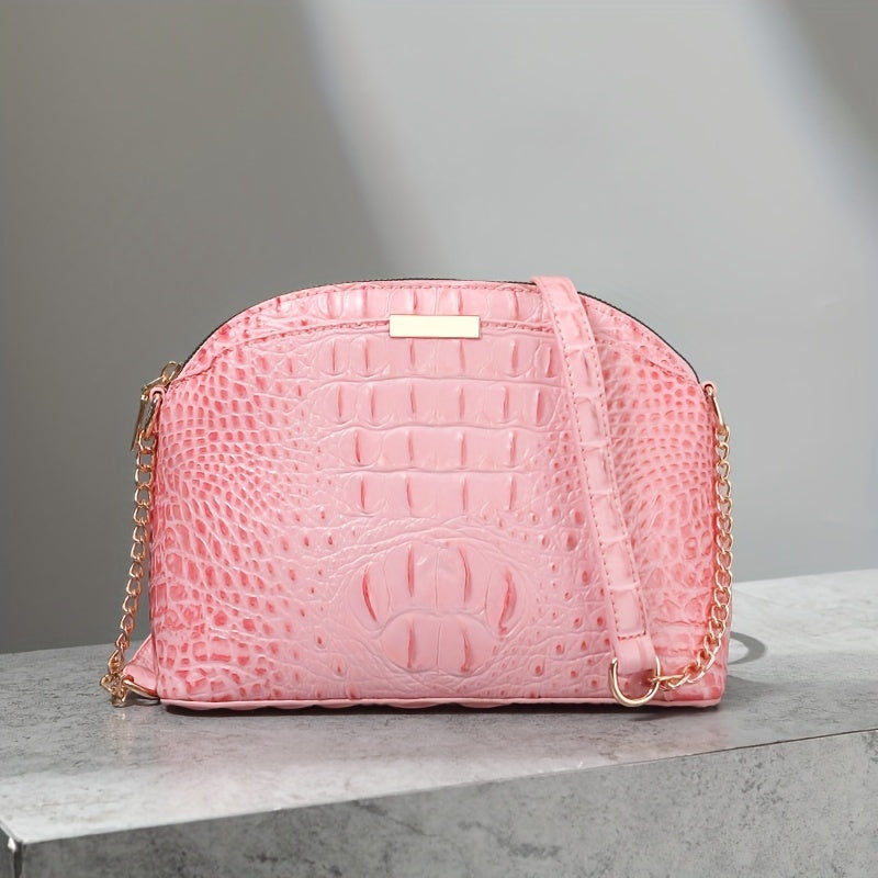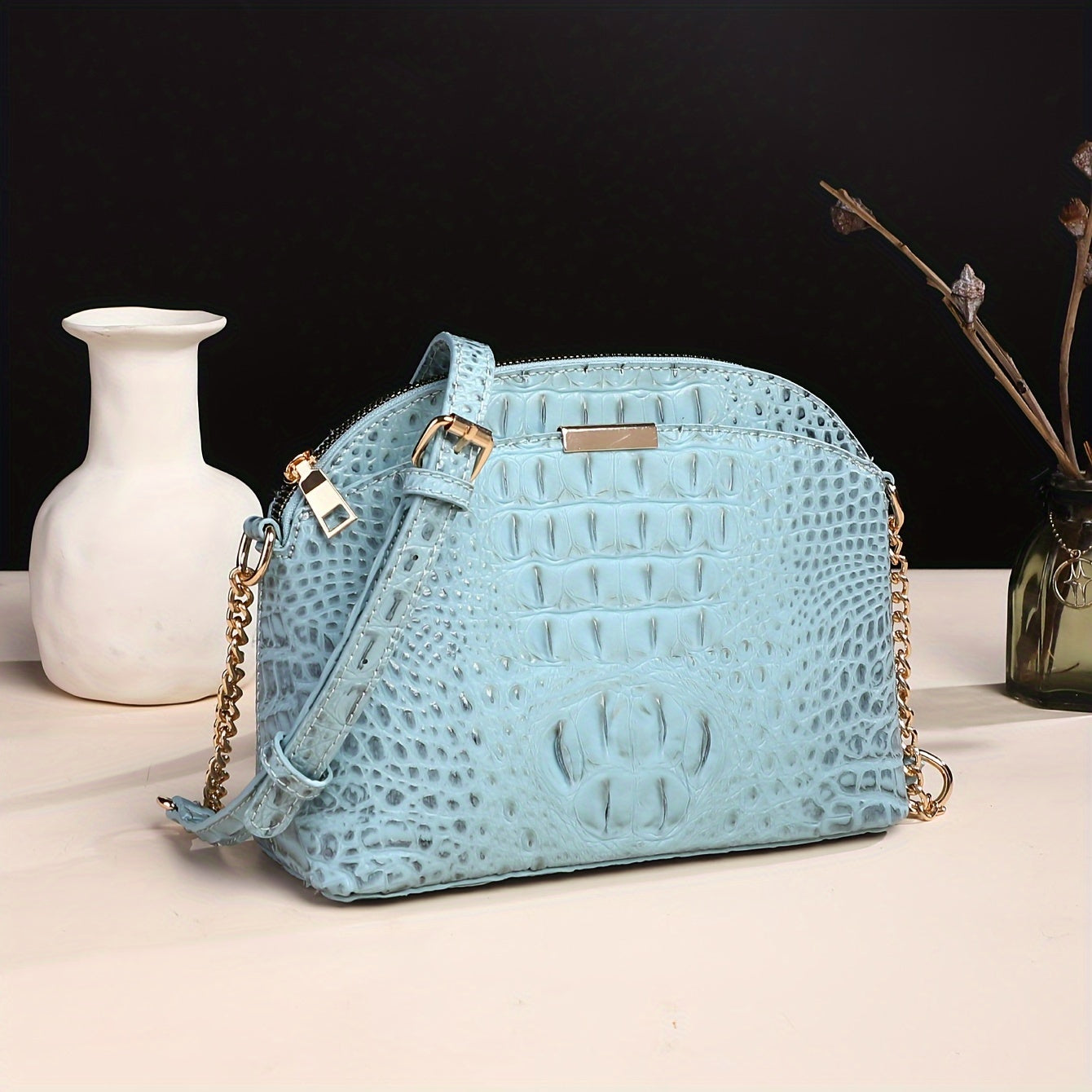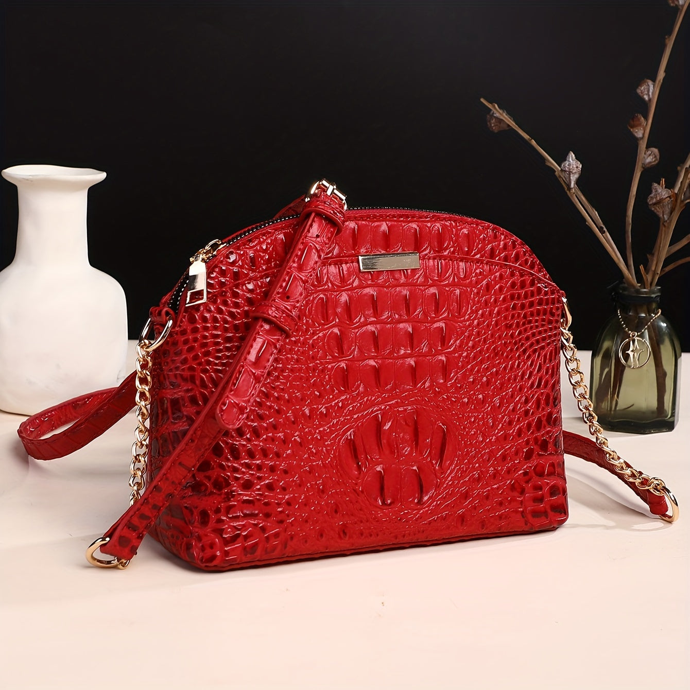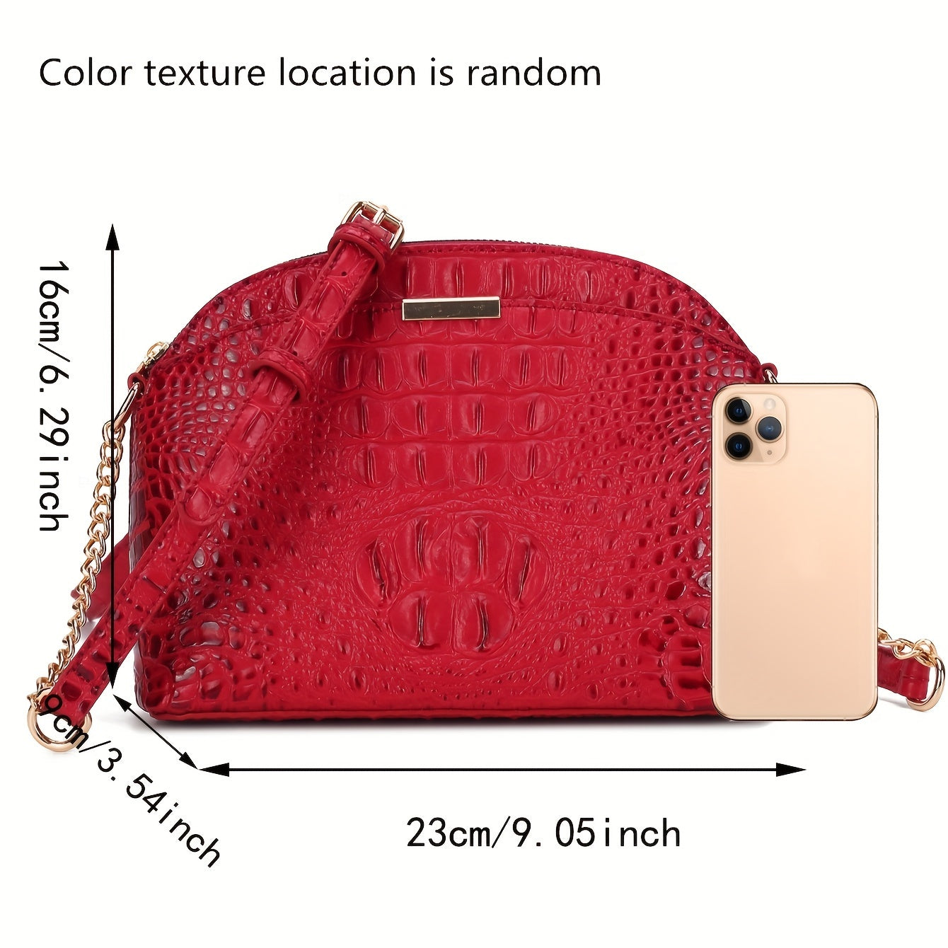 Elegant Crocodile Embossed Crossbody Bag, Textured Shoulder Handbag & Purse for Women