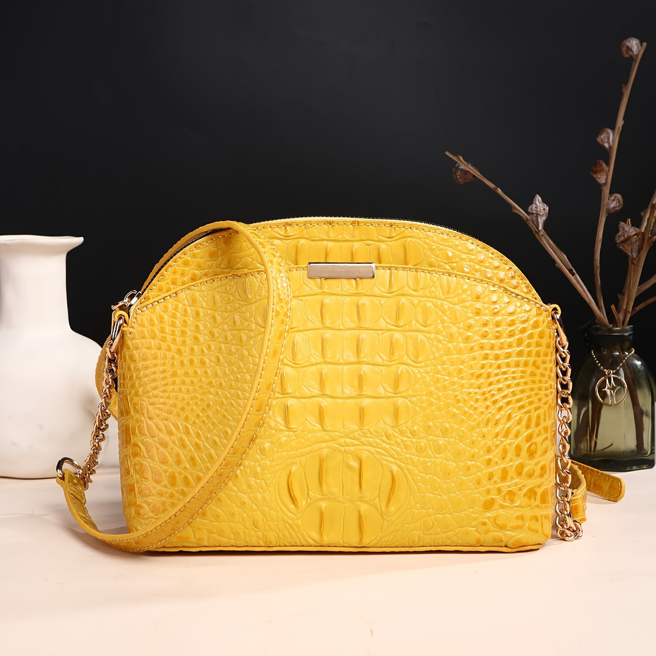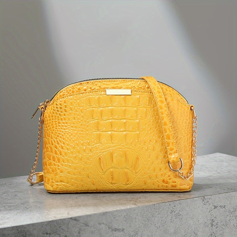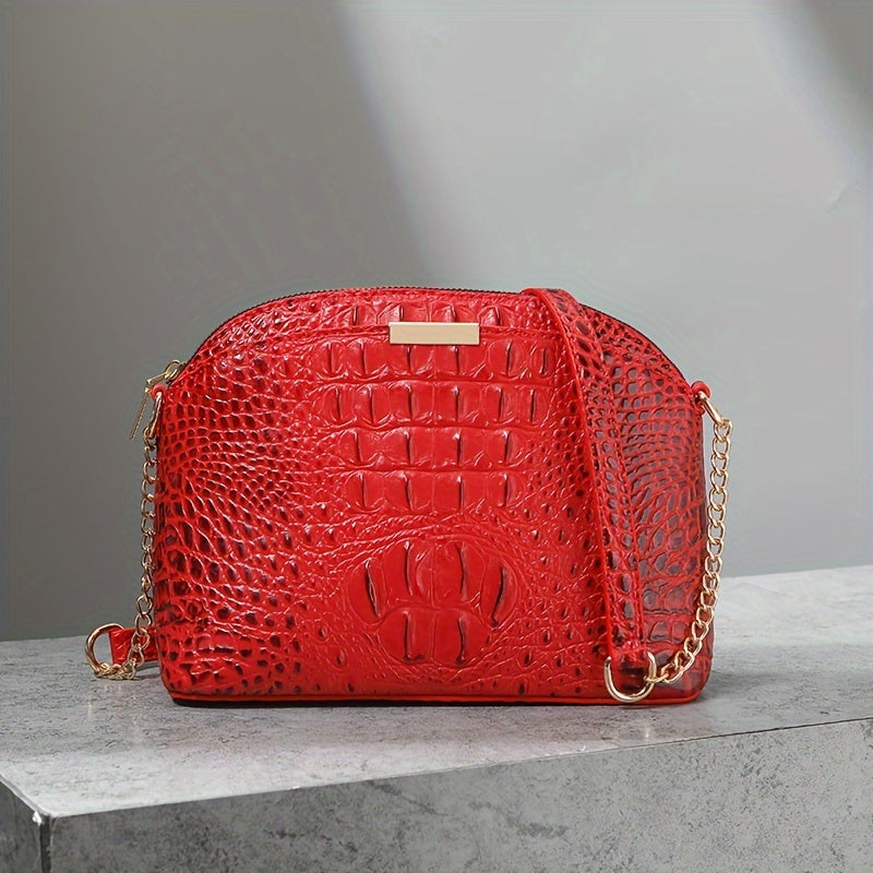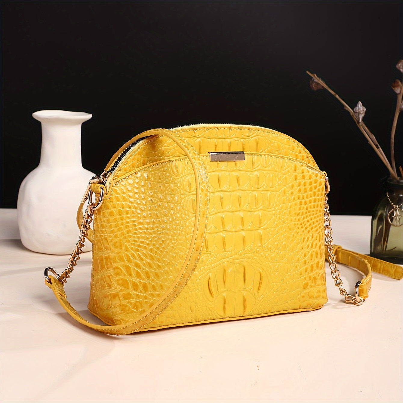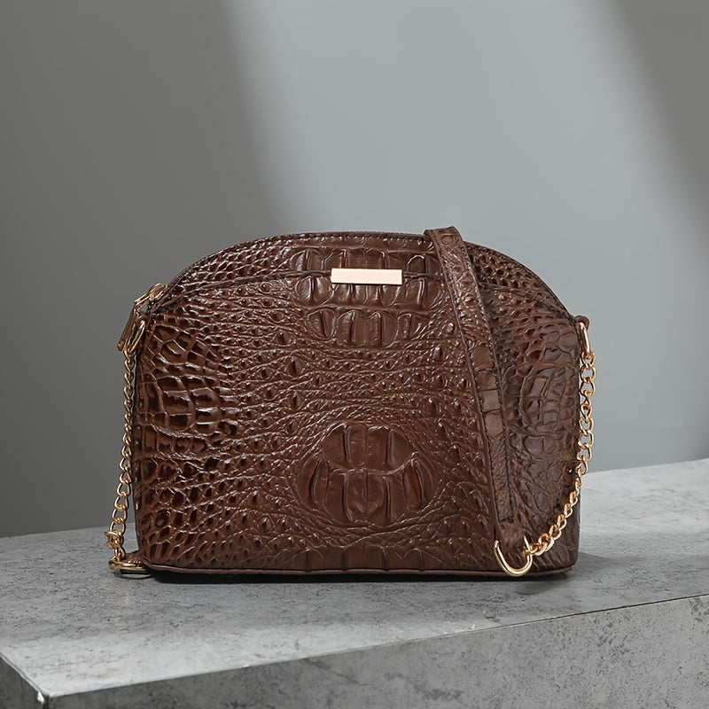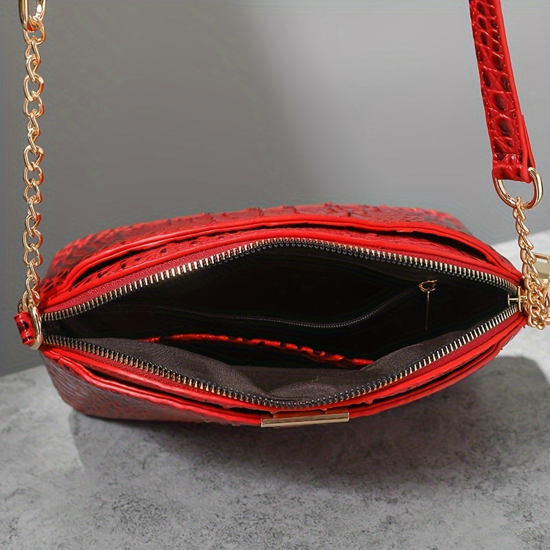 Elegant Crocodile Embossed Crossbody Bag, Textured Shoulder Handbag & Purse for Women