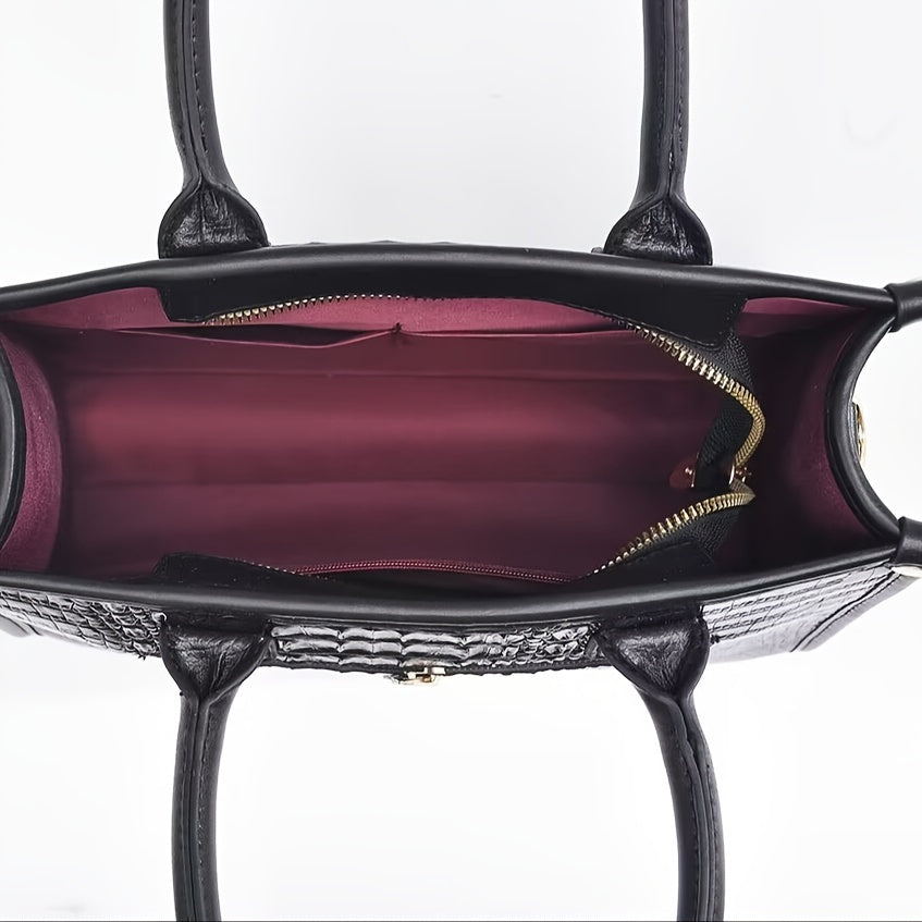 Elegant Crocodile Pattern PU Handbags Set For Women, Luxury Tote With Large Capacity Shoulder Bag And Clutch Combo, Vintage Commuter Office Bag