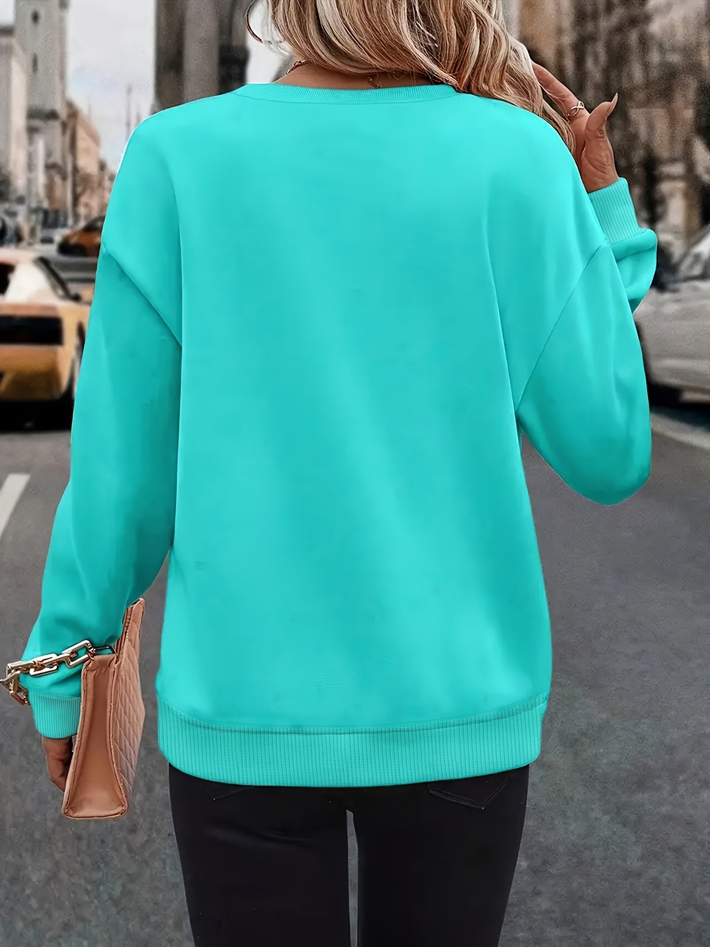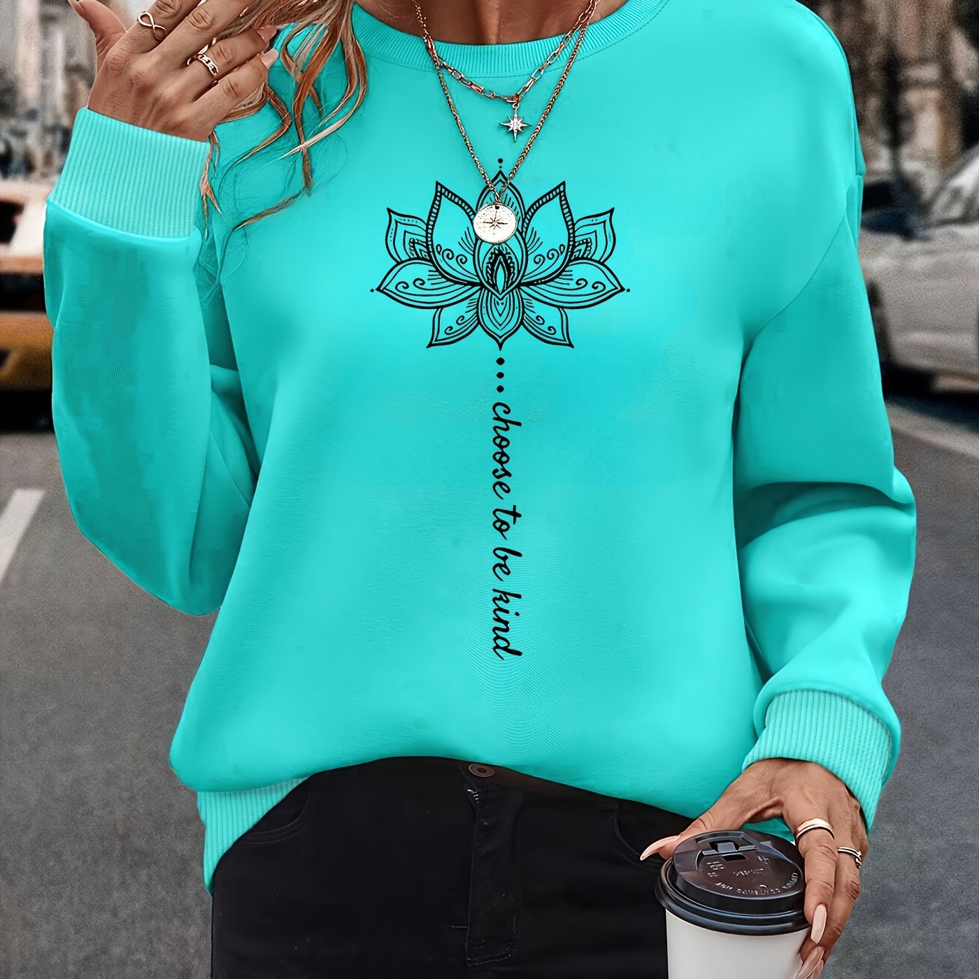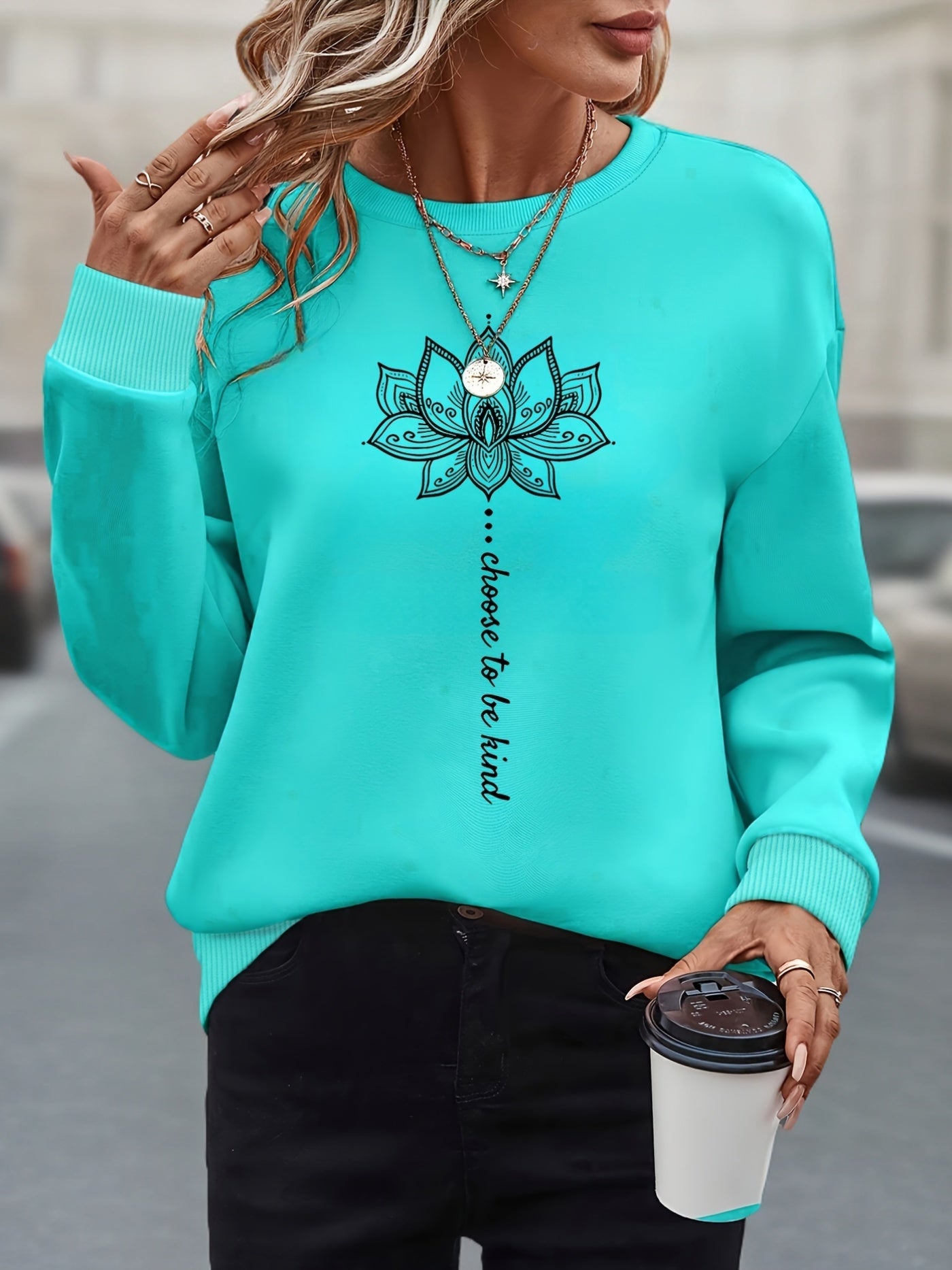 [Elegant Letter Print Polyester Sweatshirt] Elegant for Lotus & Letter Print Long Sleeve Crew Neck Sweatshirt for Women - Polyester, Machine Washable