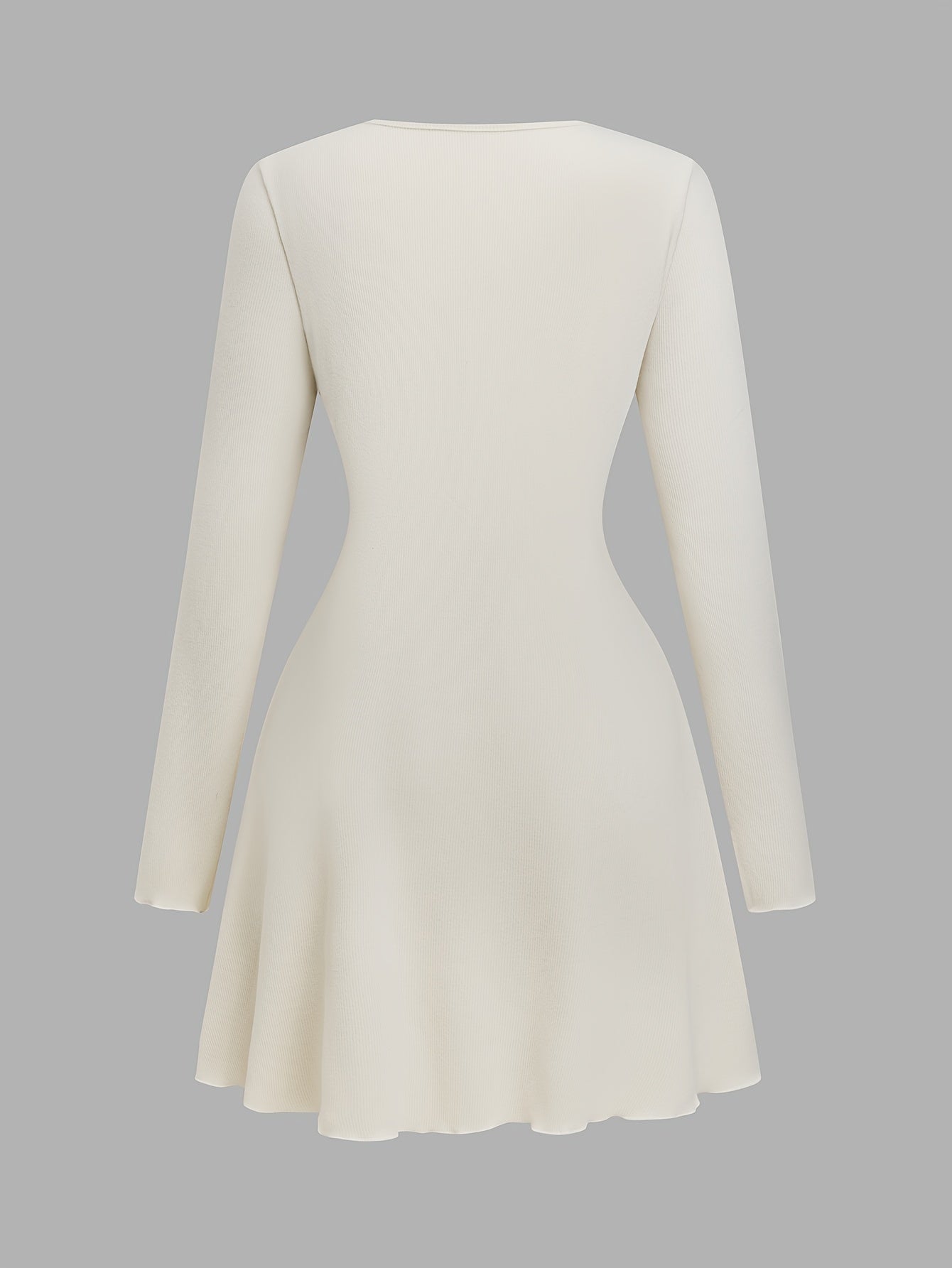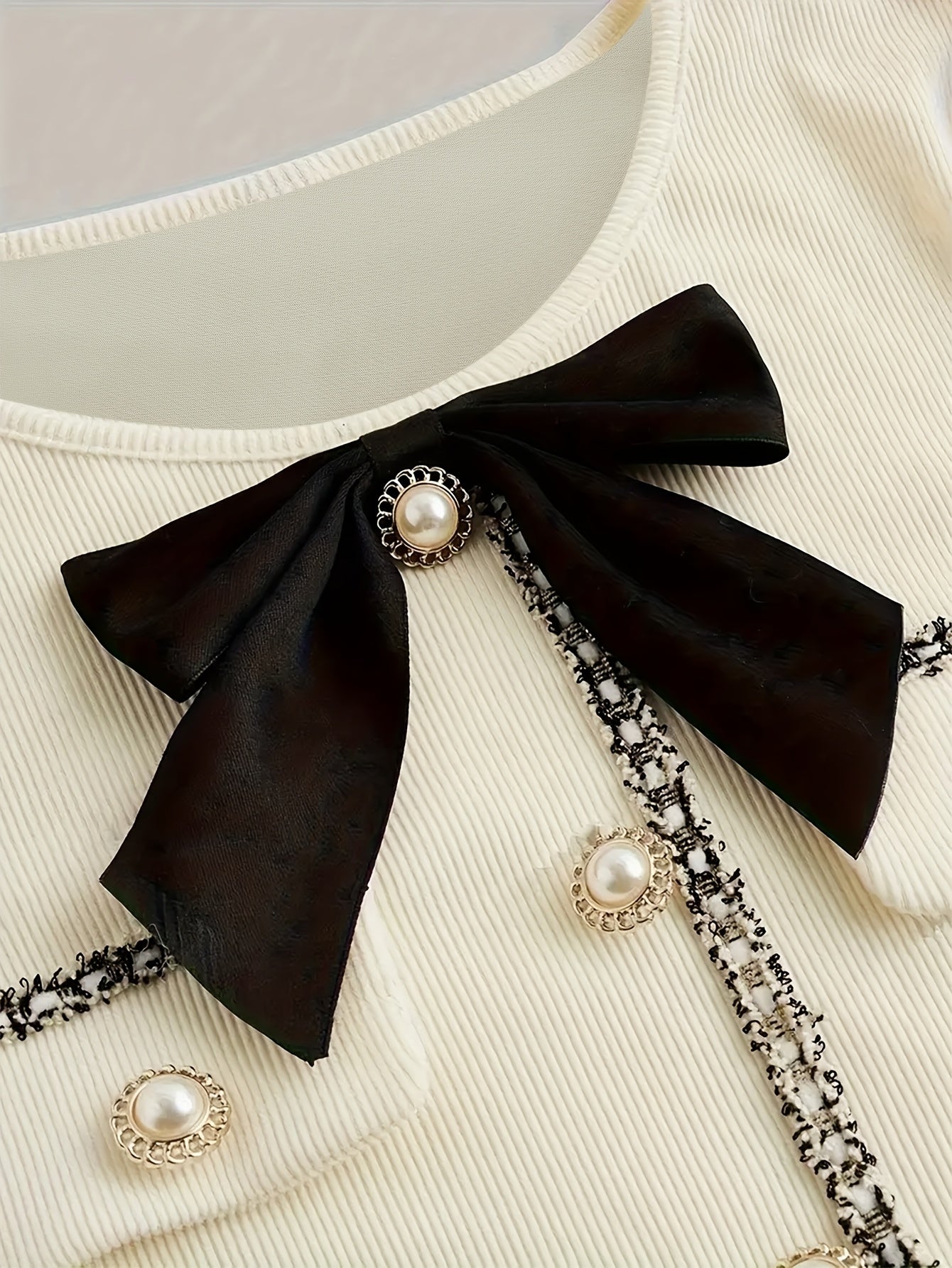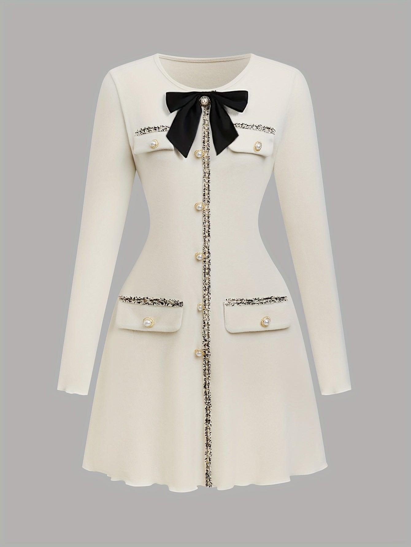 Elegant Long Sleeve A-line Dress - Button Front Bow Decor, Spring & Fall, Women's Clothing