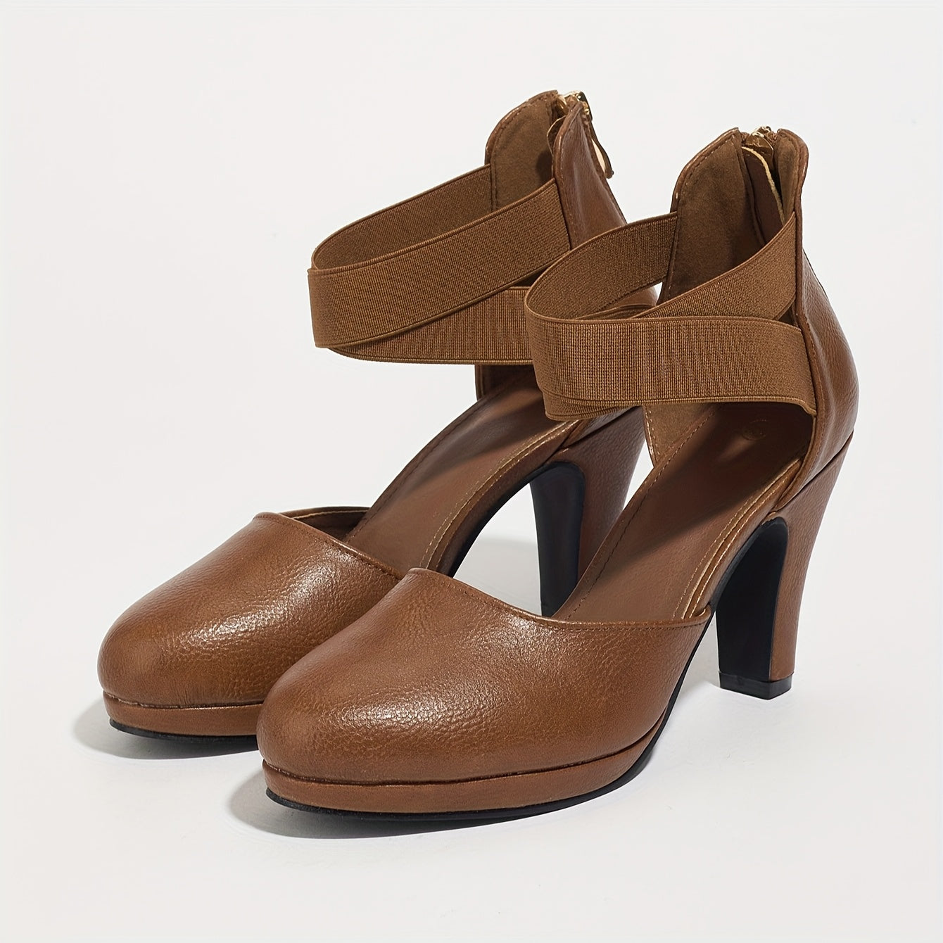 Elegant Nude Brown Women'S Platform High Heels - Waterproof, Sleek Finish, Round Toe, Cascading Heel Design, Perfect for Formal Events and Casual Outings, Versatile High Heels | Sleek Dress Heels | Dressy Look Heels