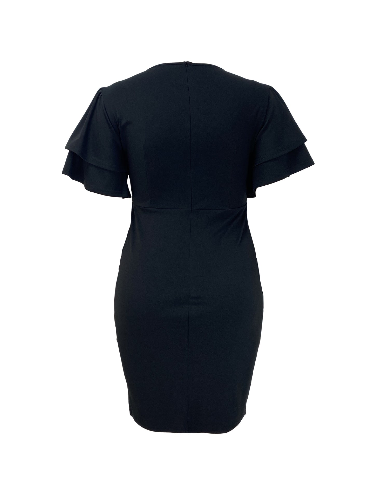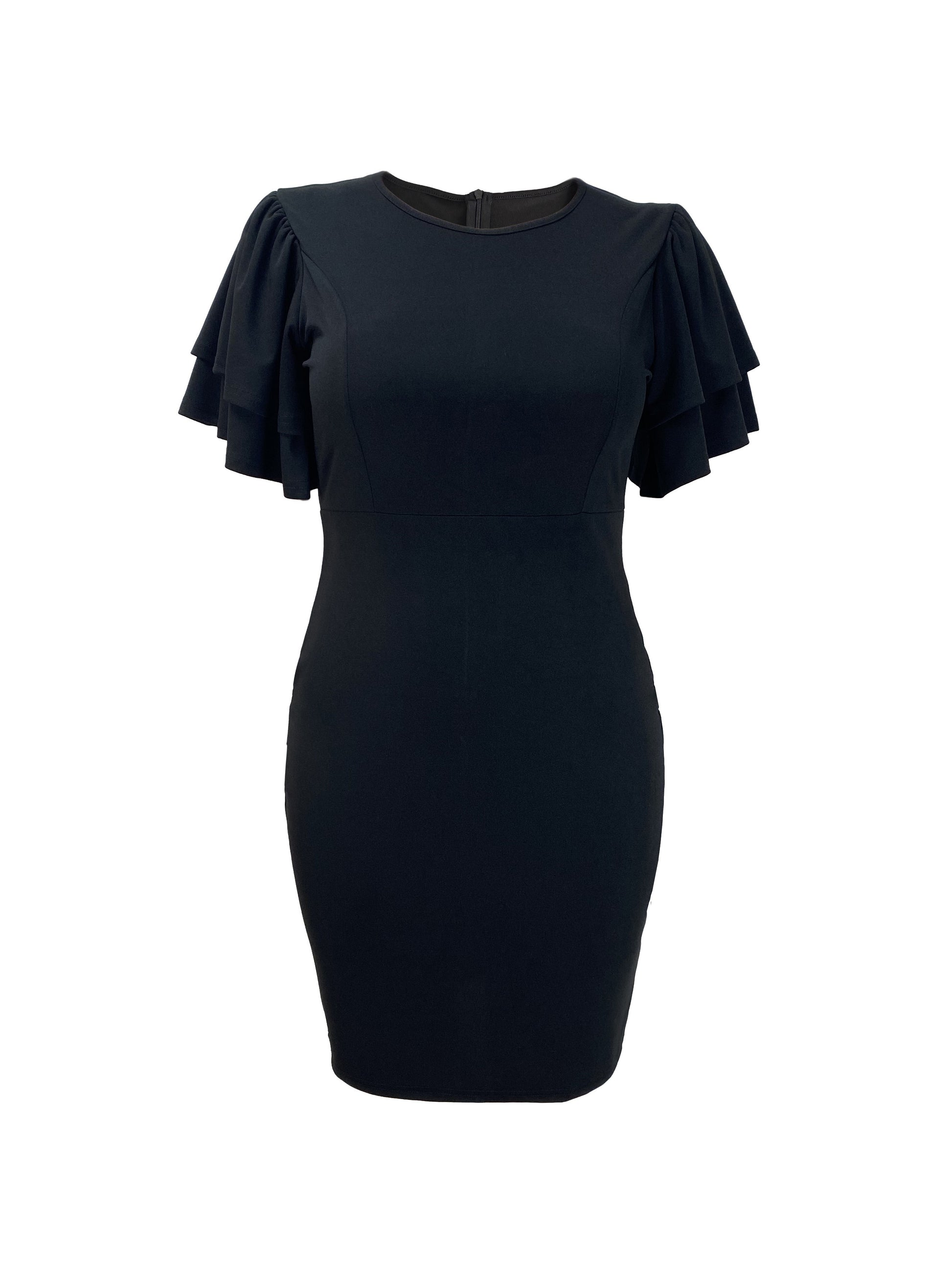 [Elegant Plus Size Dress] Plus Size Elegant Bodycon Midi Dress - Chic Crew Neck, Stretchy Polyester Blend, Machine Washable - Ideal for Work & Social Events