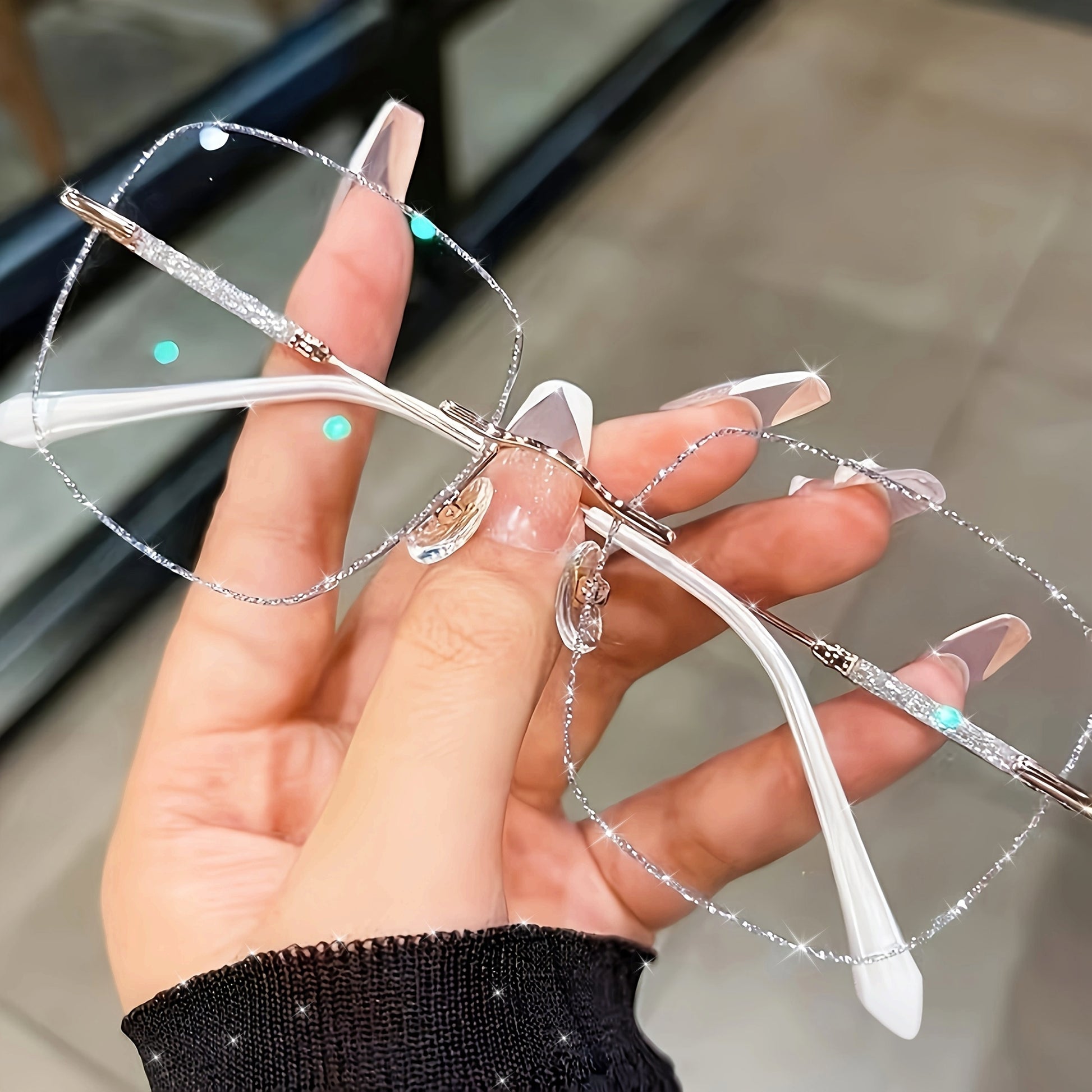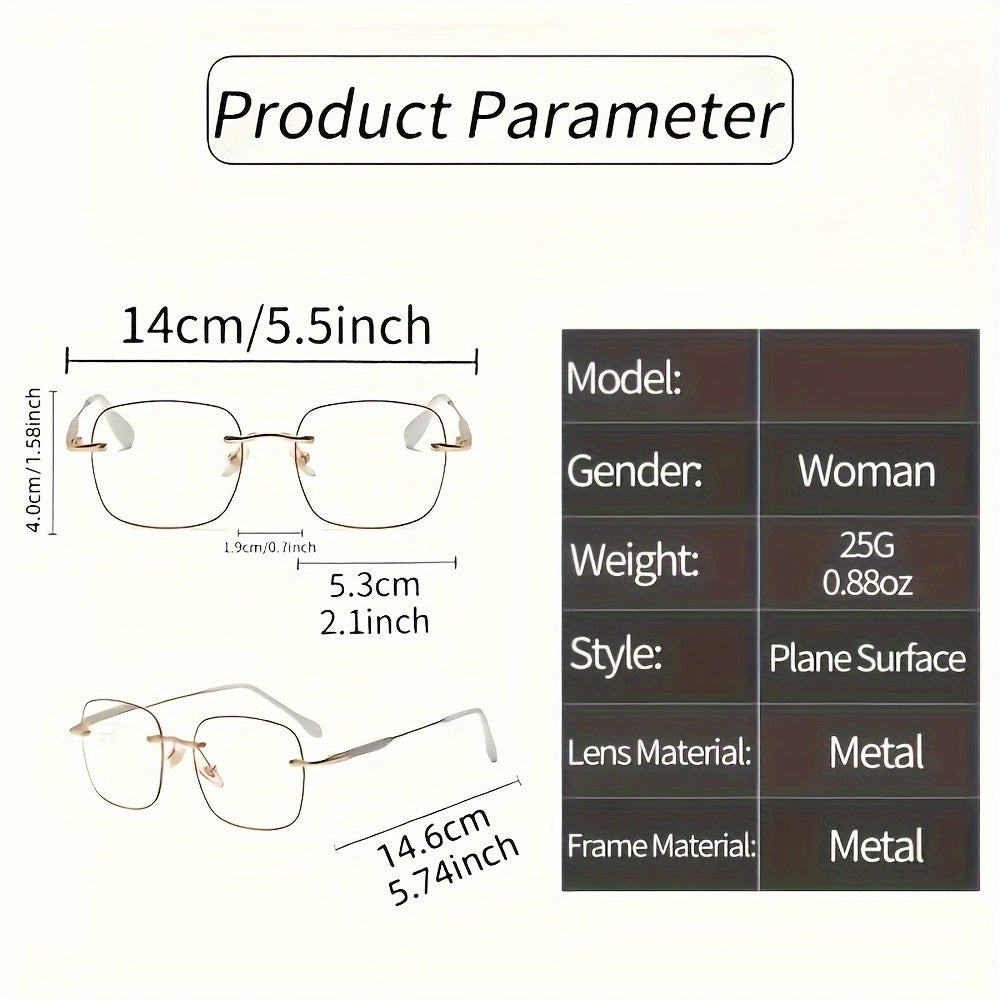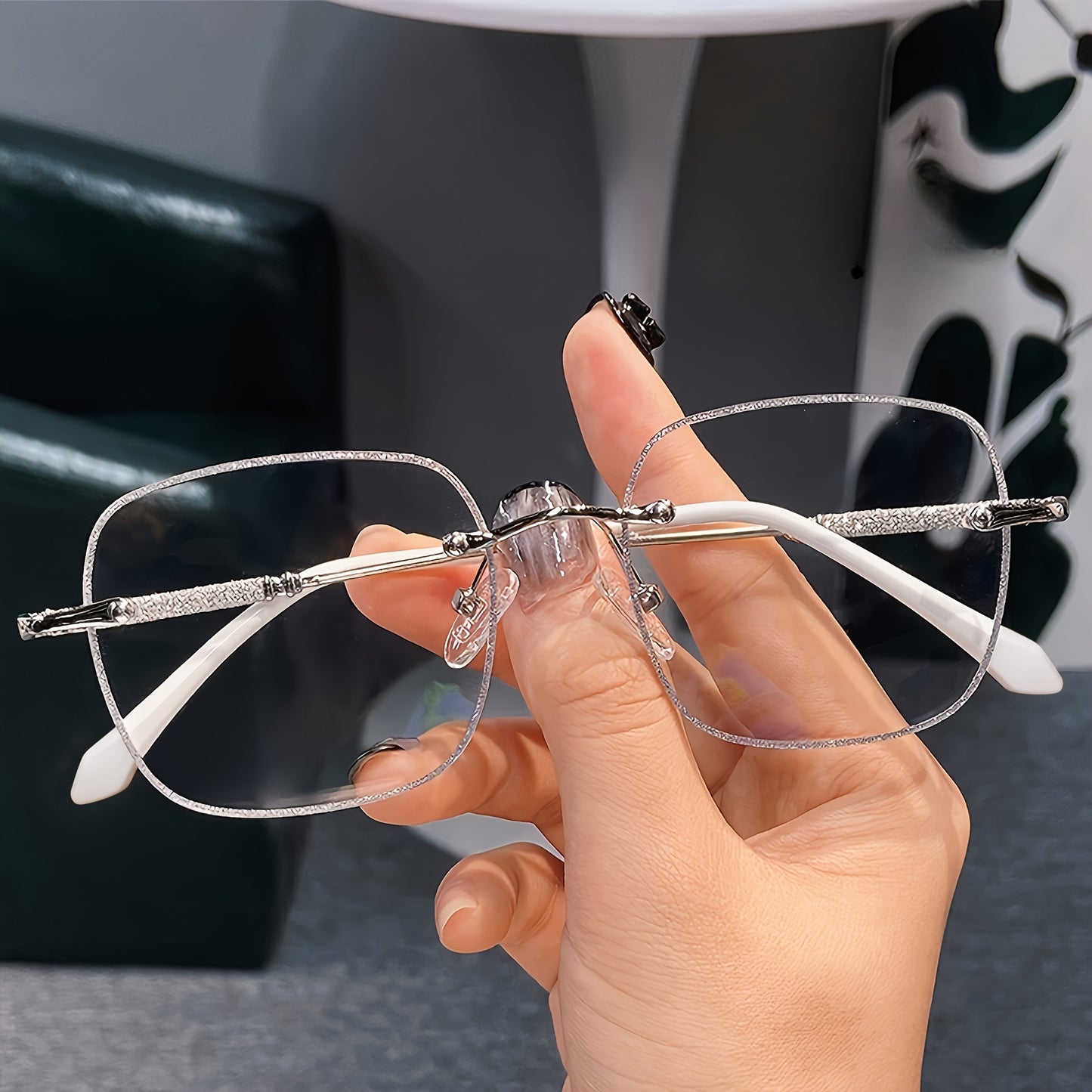 Elegant Rimless Cut-Glasses Women - Lightweight Metal Frame, Stylish Square Design, Clear Lenses for Everyday & Formal Wear, Decorative Eyeglasses, Formal Eyewear, Minimalist Eyewear, Durable Eyewear