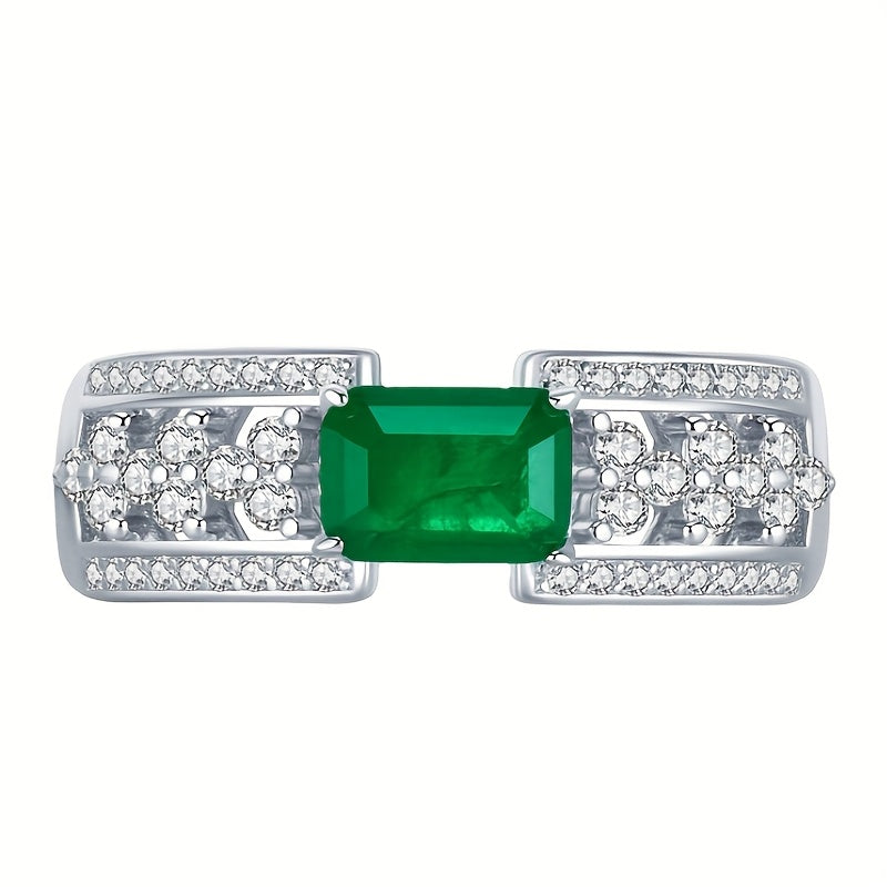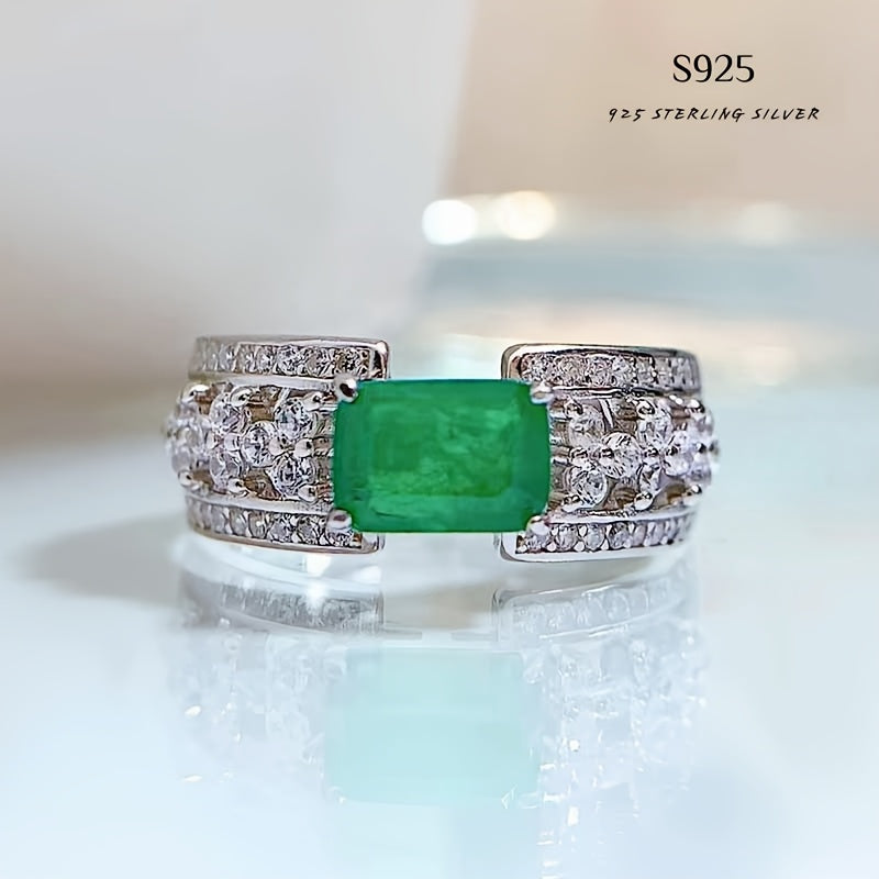 Elegant S925 Silver 1 Carat Green Micro-Pave Ring with Cubic Zirconia Accents - Perfect for Weddings, Parties, and Special Occasions, Wedding Jewelry
