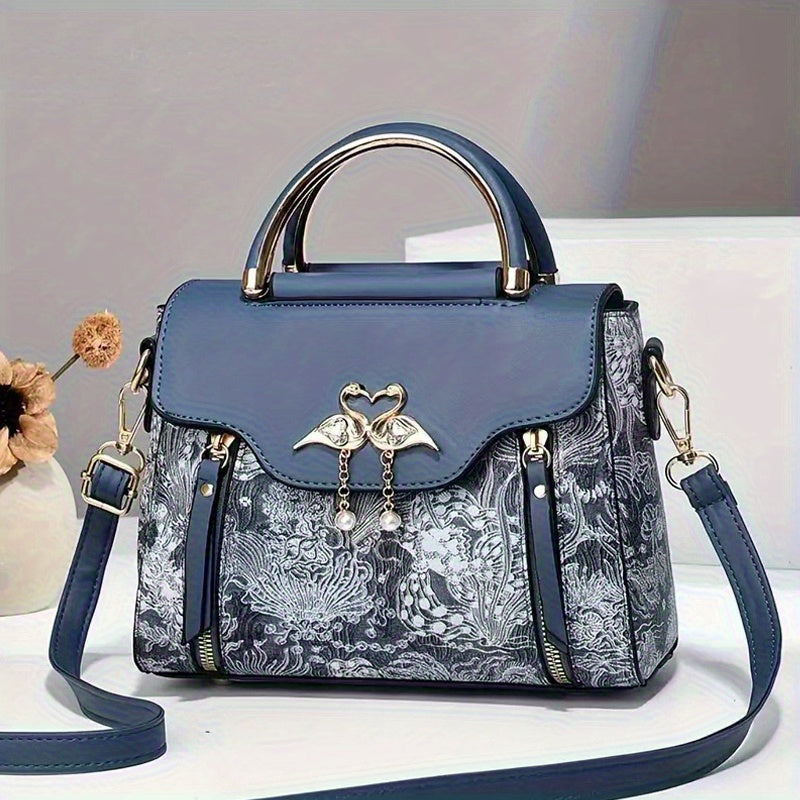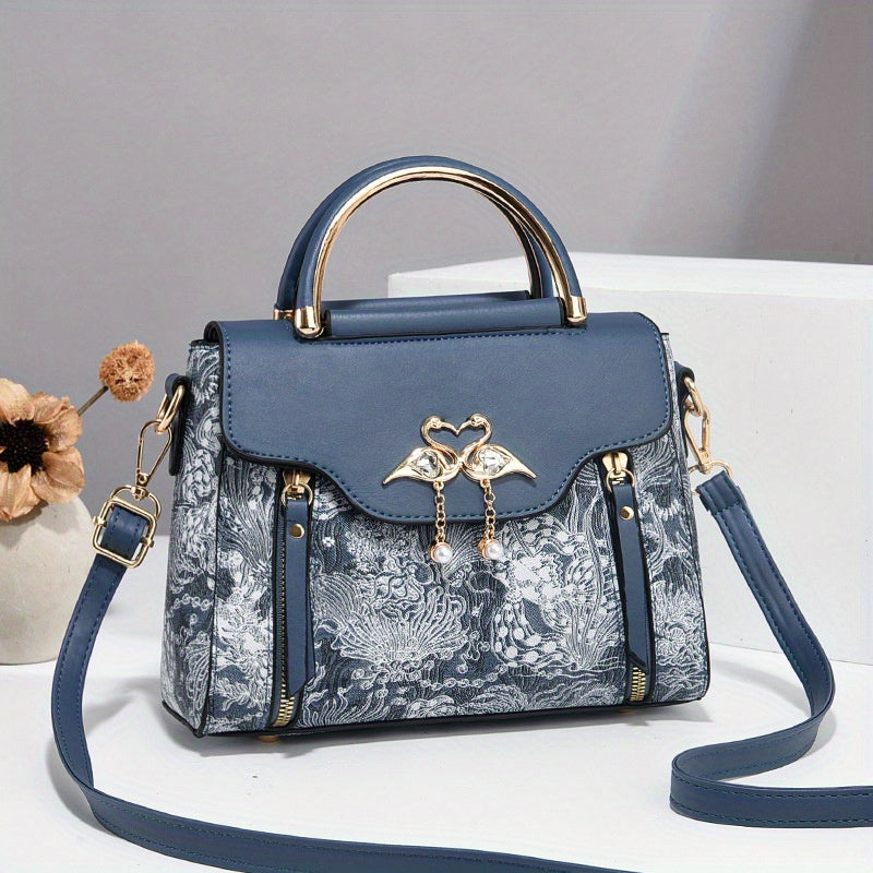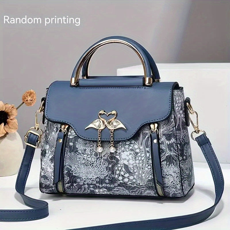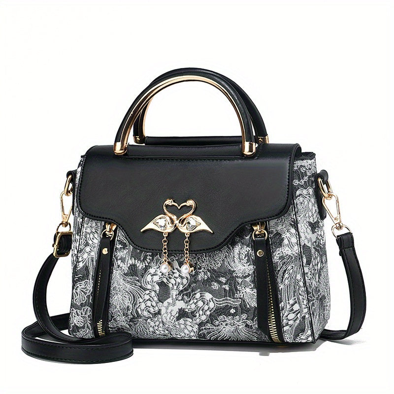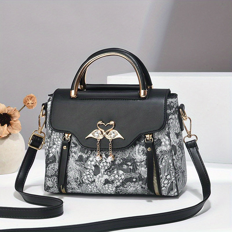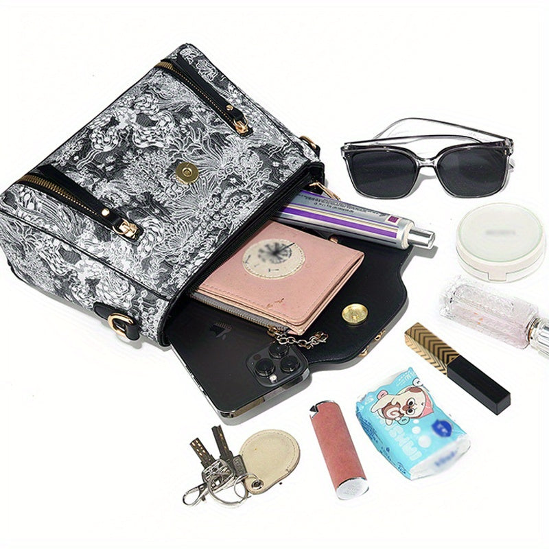 Elegant Textured Handbag for Women, Geometric Print Multi-Layered Shoulder Bag, Fashion Crossbody Bag Versatile for Various Occasions