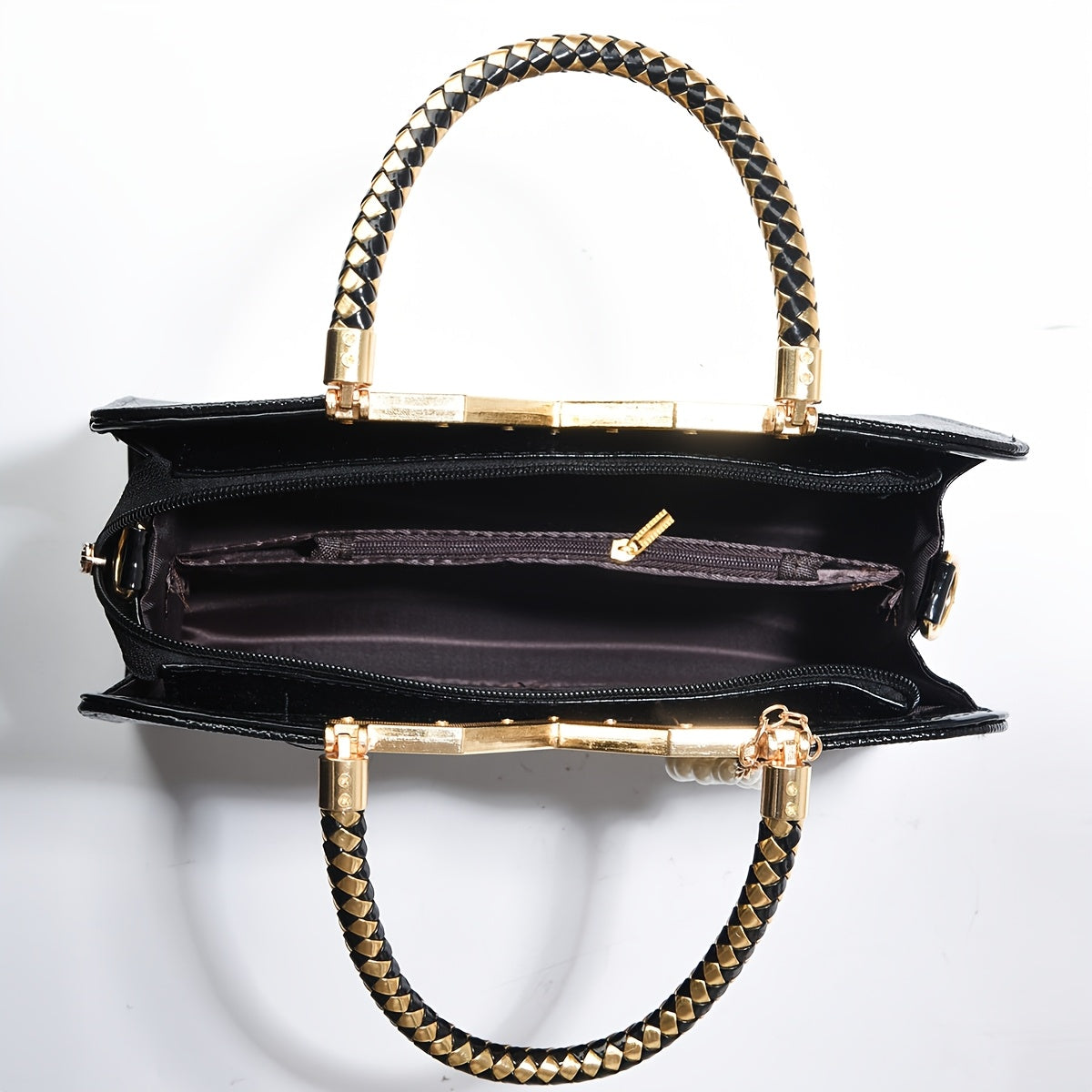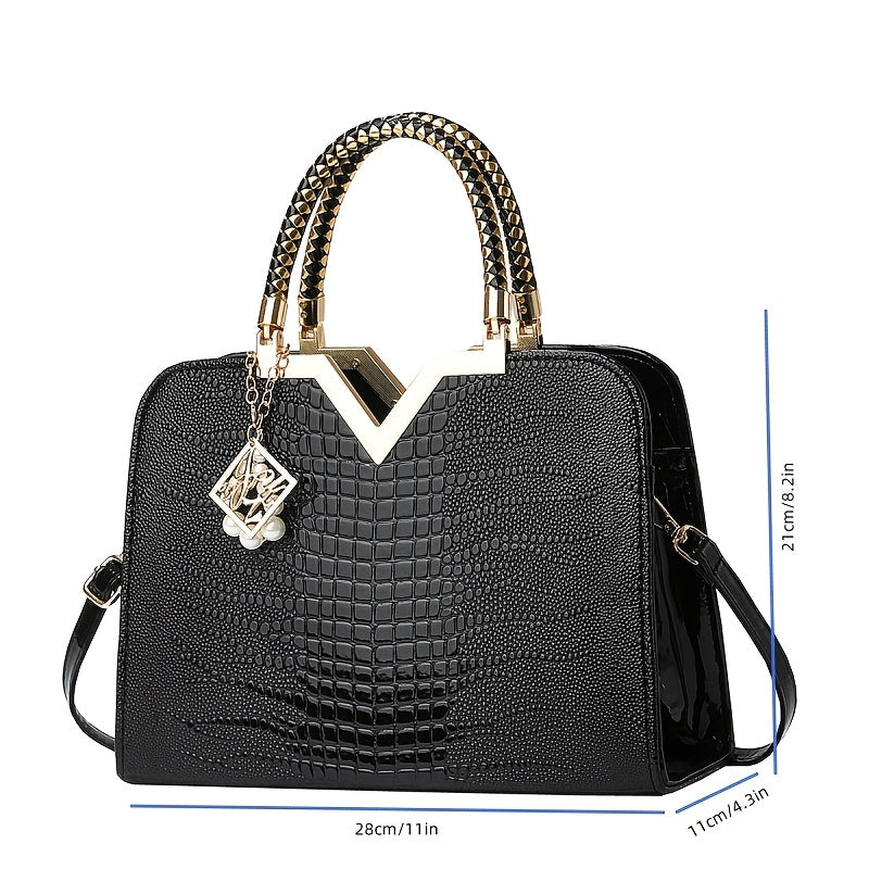 Elegant Tote Bag for Women, Large Capacity Crocodile Pattern Shoulder Bag, Lightweight with Zipper Closure, Polyester Lined, Versatile Fashion Accessory