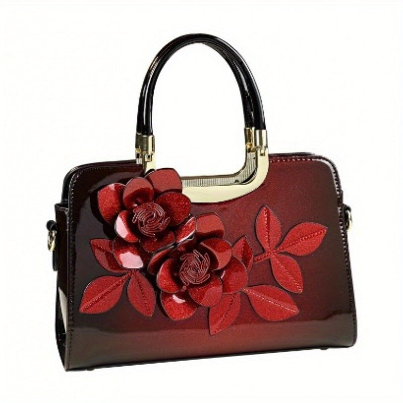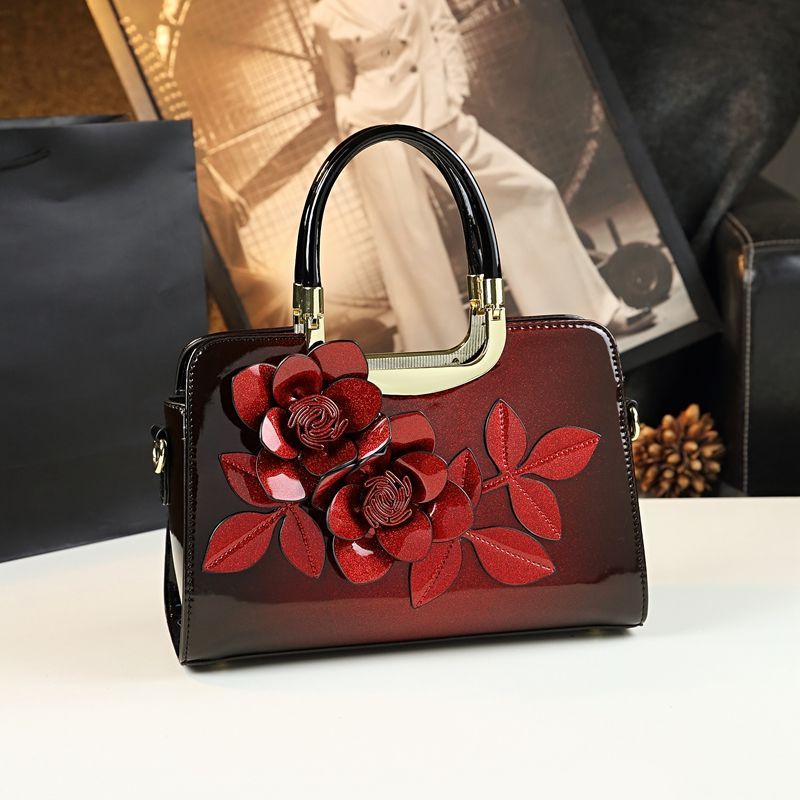 Elegant Women'S Genuine Leather Handbag with Floral Embossed Design - Chic Crossbody Tote for Everyday Use, Polyester Lined, Zipper Closure, Stylish Burgundy, Ladies Handbags