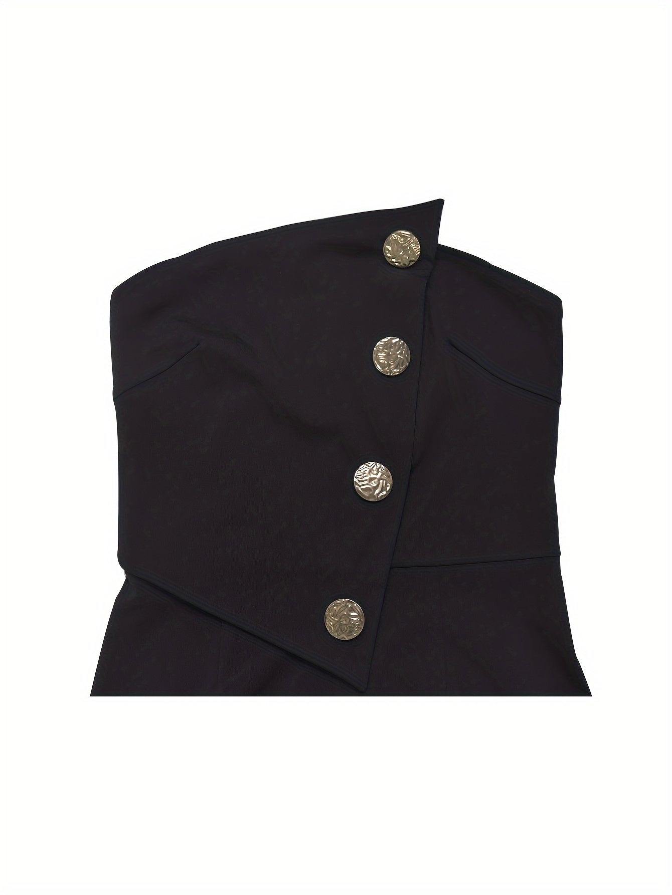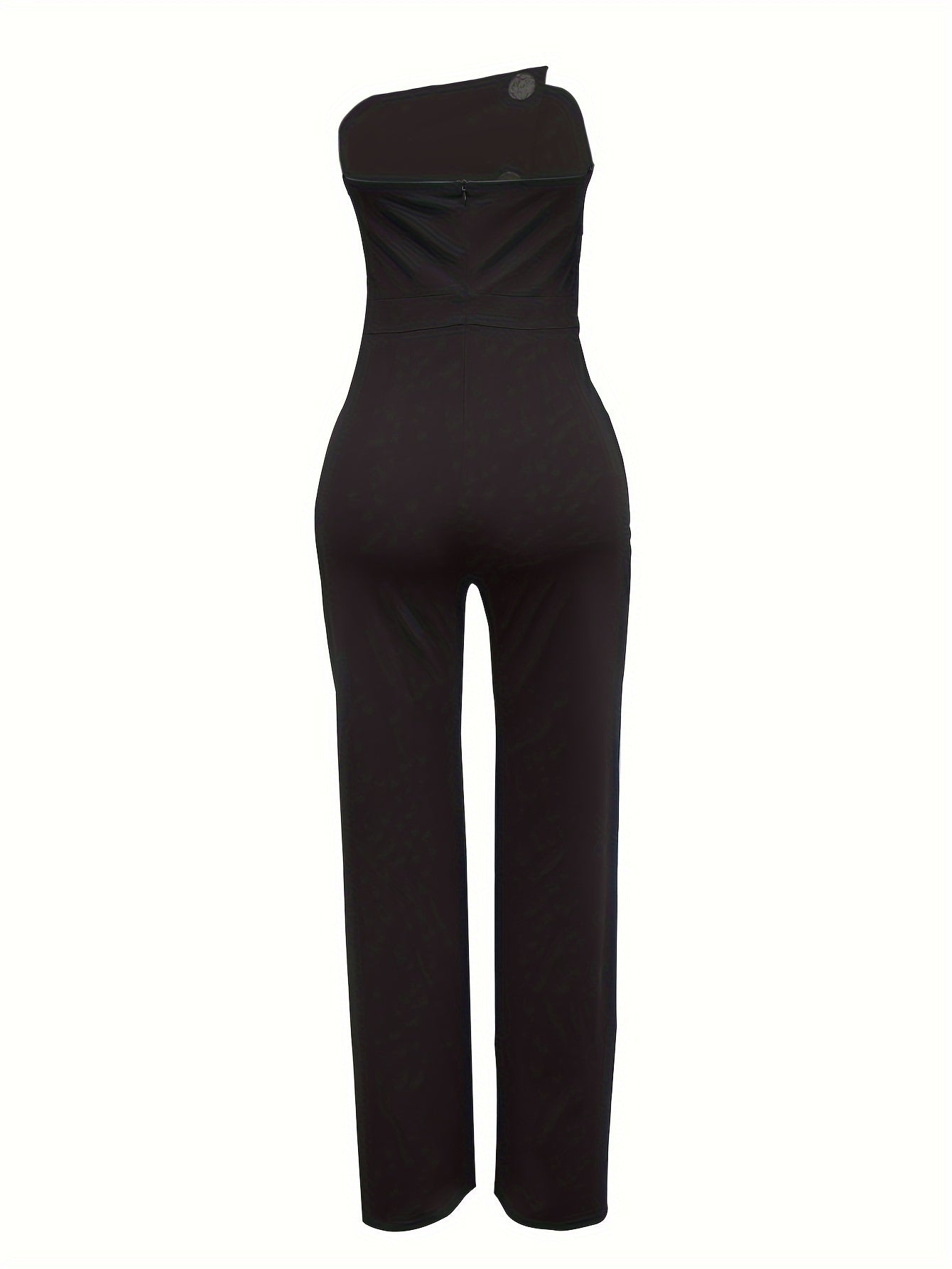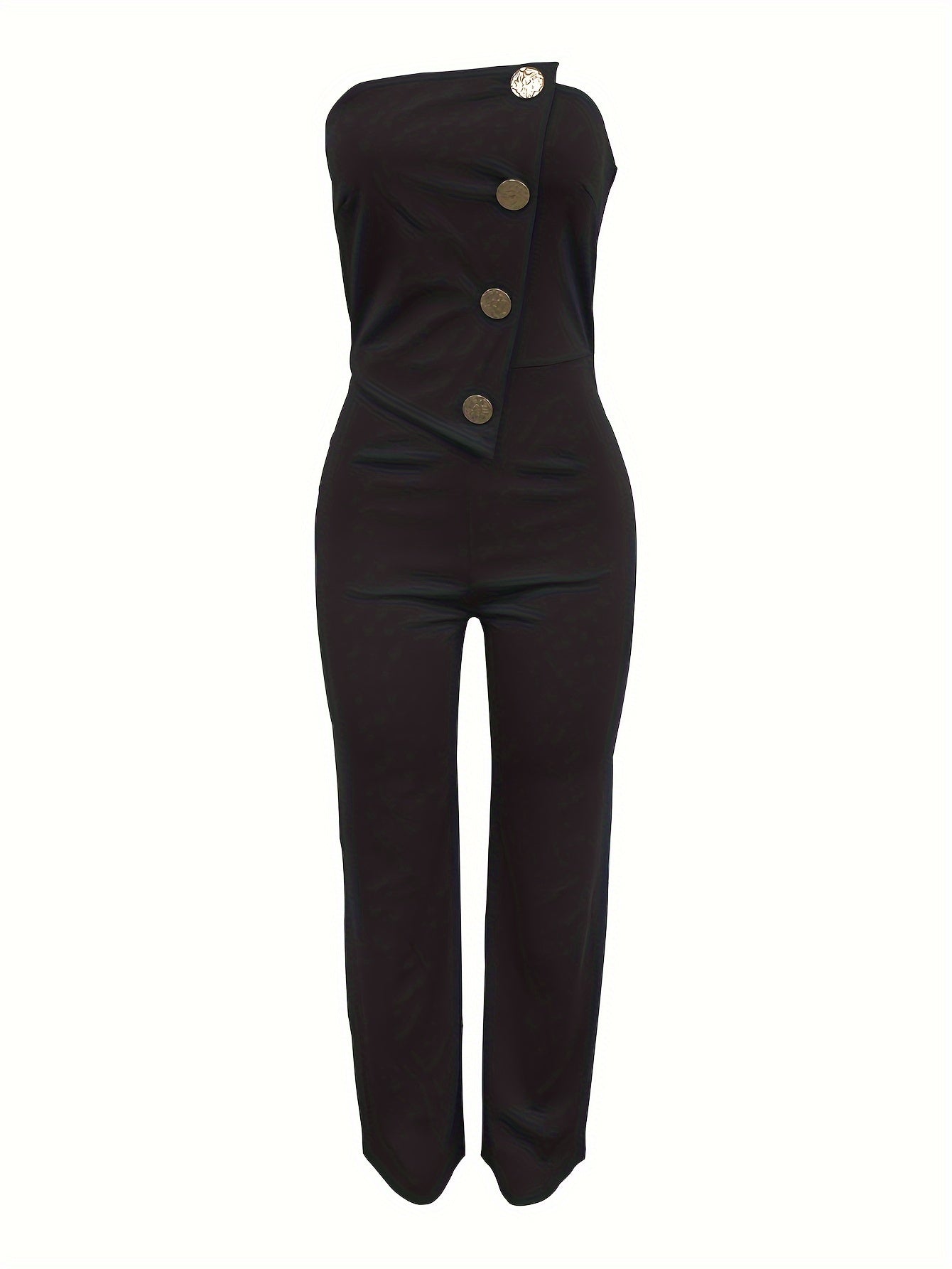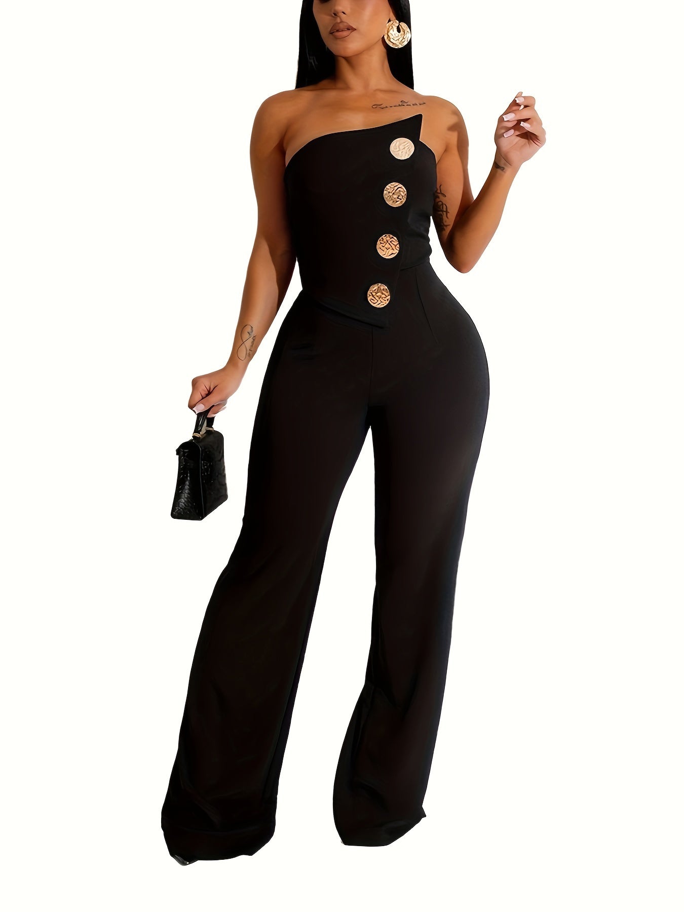 Elegant Women's Sleeveless Button Jumpsuit - Chic One-Shoulder Design, Flared Leg Pants, Polyester Blend, Machine Washable, Perfect for Spring/Summer