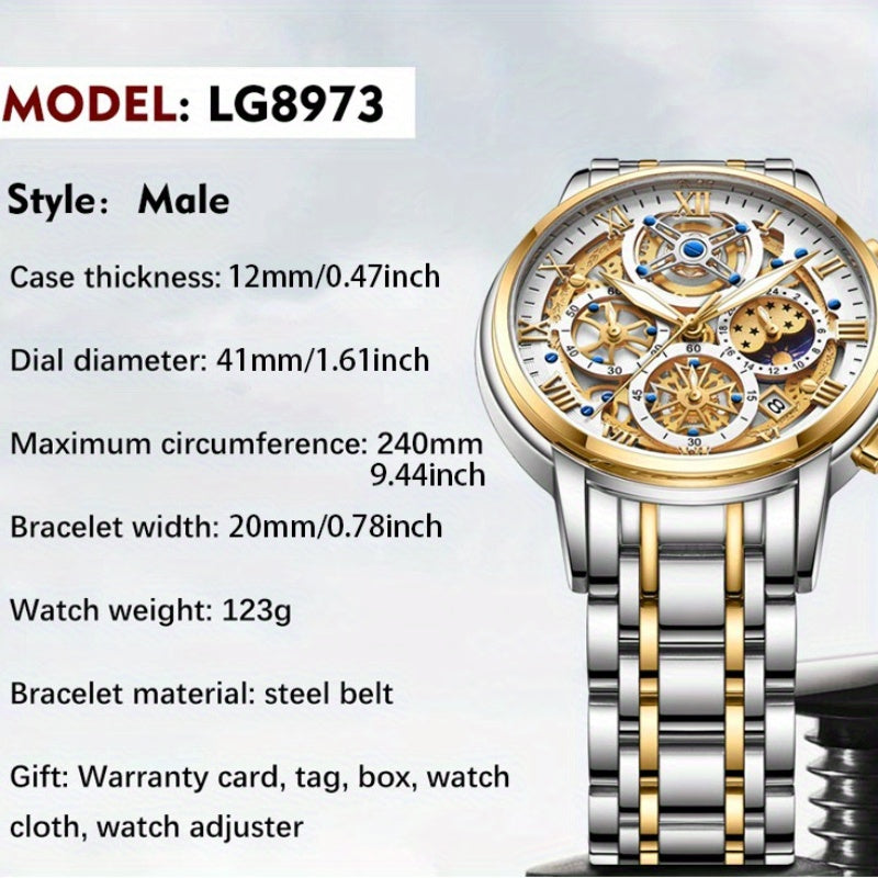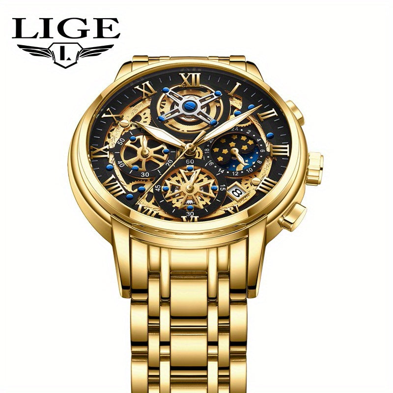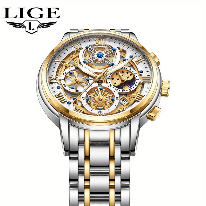 [Elegant Zinc Alloy Casual Timepiece] LIGE Unisex Quartz Wrist Watch - Stainless Steel Band, Zinc Alloy Case, Luminous Display, 24-Hour Dial, Calendar, Elegant Business Casual Timepiece, Non-rechargeable Button Battery, Ideal for Gift