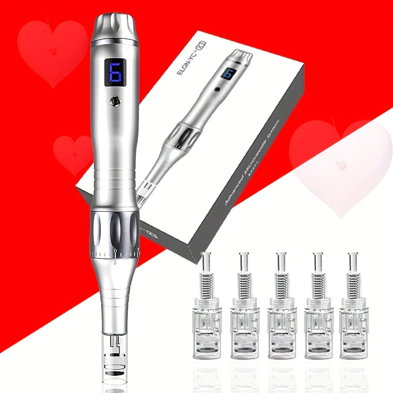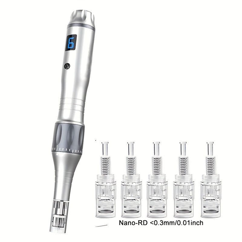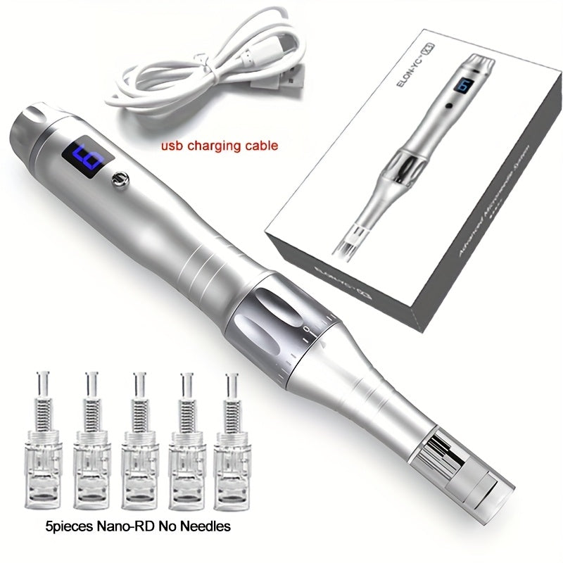 ELON-YC Microcrystalline Importer X3 with 5 Nano Ink Cartridges <0.3mm Professional Dr Dermapen X3 with 5pcs Nano-RD <0.3mm Cartridges 6 Levels Derma Pen Stamp Beauty Skin Care Kit MTS Machine