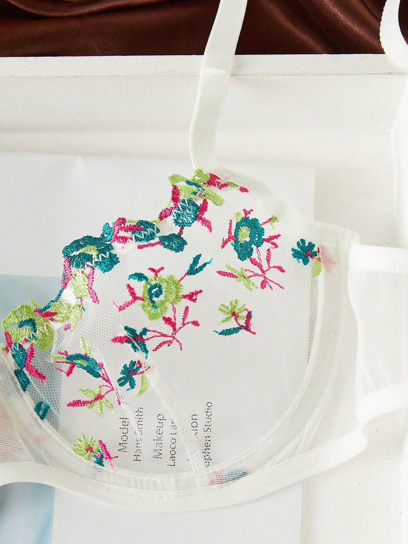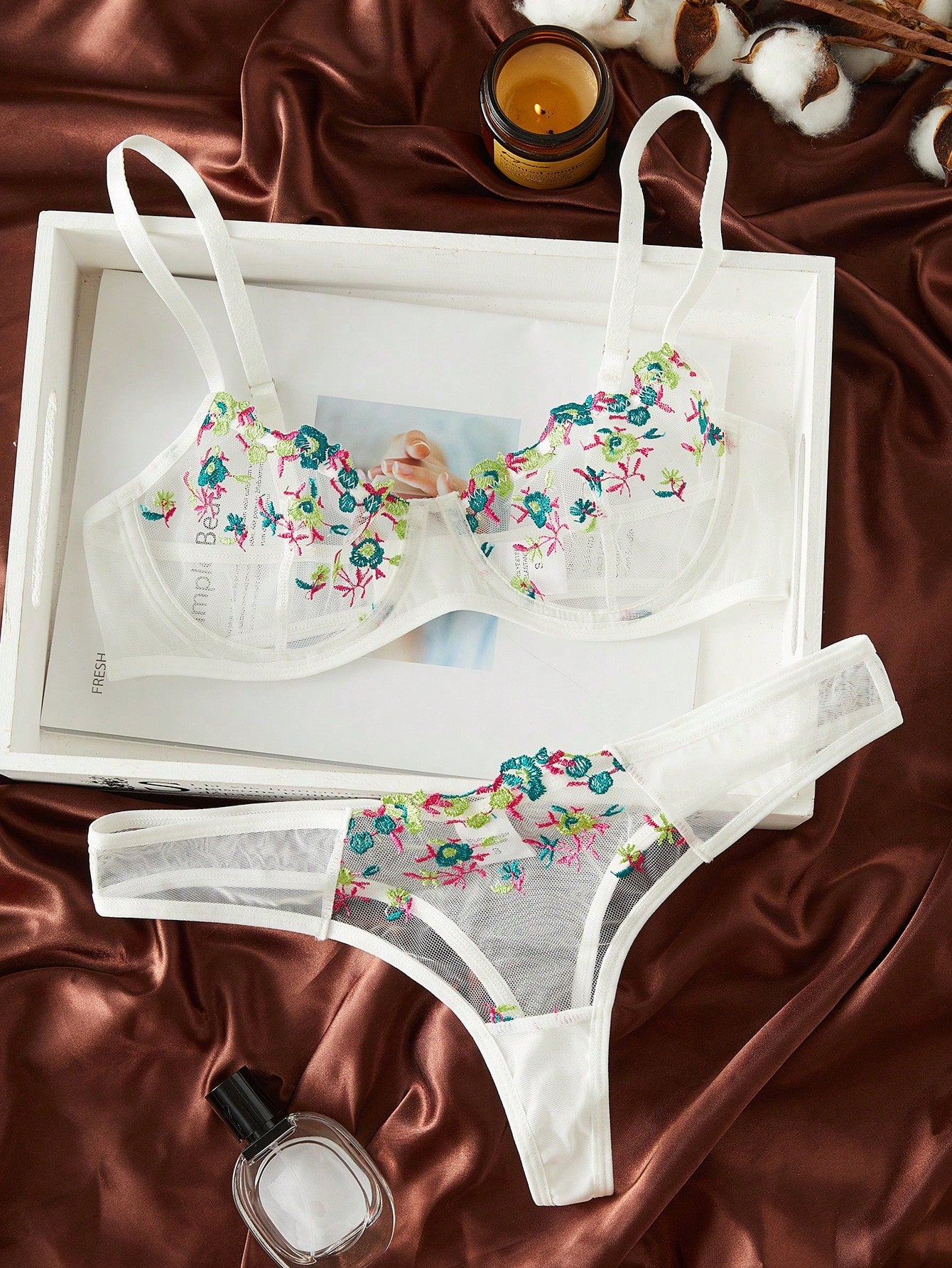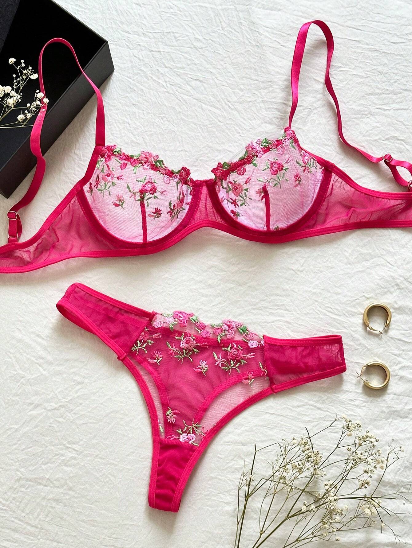 Embroidery Mesh Bra & Panty Set Lingerie Set