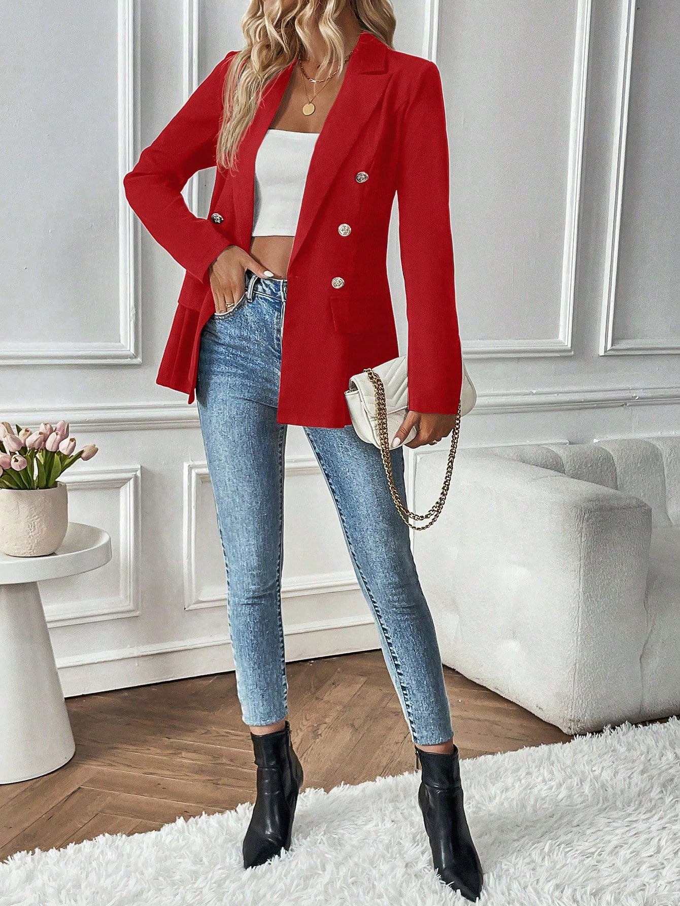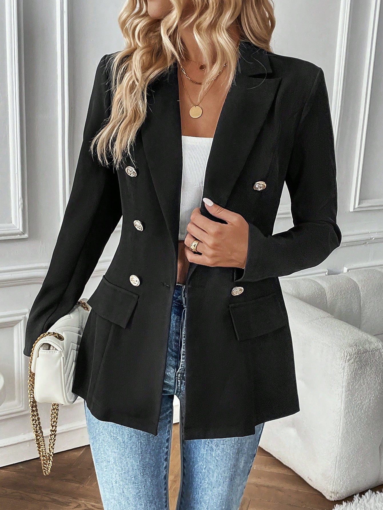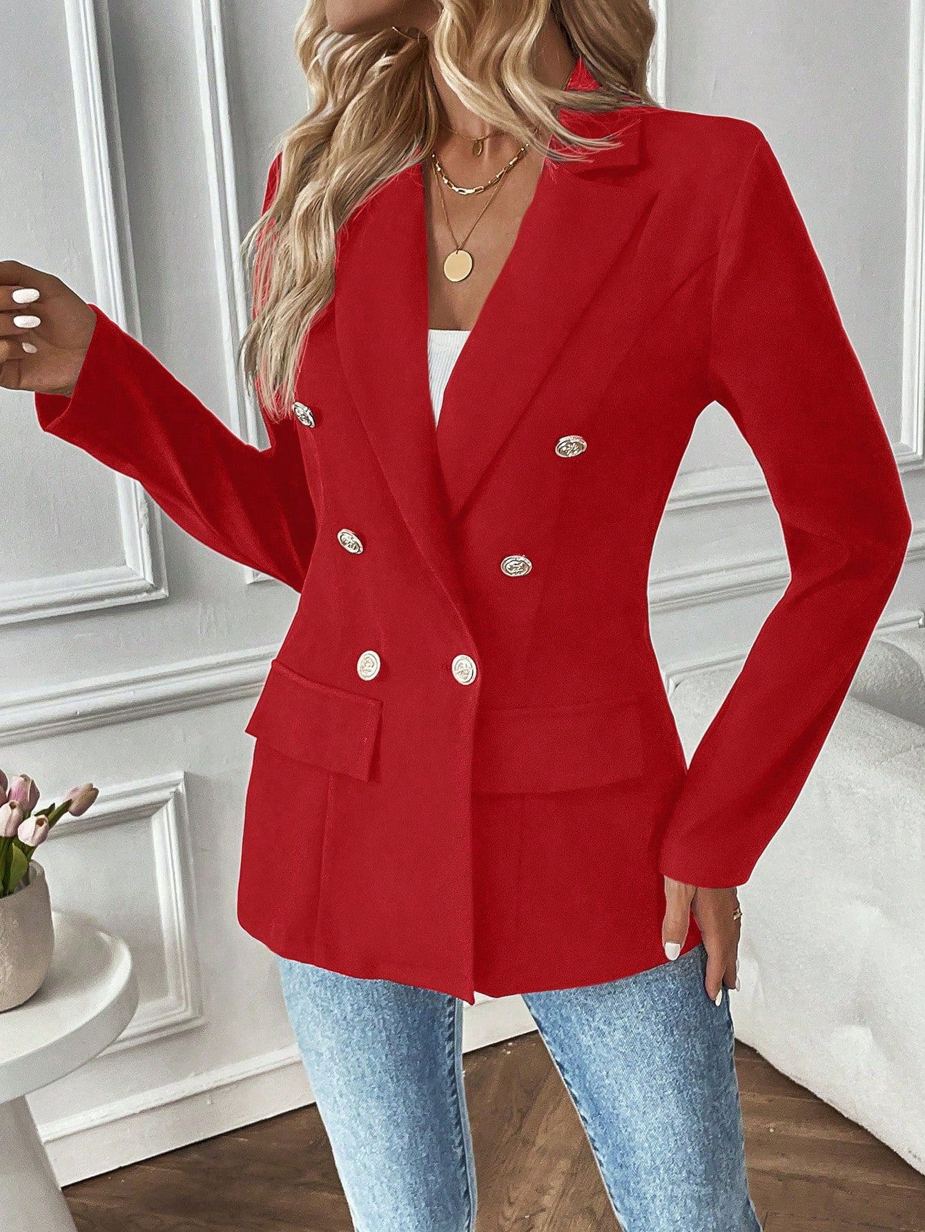 EMERY ROSE Lapel, Double-Breasted Suit Jacket With Flap Detail For New Year Clothes