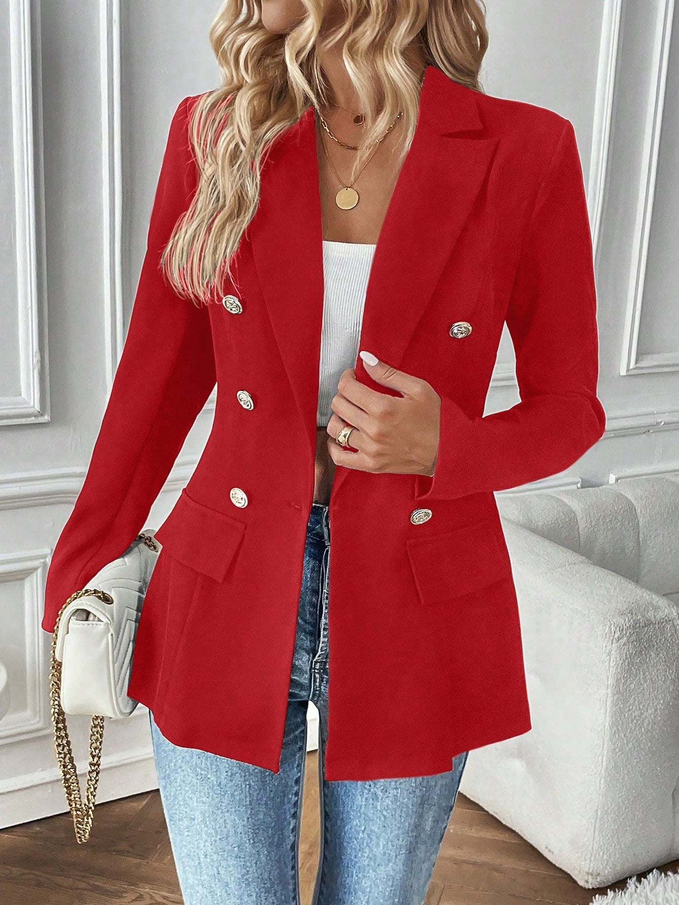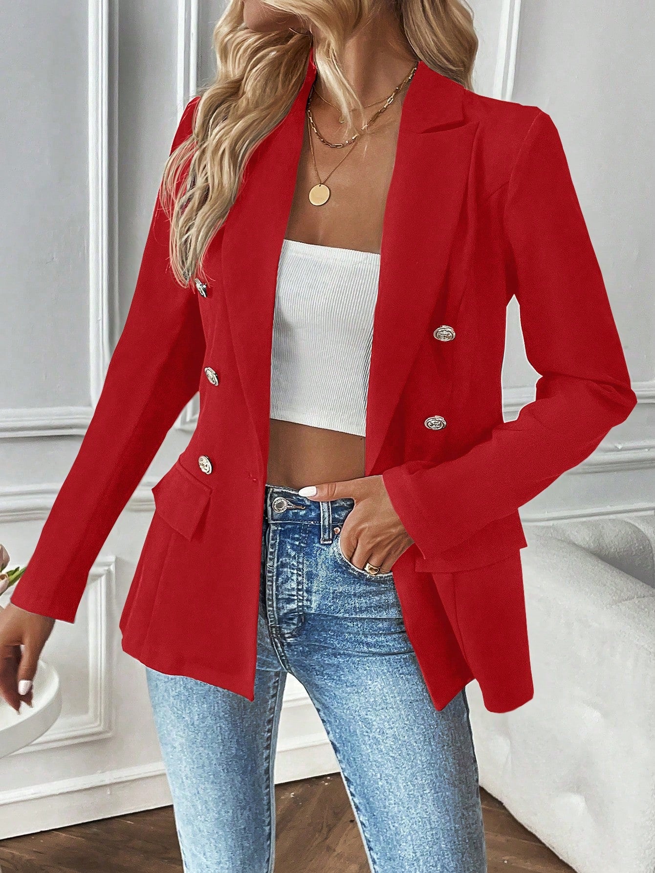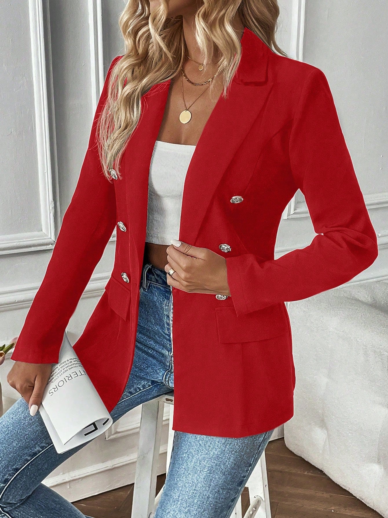 EMERY ROSE Lapel, Double-Breasted Suit Jacket With Flap Detail For New Year Clothes