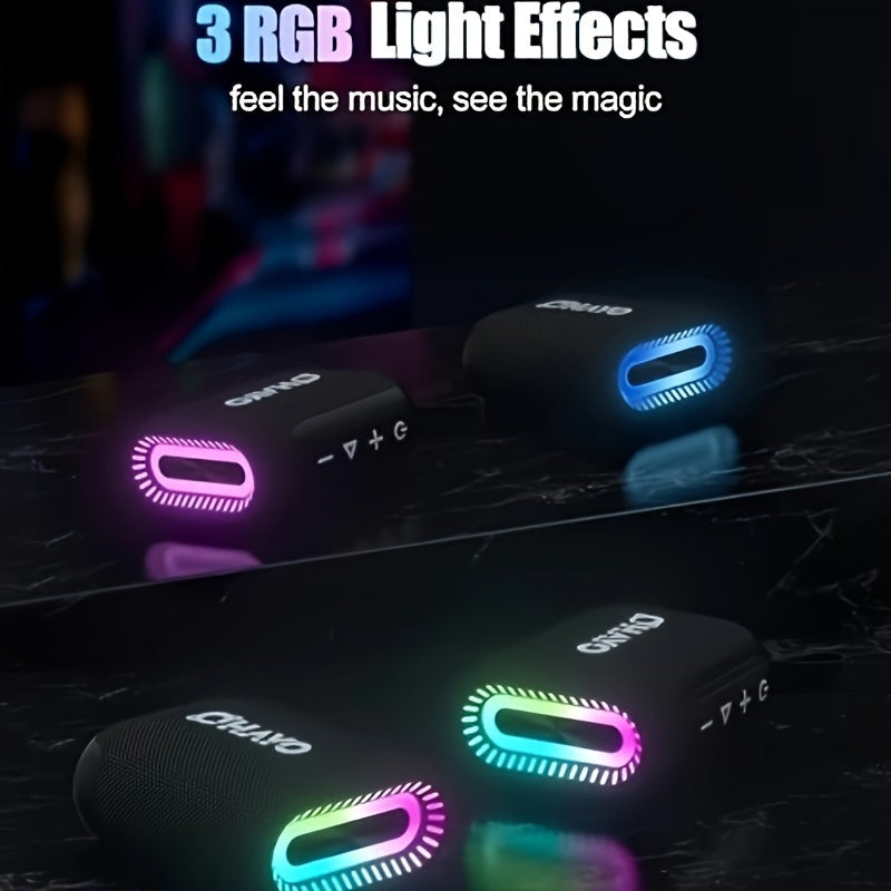Enceinte sans fil, enceinte portable sans fil avec lumières RVB, étanche, mini enceinte 10 W, sans fil 5.3, 24 heures d'autonomie, enceintes d'extérieur avec clip, appairage stéréo sans fil pour la maison, les voyages