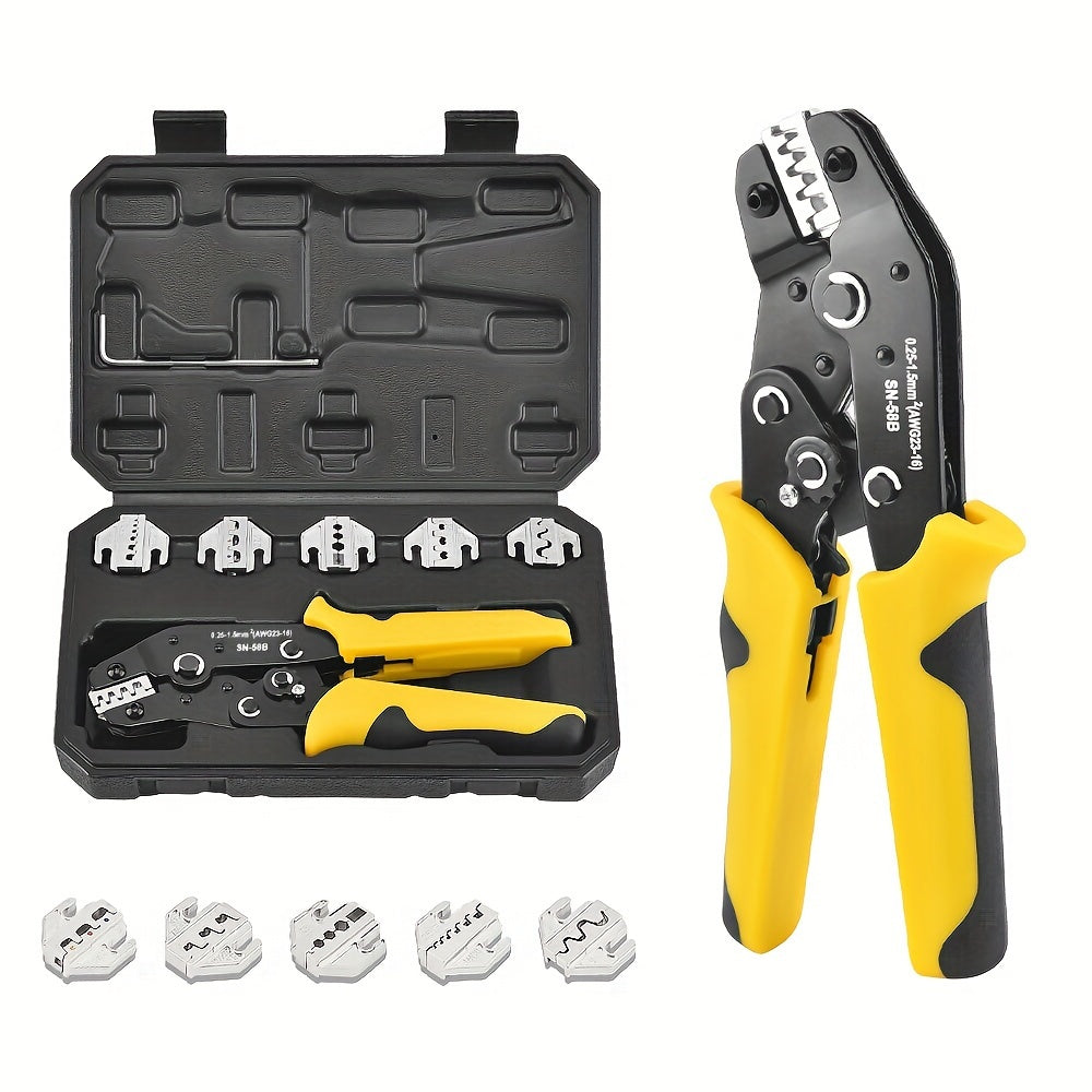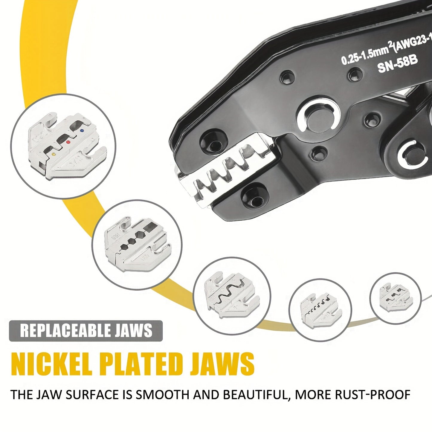 Ensemble de pinces à sertir professionnelles à cliquet - SN-58B, comprenant 5 jeux de mâchoires (03H/02C/-6/2546B/06WF), poignées en acier au carbone.