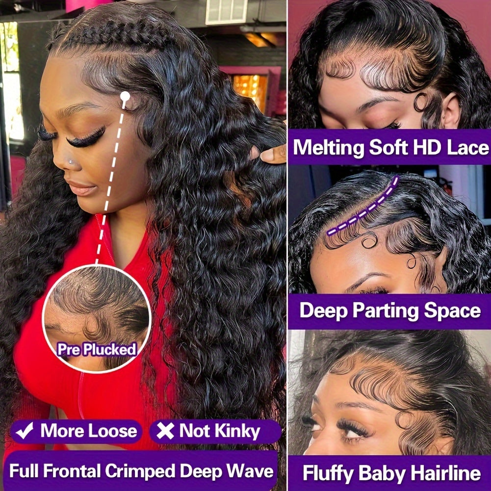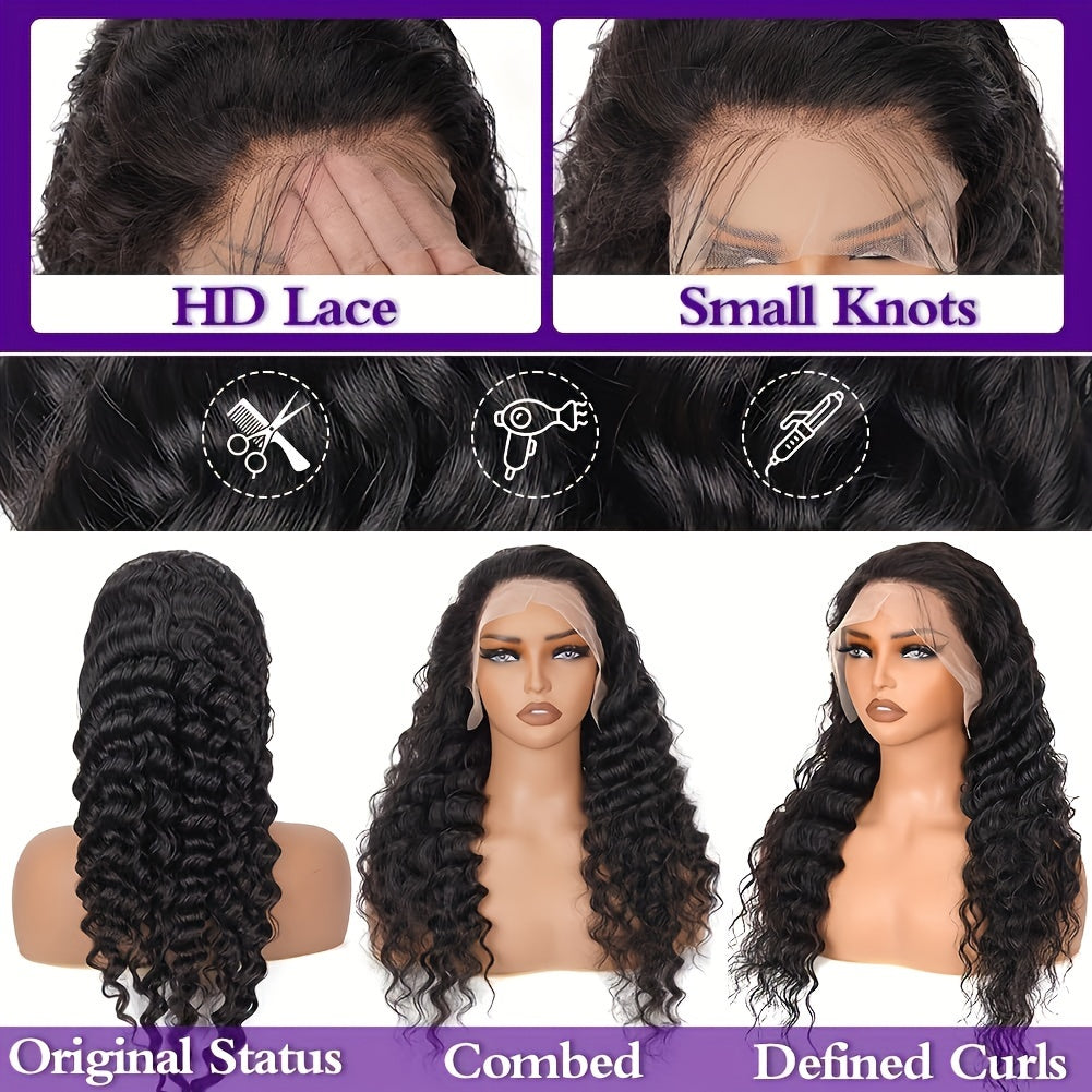 Estilar 13X4 Water Wave Wig Wigs Human Hair Pre Plucked Pre Cut Human Hair Wigs 200% Density For Women Human Hair HD Lace Frontal Deep Curly Wigs Glueless Wig For Beginners Local Warehouse Wholesale Price