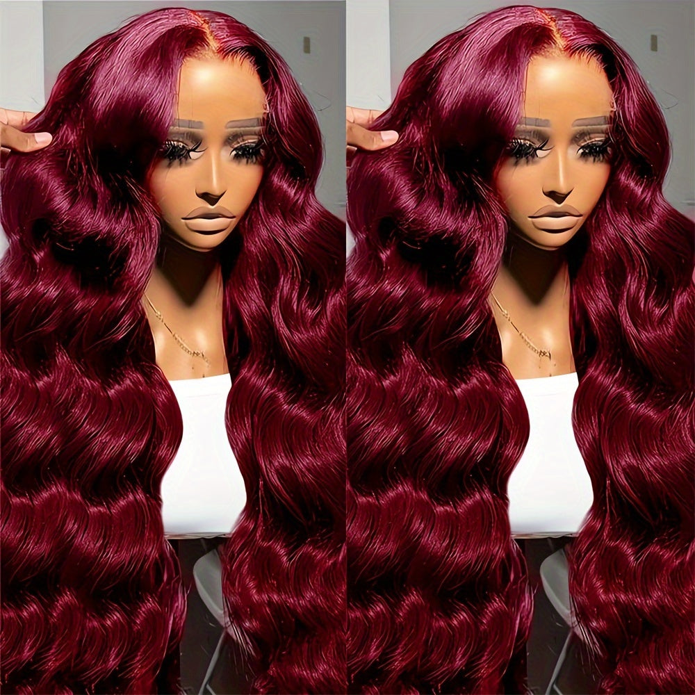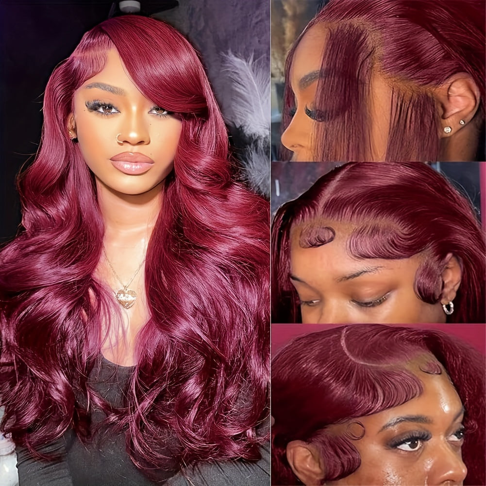 Estilar 99j Burgundy Lace Front Wigs Human Hair Body Wave 13x4 Lace Frontal Wigs Human Hair Wine Red Colored 200% Density Human Hair Wigs For Women Human Hair Pre Plucked With Baby Hair