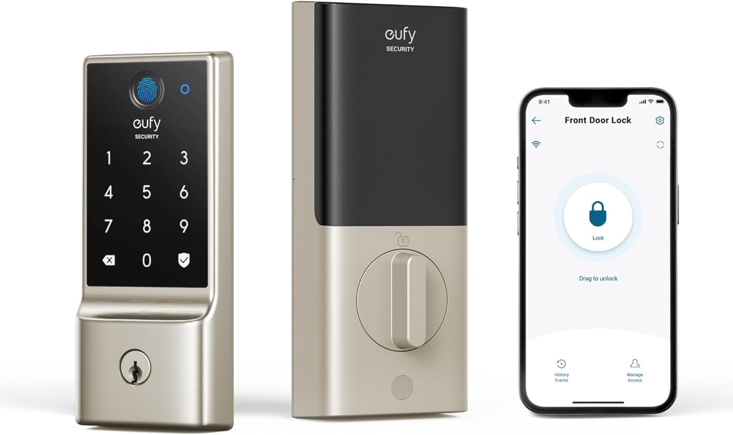 Control from Anywhere with Built-in Wi-Fi: No bridge required, you can control your wifi smart lock from anywhere via the eufy Security app. Easy setup. (Access management, Real-time notification, Event History)[Integrated eufy ecosystem] If you have a eufy doorbell, you can add your wifi door lock to your routines and control devices together for keyless entry within the eufy Security app.