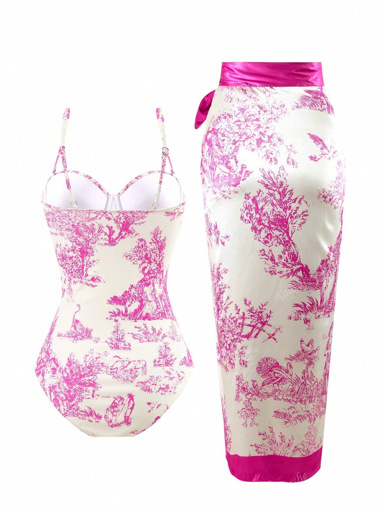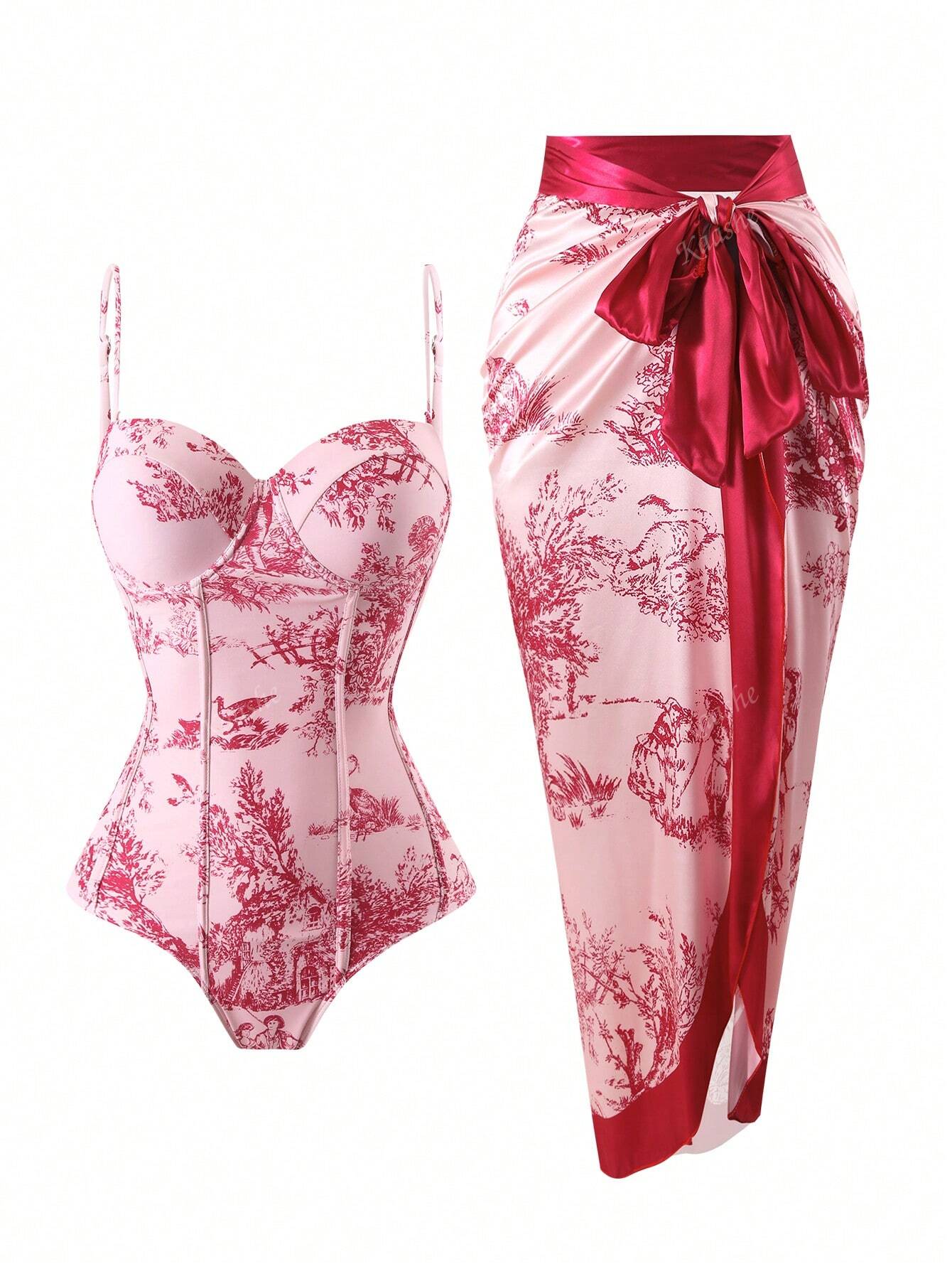 European And American Style Conservative One-Piece Swimsuit, Tummy Slimming, Suitable For Beach, Spa, Swimming, With Retro French Style Skirt, One Size Fits Most Summer