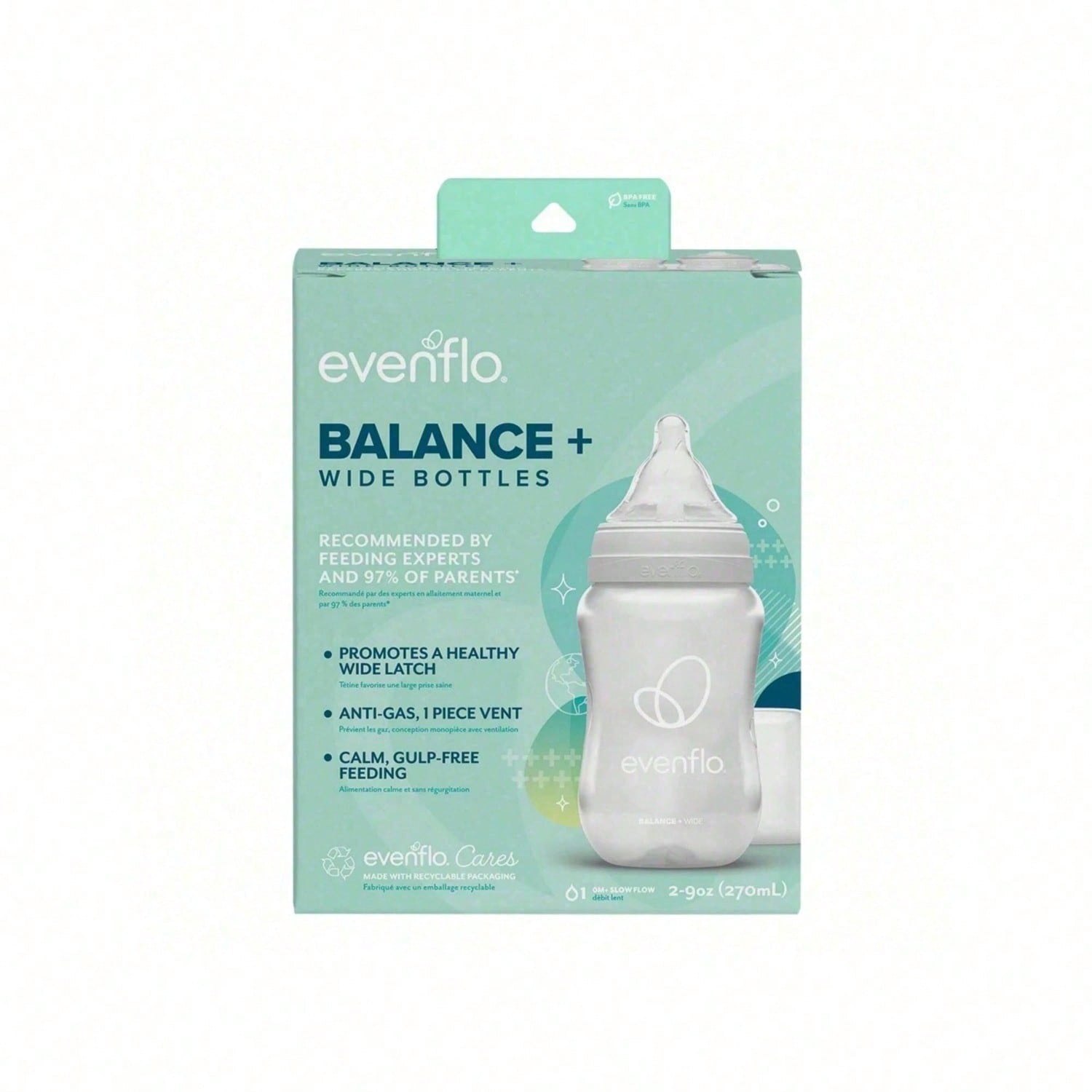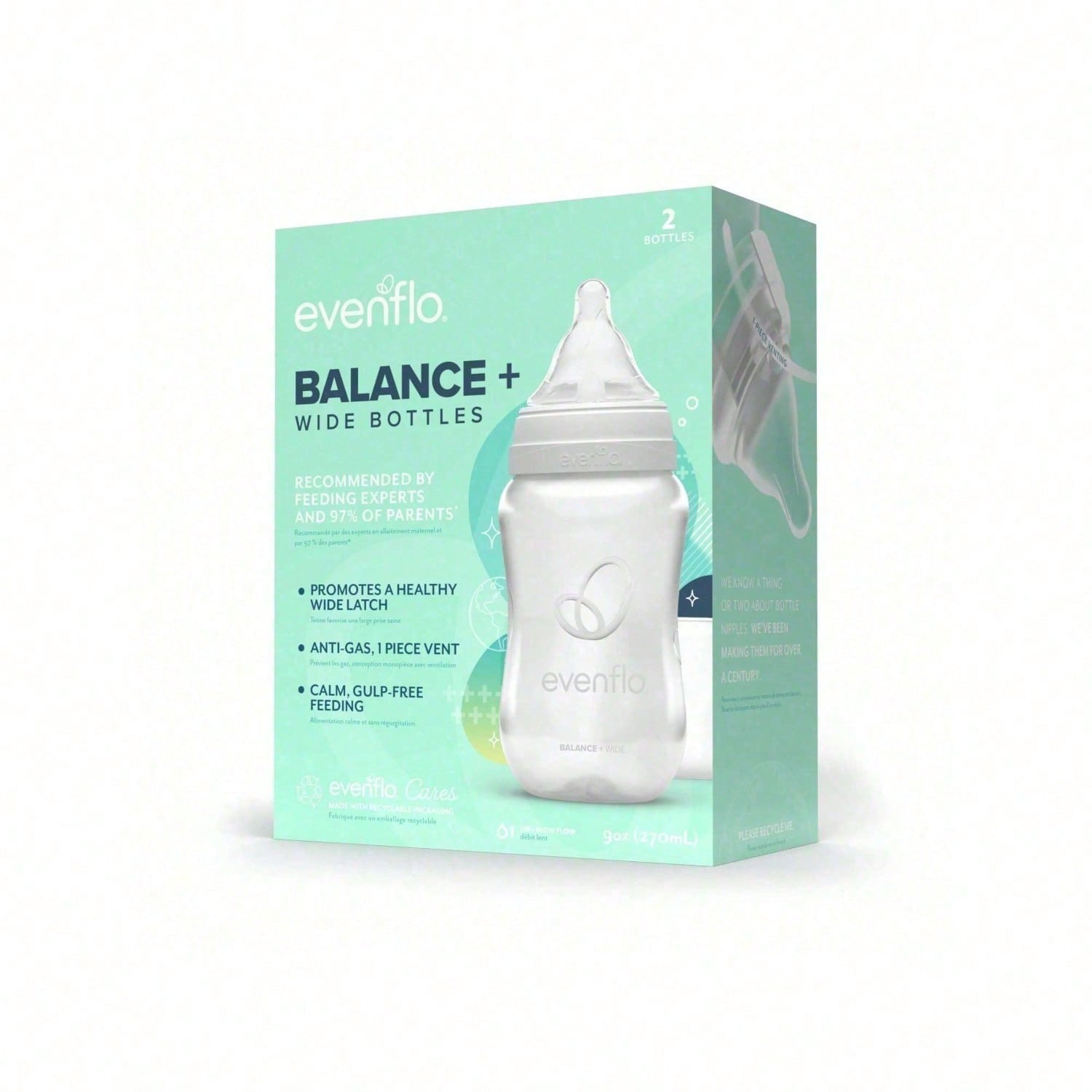 Evenflo Balance Wide Baby Bottles, Platinum White Color 9oz 2 Count