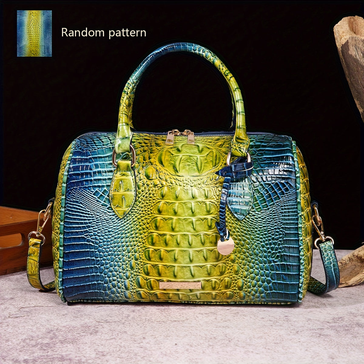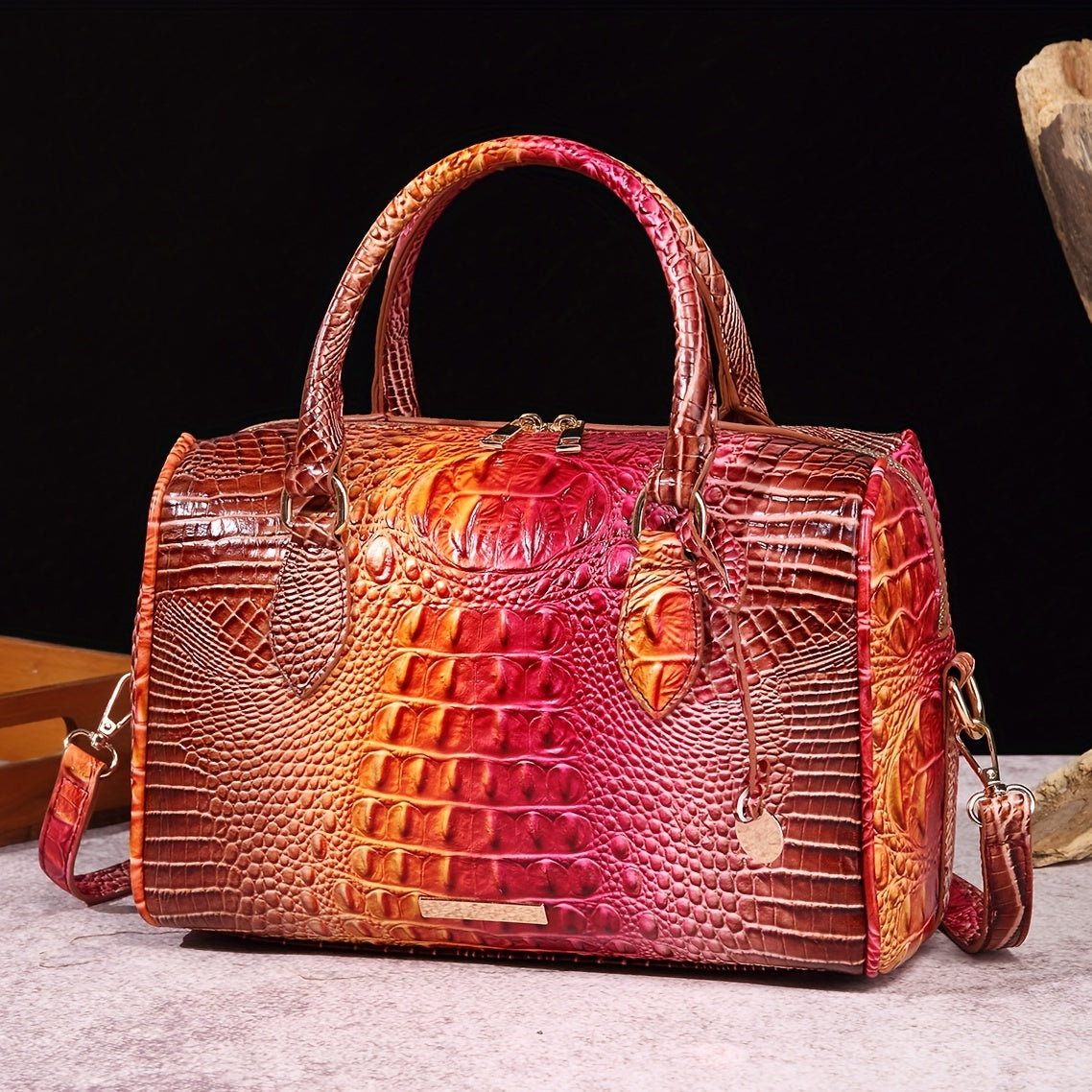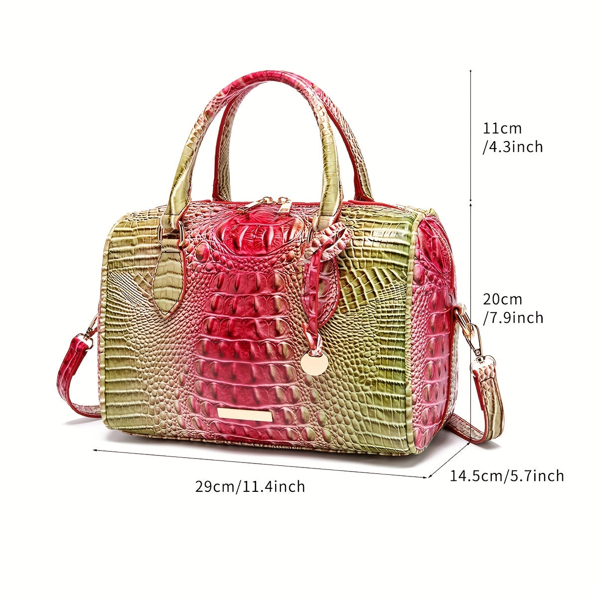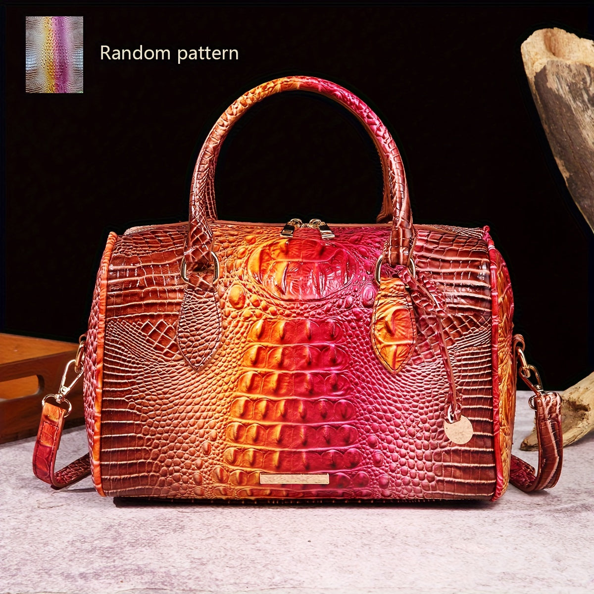 Everyday Elegance| Elegant Women's Crocodile-Embossed Handbag - Luxurious Boston Bag with Vibrant Gradient Colors, Large Capacity, Faux Leather, Zip Closure, Detachable Shoulder Strap for Daily Use & Parties
