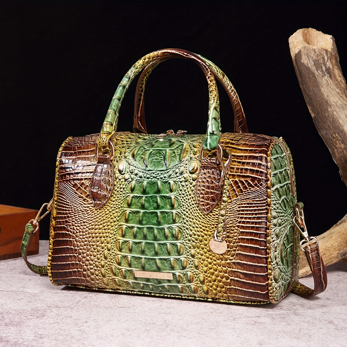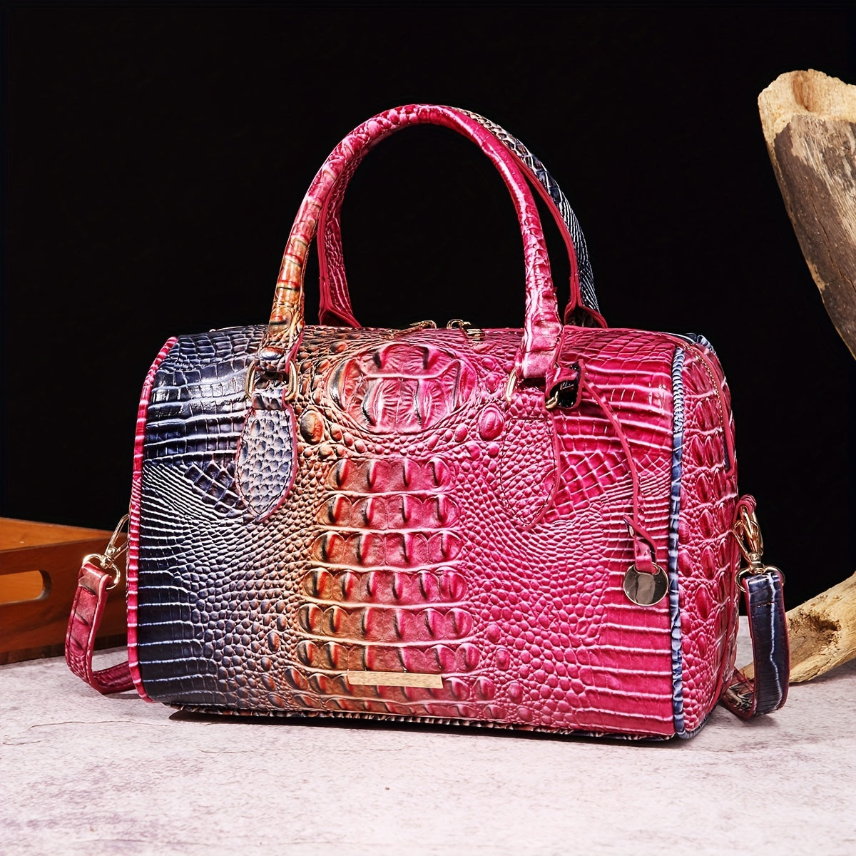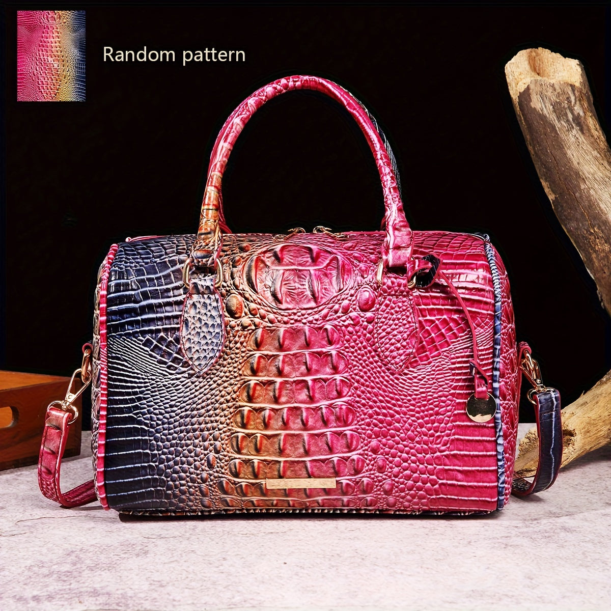 Everyday Elegance| Elegant Women's Crocodile-Embossed Handbag - Luxurious Boston Bag with Vibrant Gradient Colors, Large Capacity, Faux Leather, Zip Closure, Detachable Shoulder Strap for Daily Use & Parties