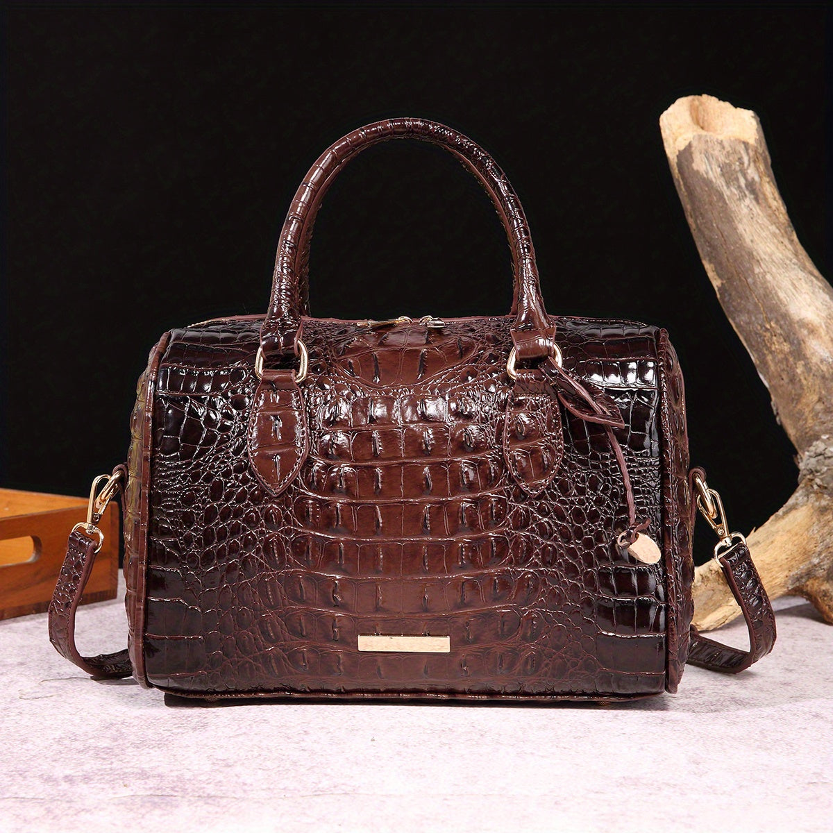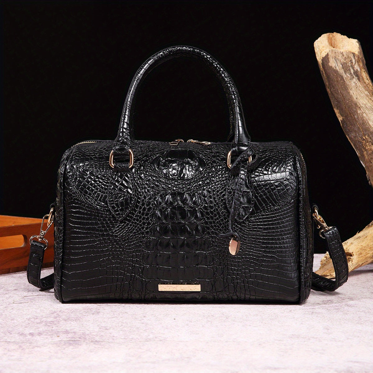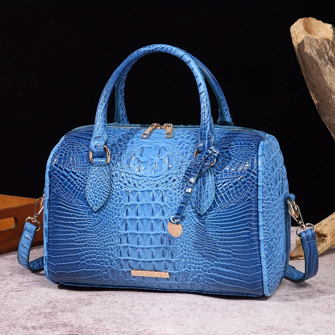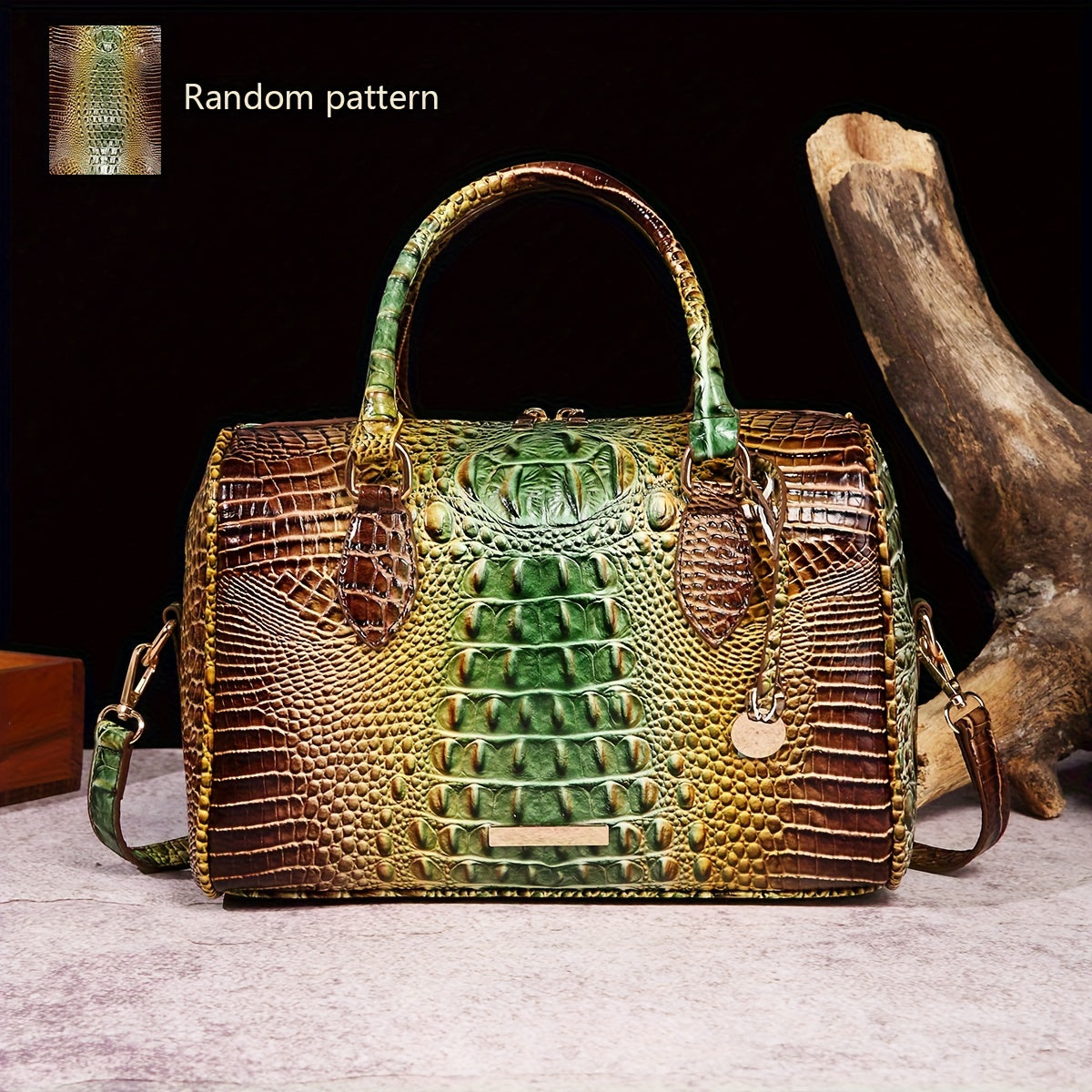 Everyday Elegance| Elegant Women's Crocodile-Embossed Handbag - Luxurious Boston Bag with Vibrant Gradient Colors, Large Capacity, Faux Leather, Zip Closure, Detachable Shoulder Strap for Daily Use & Parties