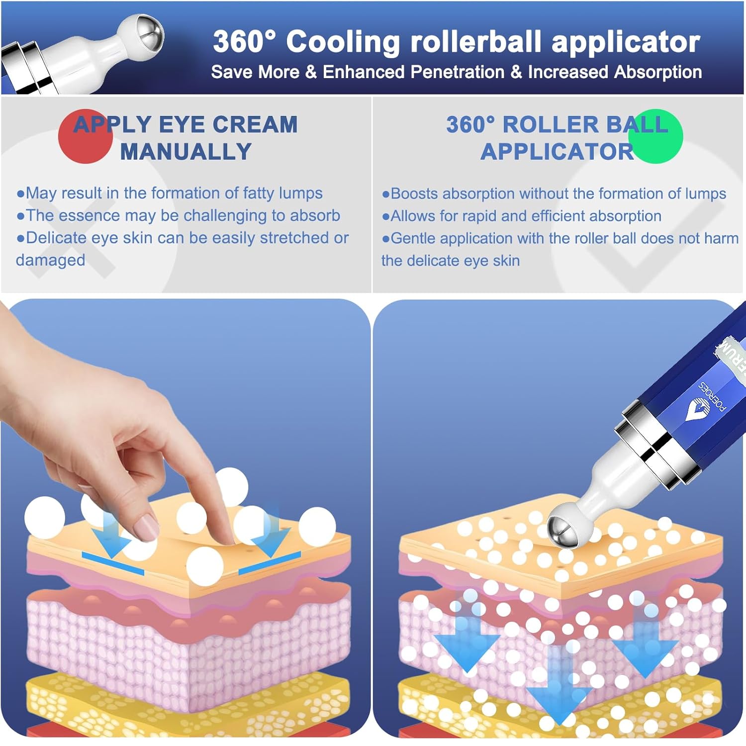 The 360 degree eye roller massage ball helps stimulate circulation and drainage around the eye area for a brighter, more awakened look.Note: Need to press and squeeze out the eye cream liquid before use.