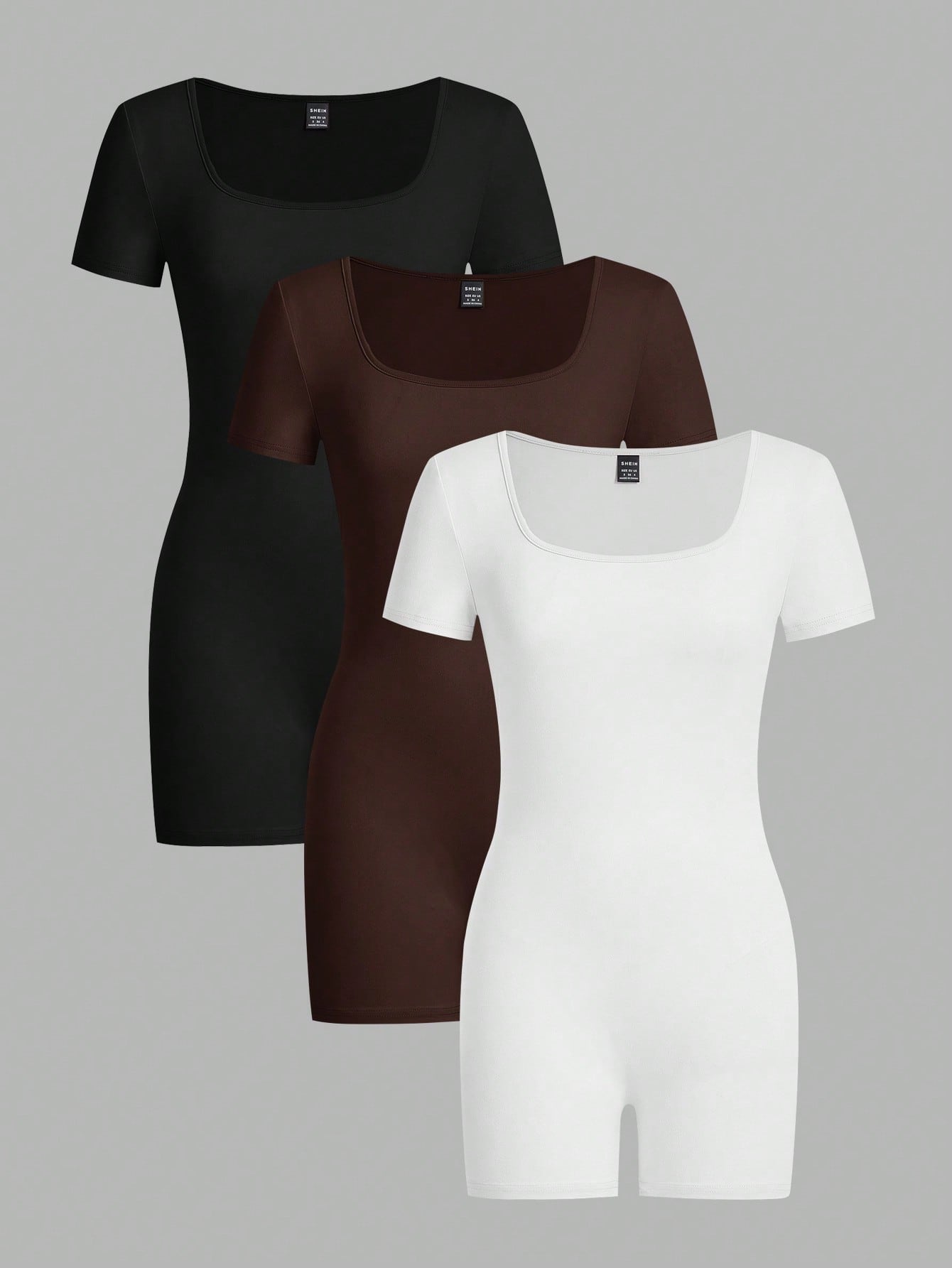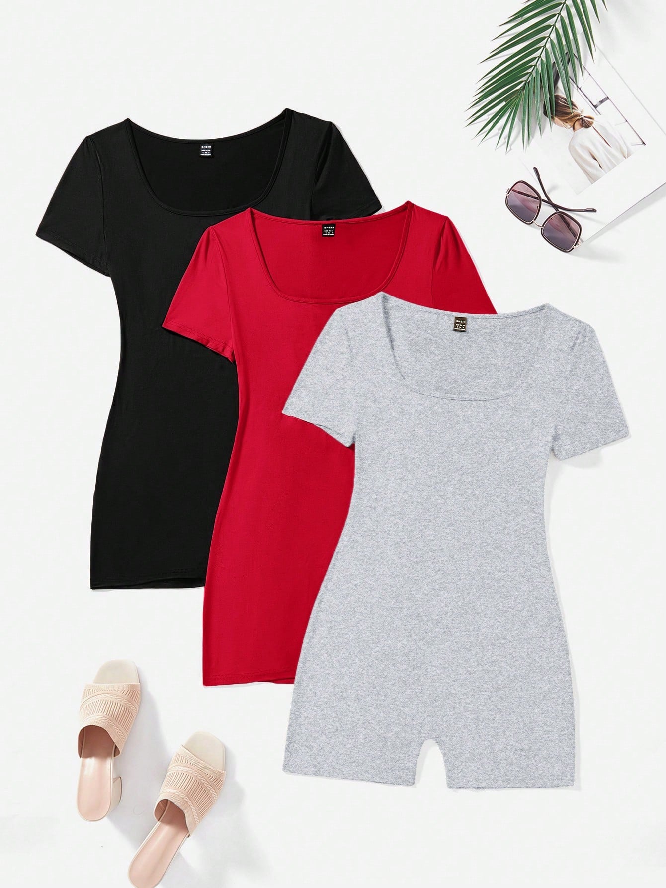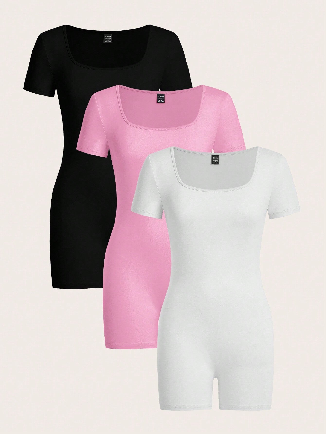 EZwear 3pcs/Set Women's Casual Square Neck Short Sleeve Romper Jumpsuit, Summer