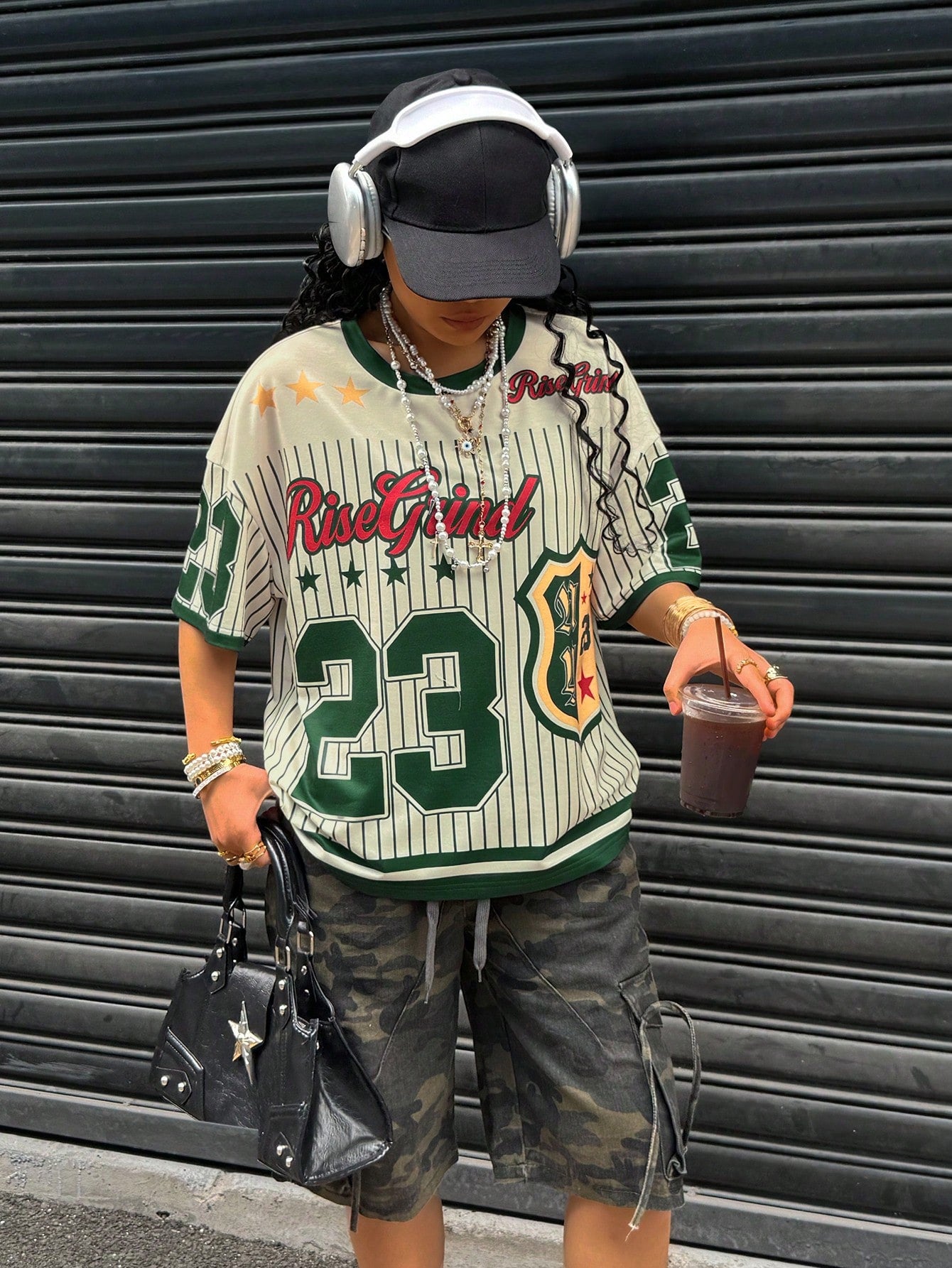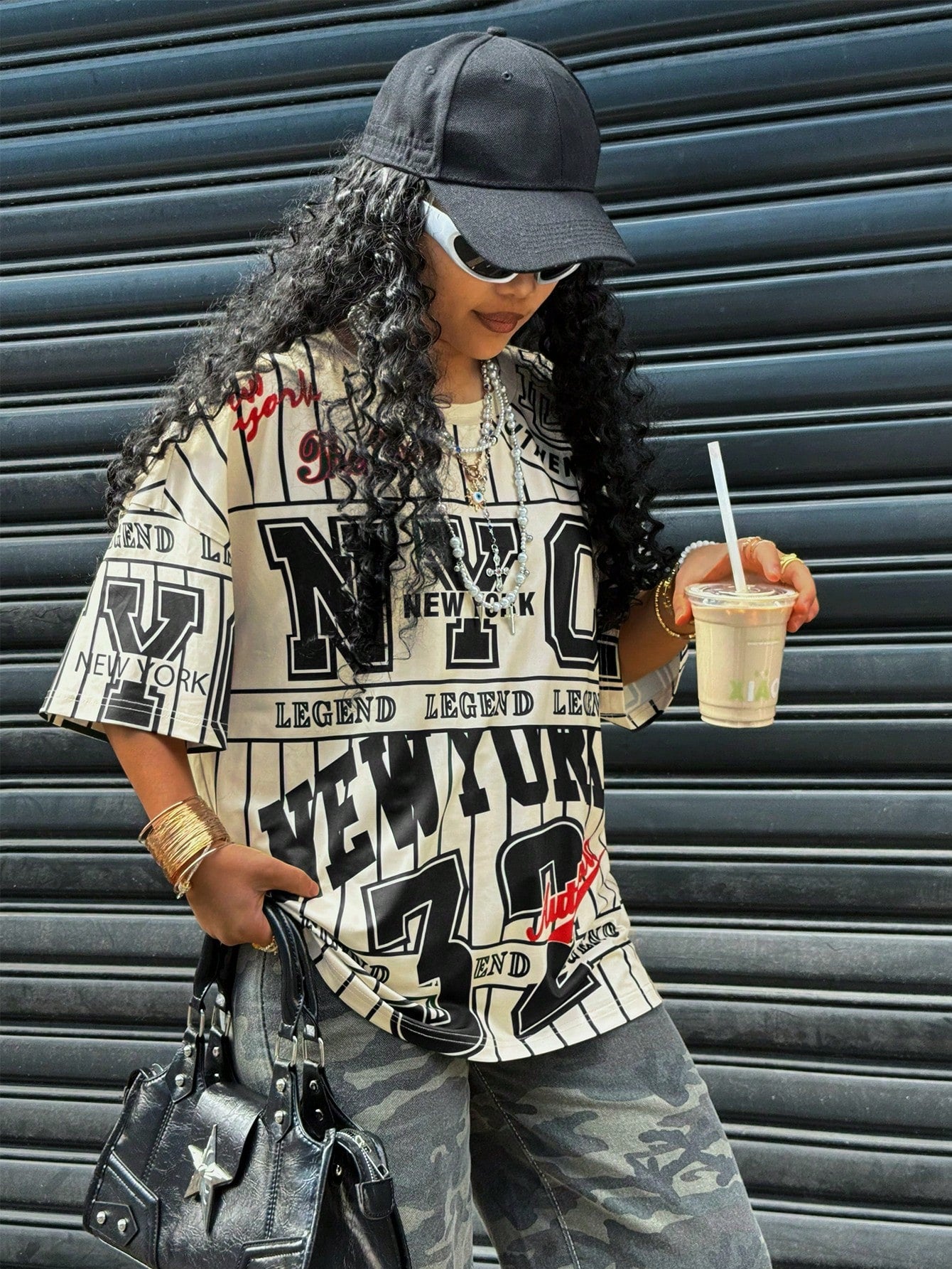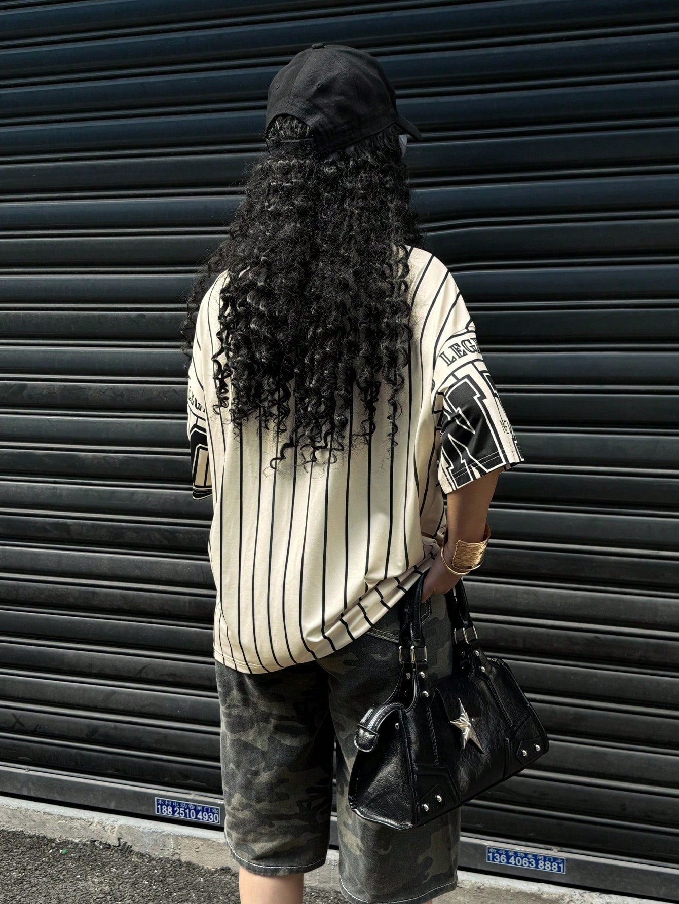 EZwear Women's Casual Striped Letter Print Short Sleeve T-Shirt